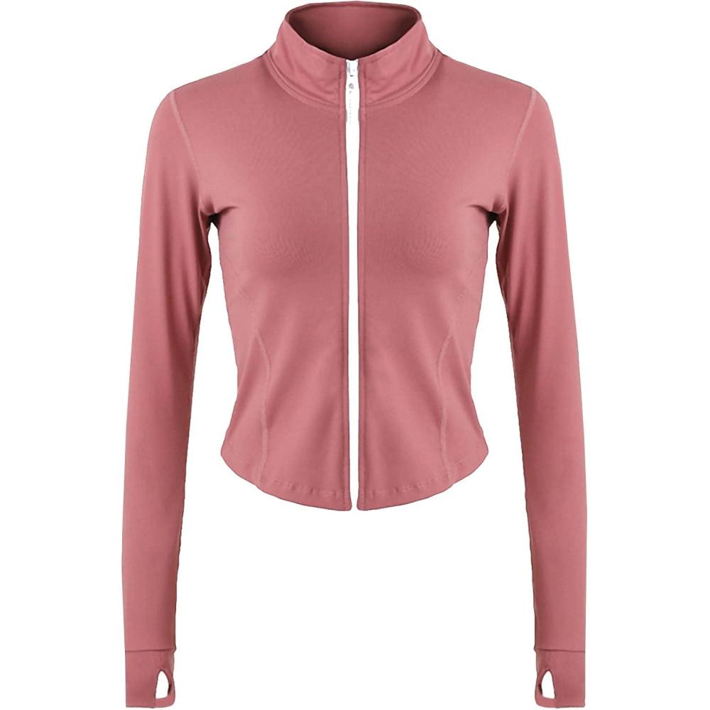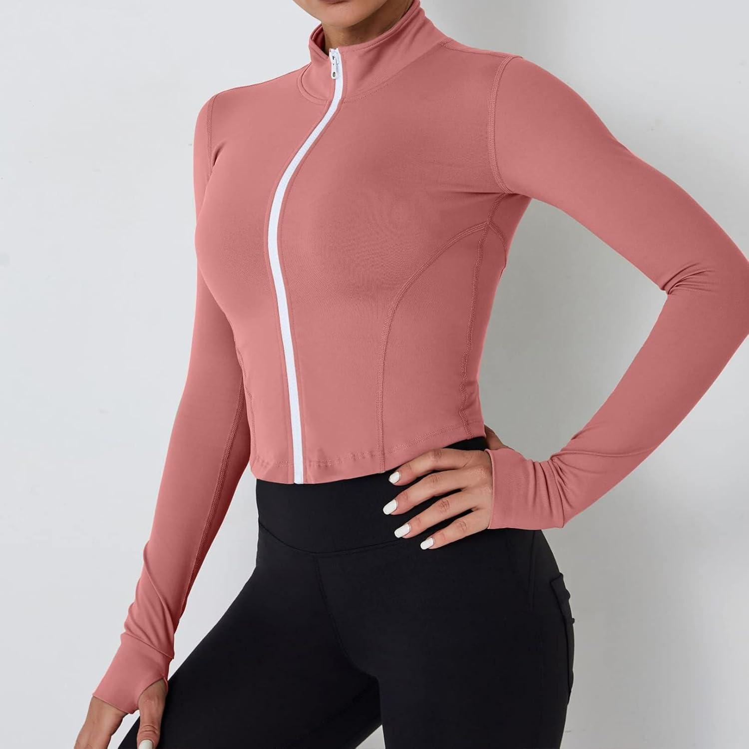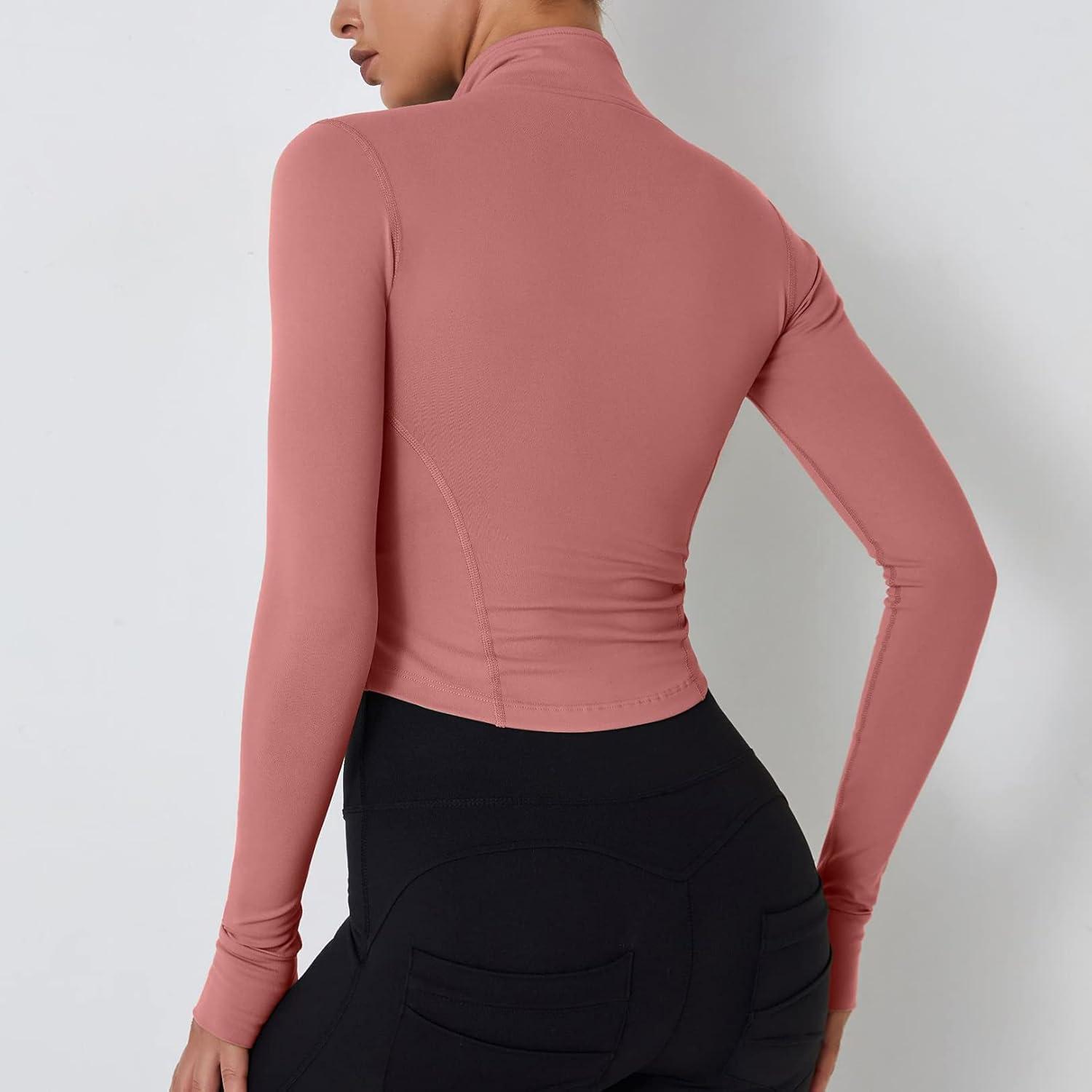 Flygo Women’s Cropped Workout Jacket 1/2 Zip Athletic Yoga Running Pullover Tops with Thumb Hole(02 Pink)