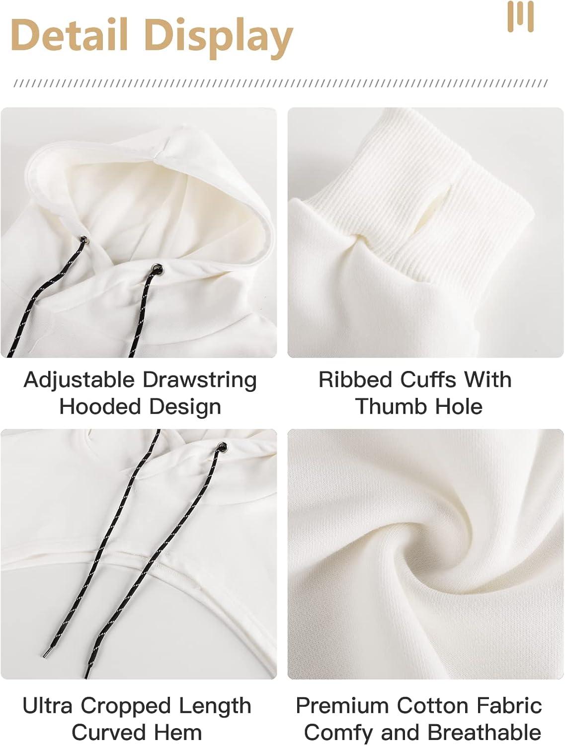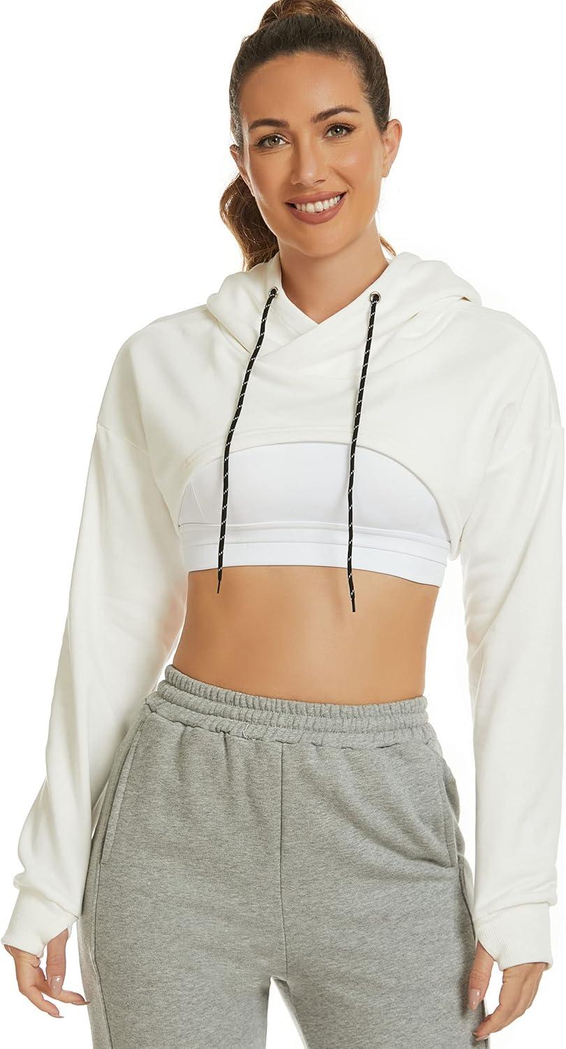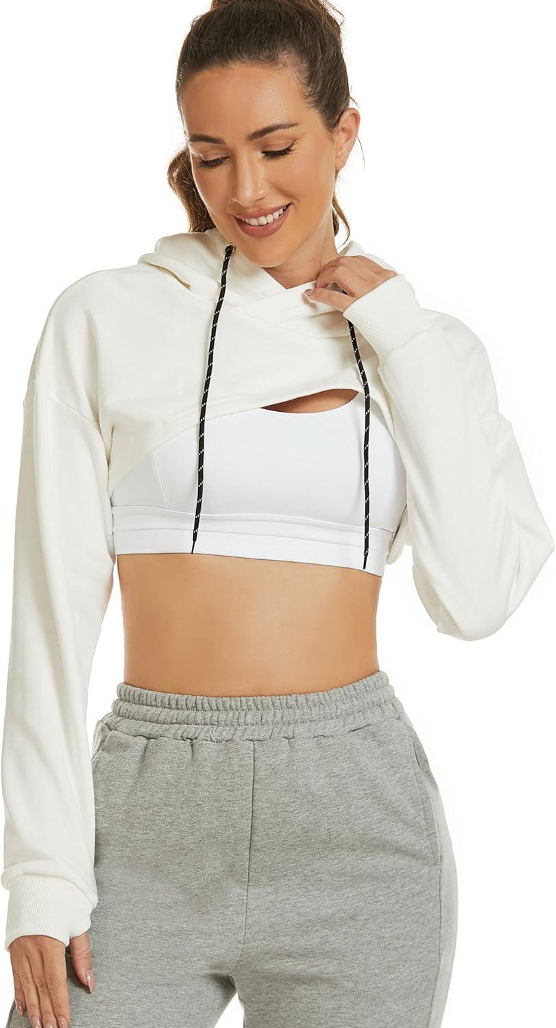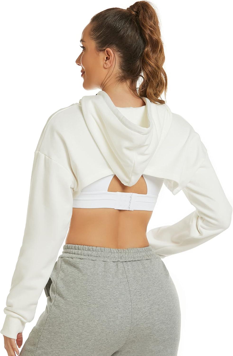 Flygo Women’s Cut Out Super Cropped Hoodie Long Sleeve Hooded Sweatshirt Pullover Active Top(White)
