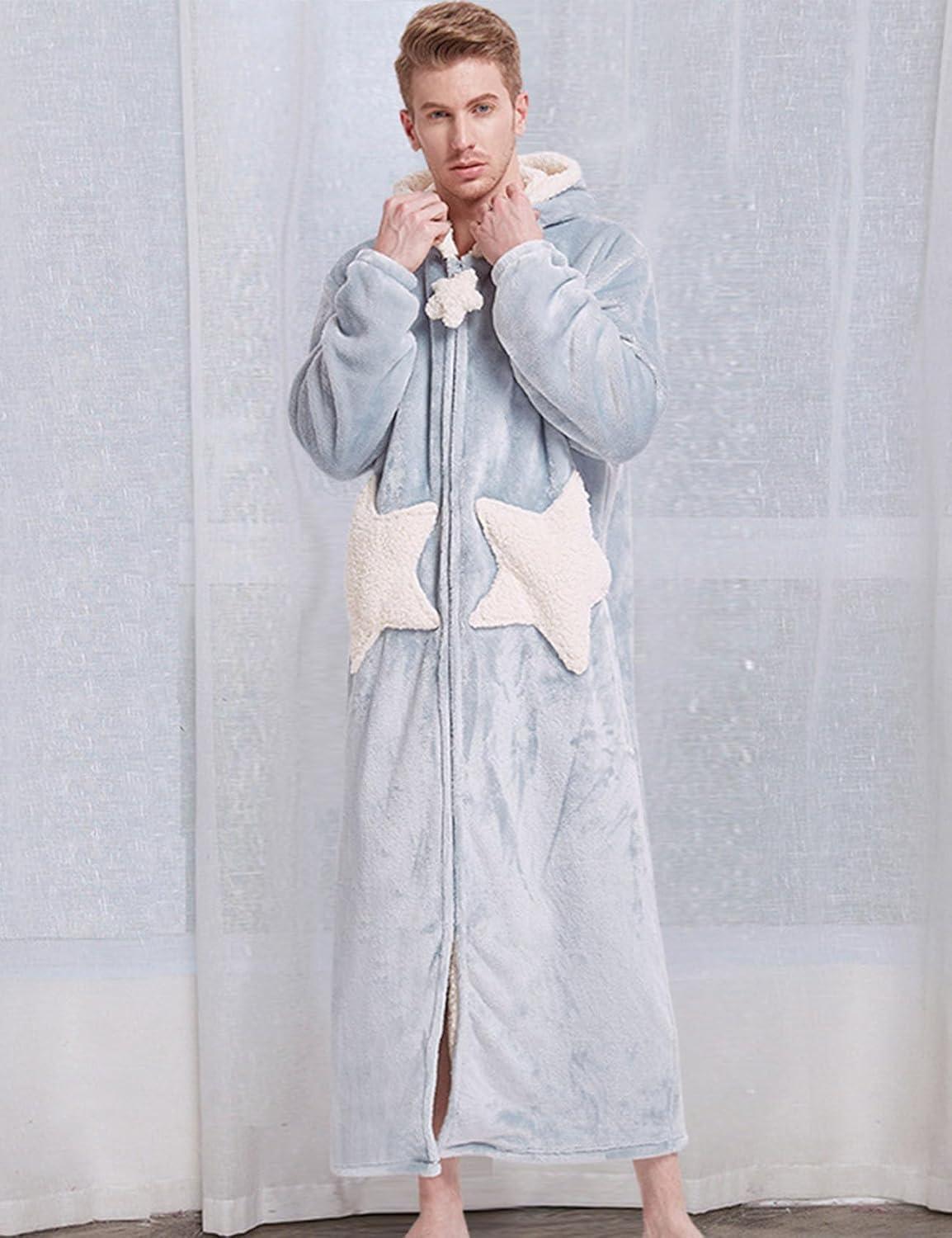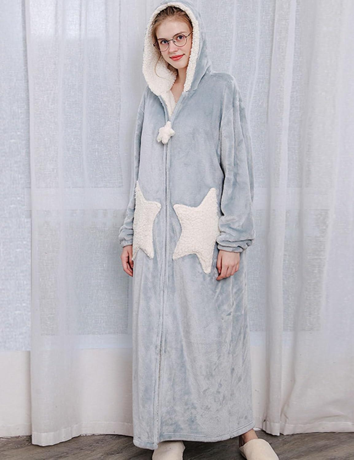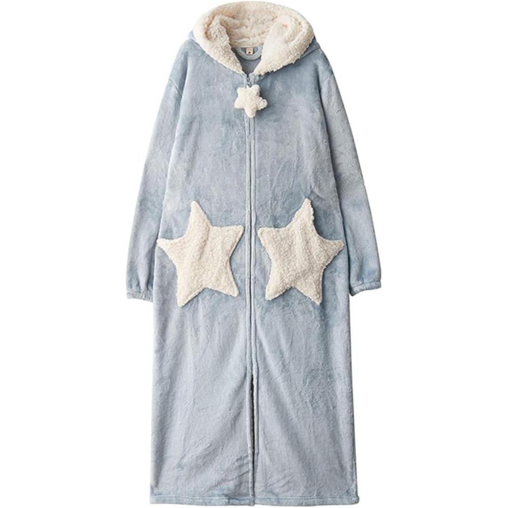 Flygo Women’s Cute Fleece Robe Zipper Bathrobe Winter Warm Housecoat Nightgown Sleepwear(Star Blue)
