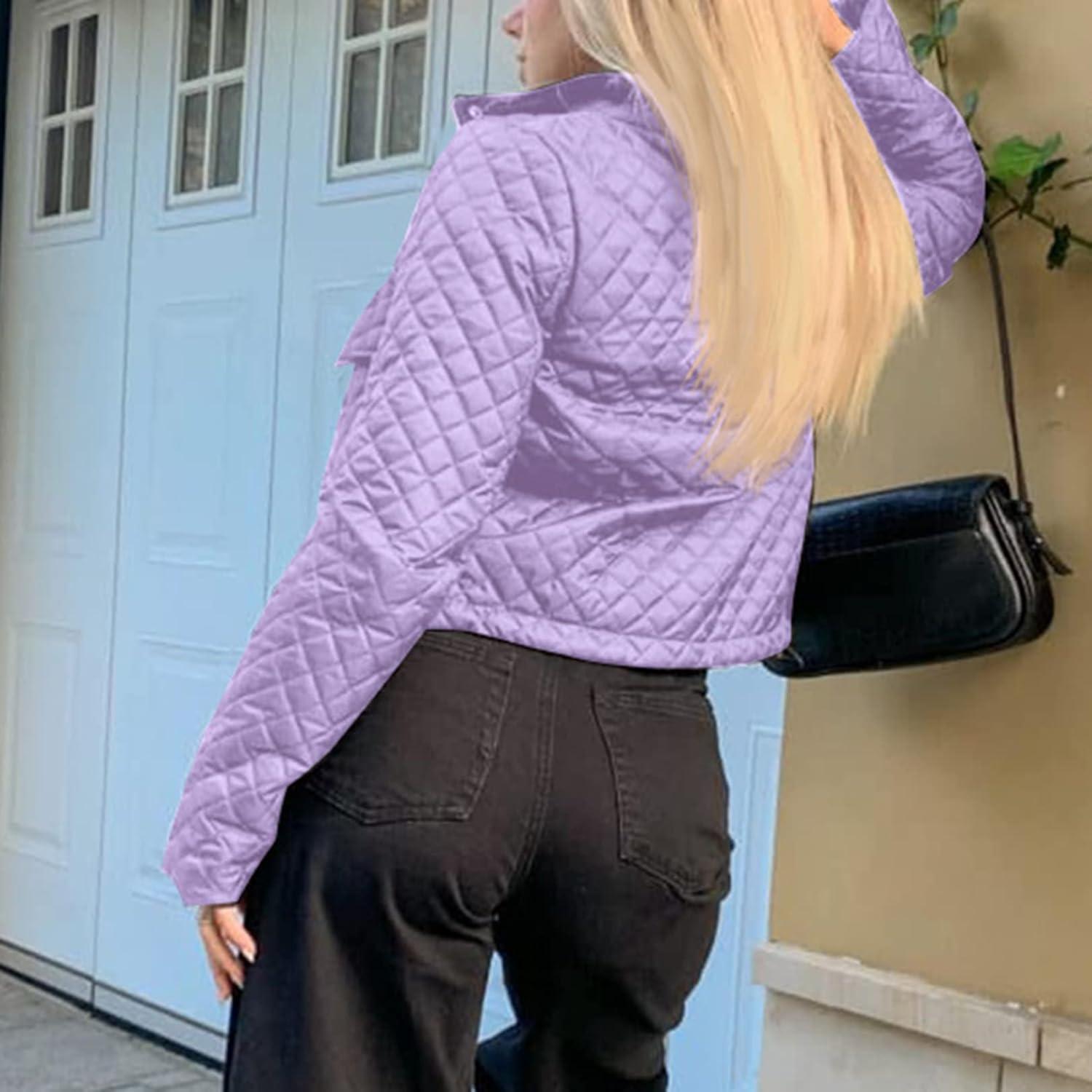 Flygo Women’s Diamond Quilted Puffer Jacket Winter Lightweight Crop Padded Coat(Purple)