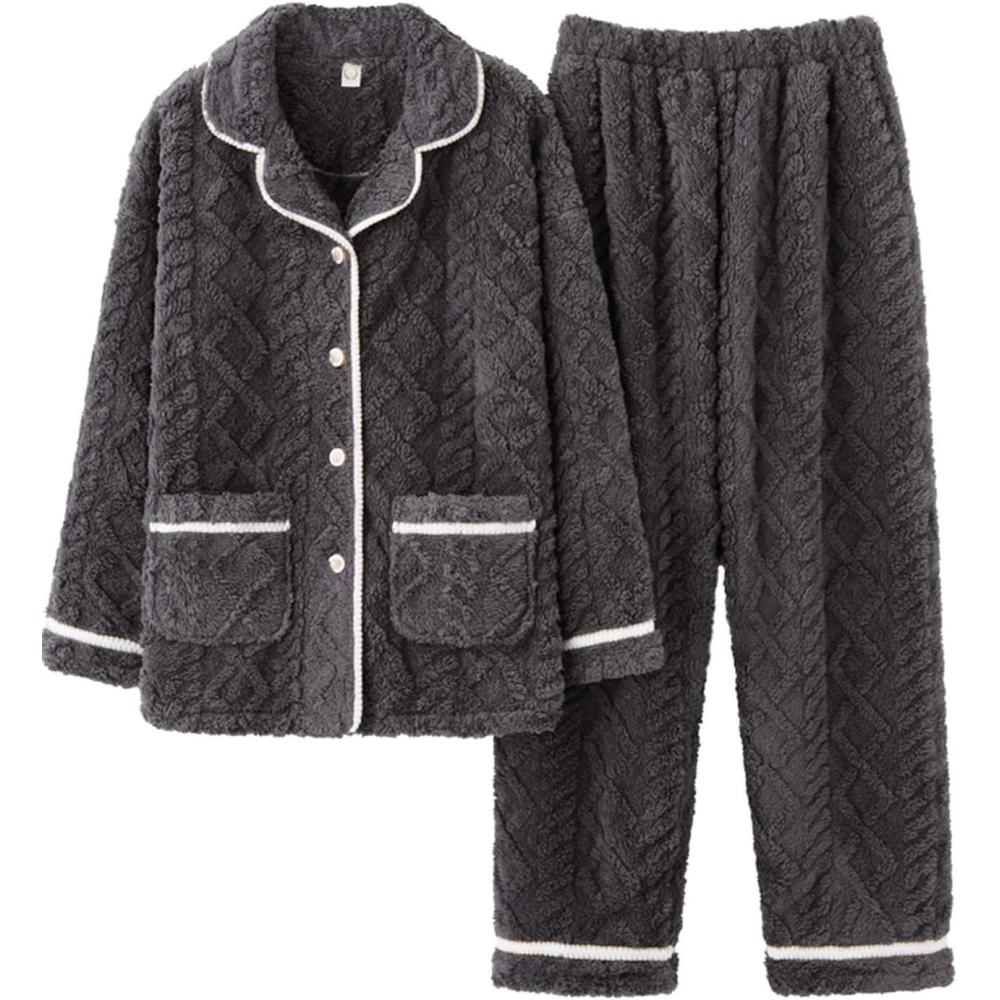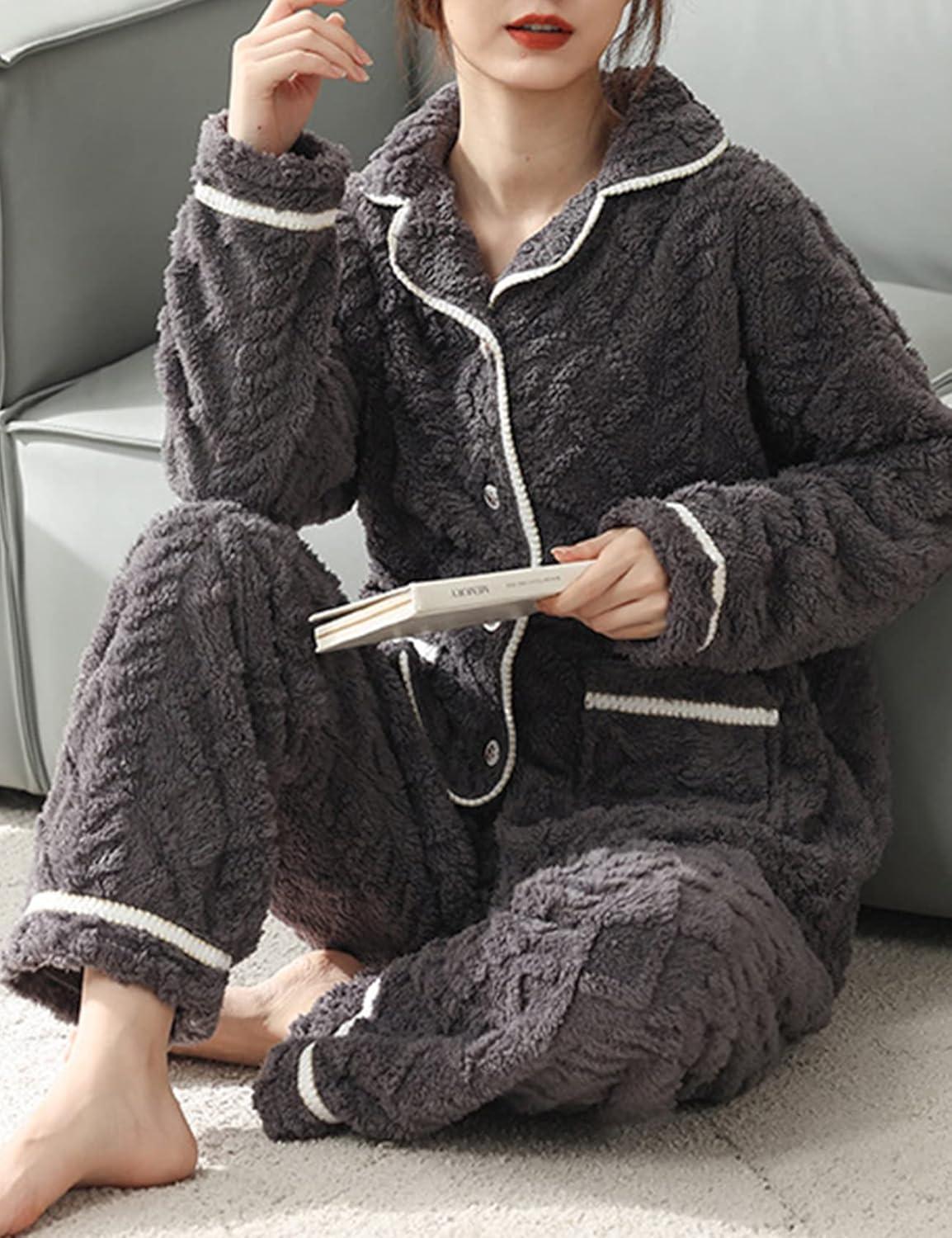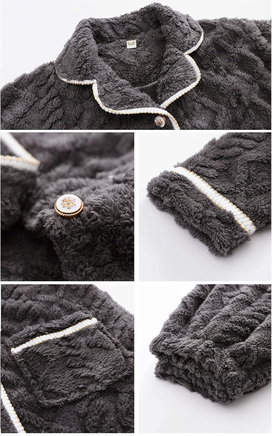 Flygo Women’s Fluffy Pajama Sets Fleece Warm Lapel Top and Pant Sleepwear Loungewear(Grey)