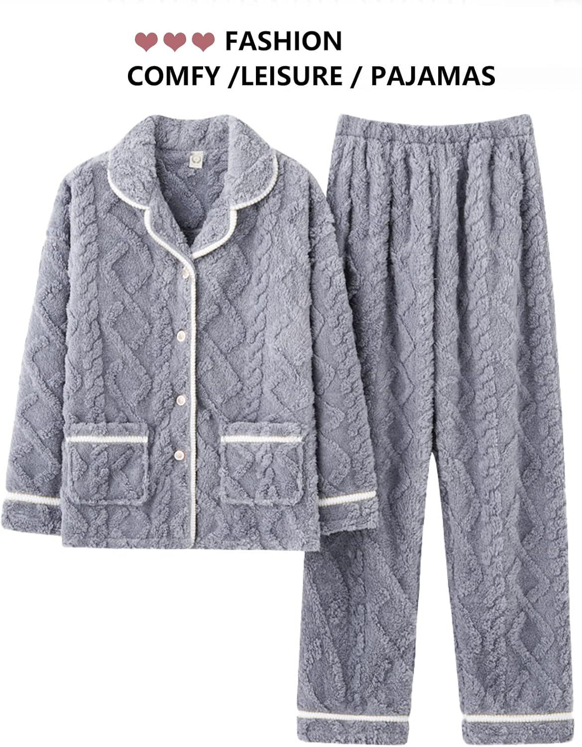Two-Piece cute fuzzy sleepwear pajamas featuring long sleeve sherpa top and pants for loose fit. Cute 2 piece sleepwear pjs, fluffy pajamas set for women, Suitable for home lounge wear, sleepwear, and slumber party. Our womens winter pajama sets are amazing holiday gifts for women. Pick up these winter-worthy women's sleepwear essentials in Flygo and you will not be disappointed.