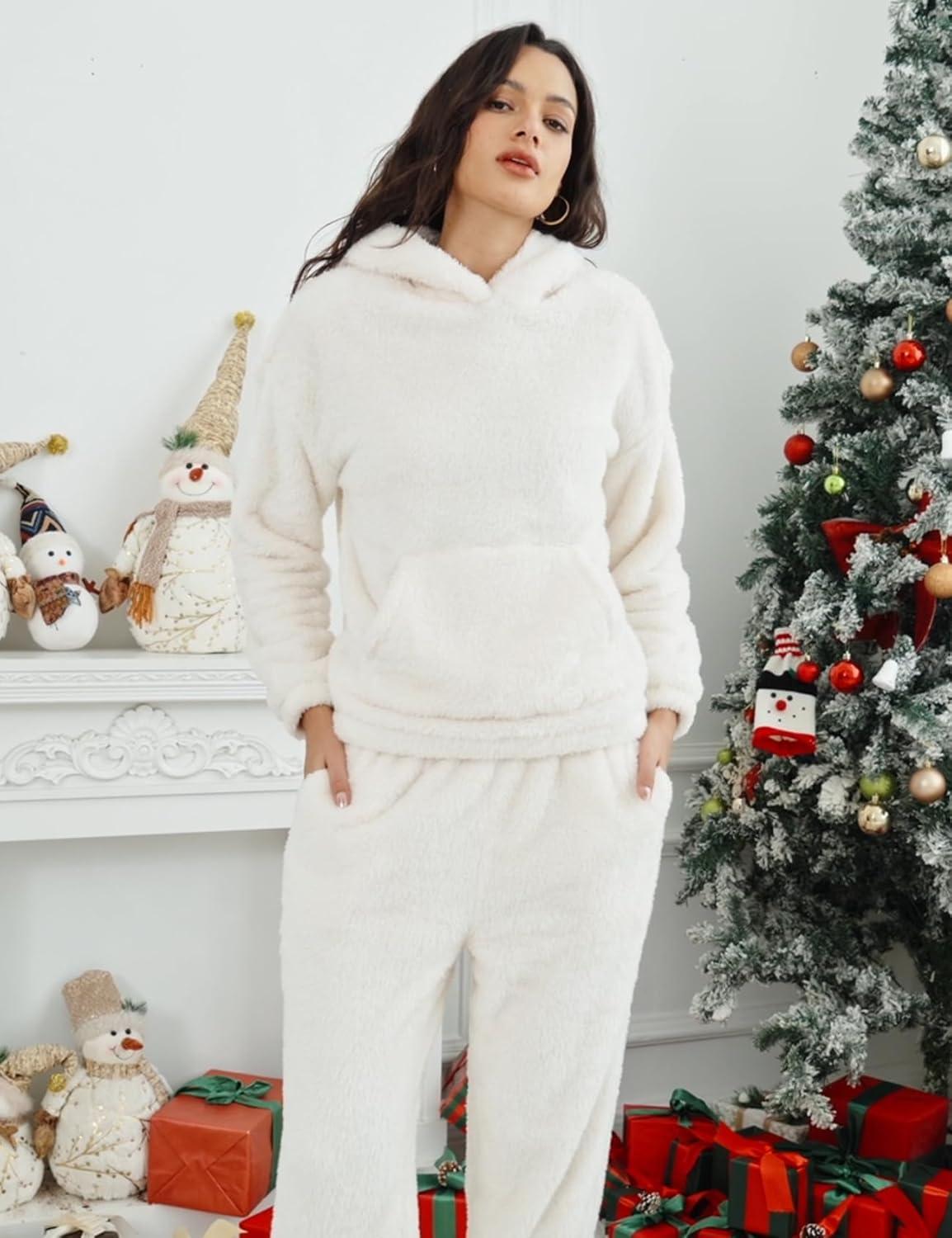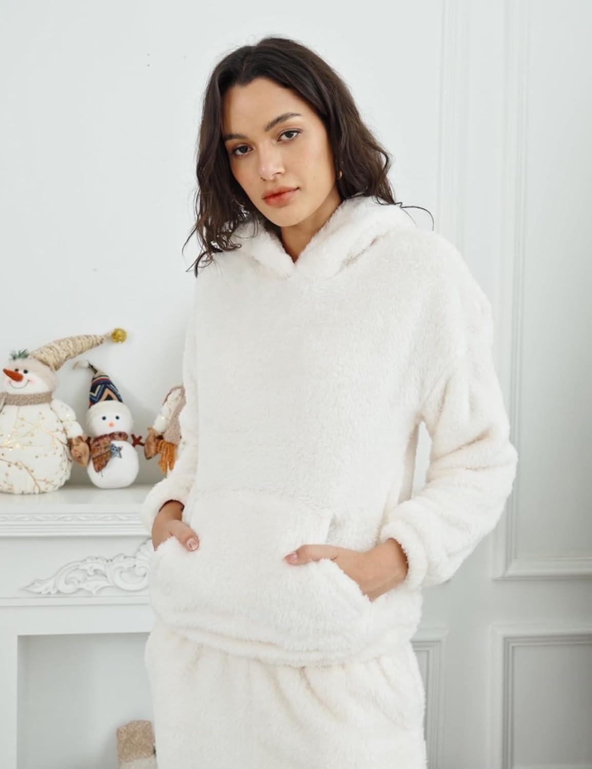 Get up to 60% off on Flygo Women’s Fluffy Pajamas Sets Fleece Loungewear Pullover Bear Ear Fuzzy Hoodie Plush Pants 2 Piece Sleepwear with Pockets(Beige) styles during our winter sale event.