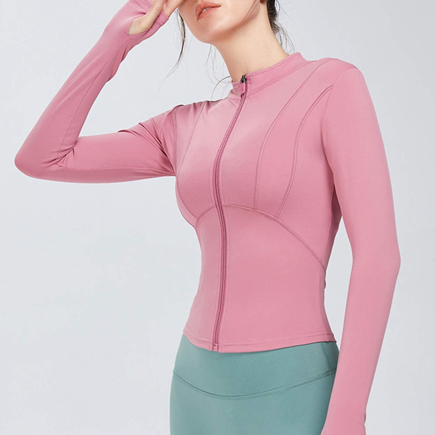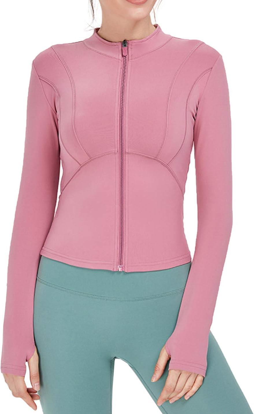 Flygo Women’s Full Zip Lightweight Workout Athletic Yoga Jacket With Thumb Hole(Pink)