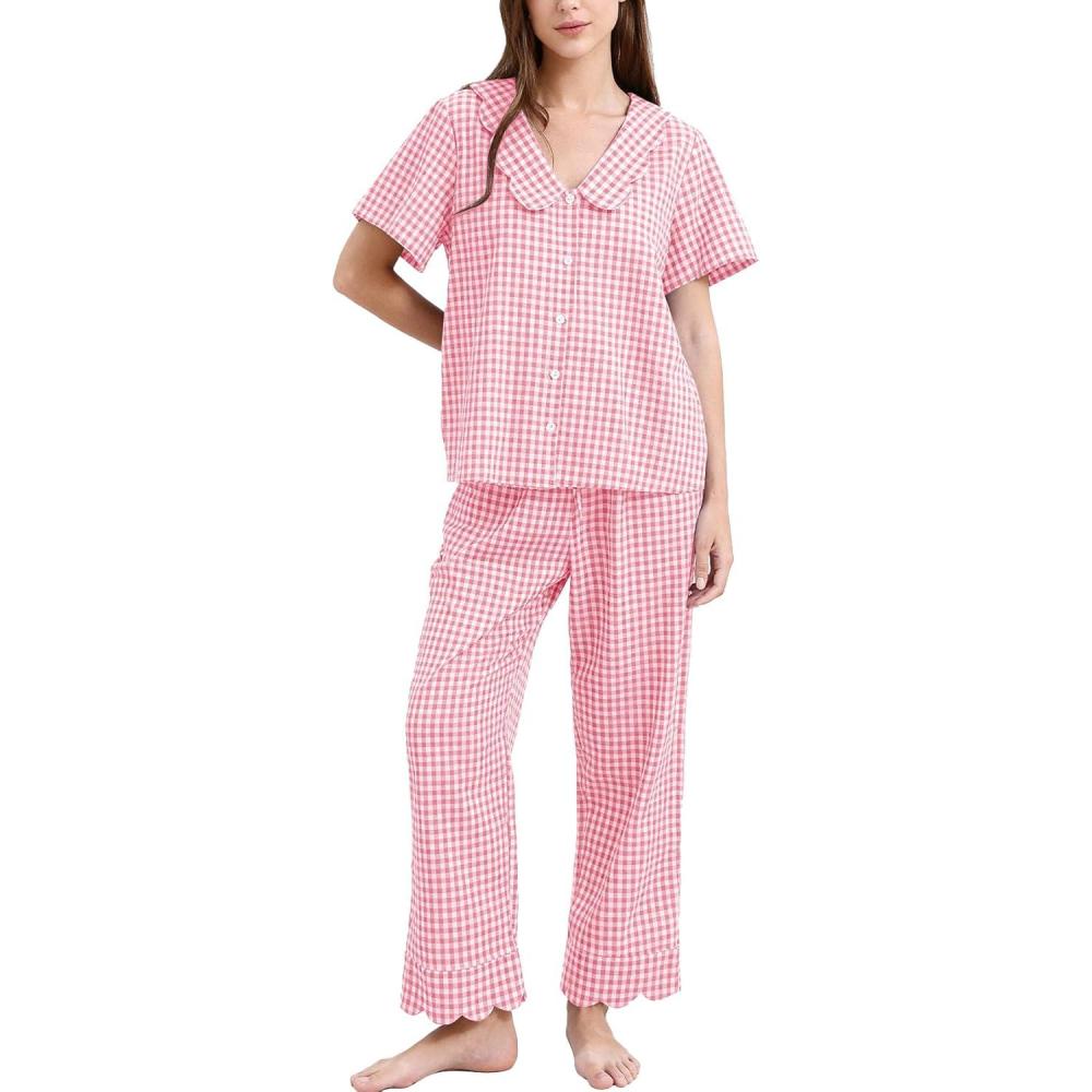 Be the first to review “Flygo Womens Gingham Pajamas Set Cotton 2 Piece Pj Set Scalloped Collar Babydoll Shirt Pants Plaid Y2K Lounge Sets(Pink)” Cancel reply
