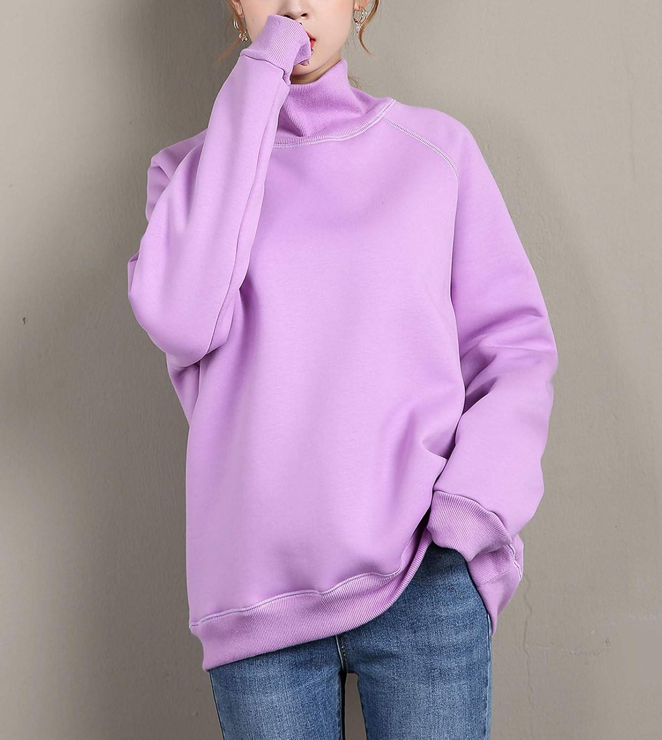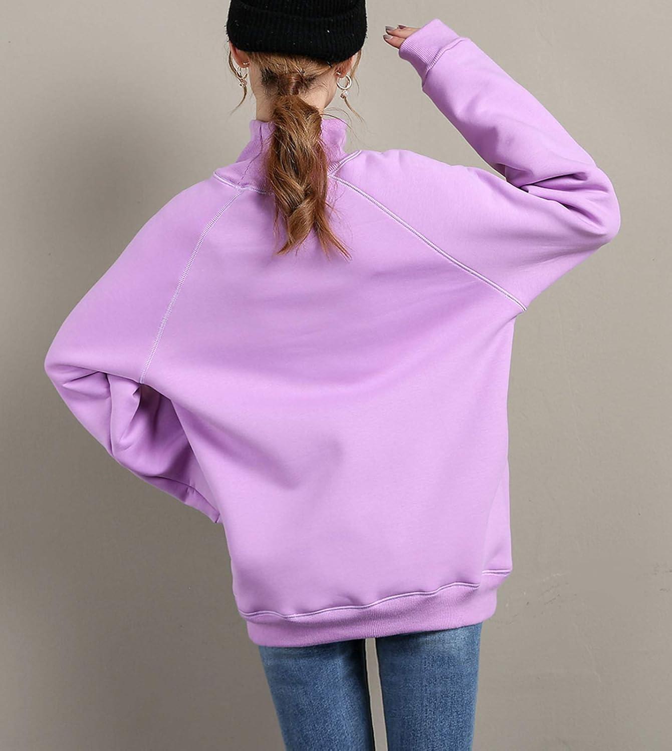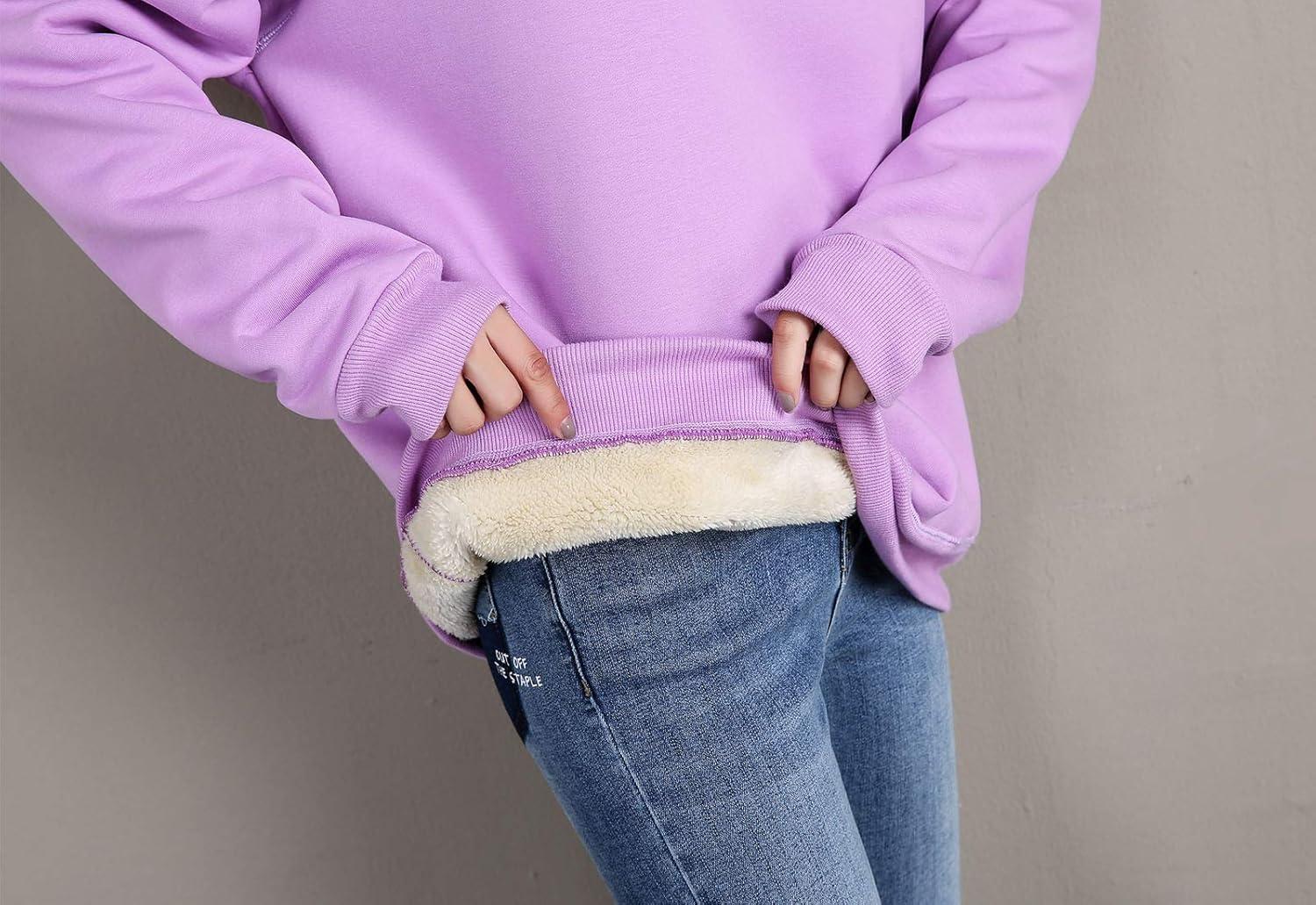 Flygo Women’s Girls Warm Fleece Sherpa Lined High Neck Pullover Sweatshirt(Lilac)