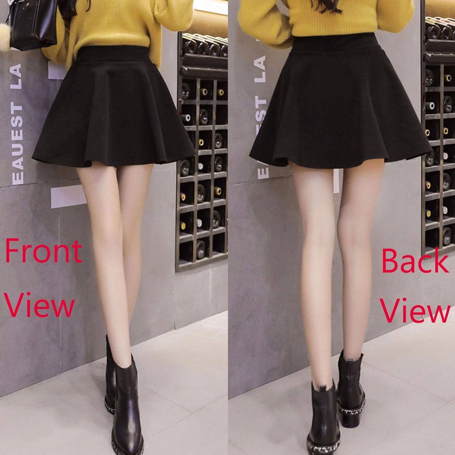 Flygo Women’s High Waist A-Line Flared Pleated Swing Wool Mini Skirt Skort(Black)