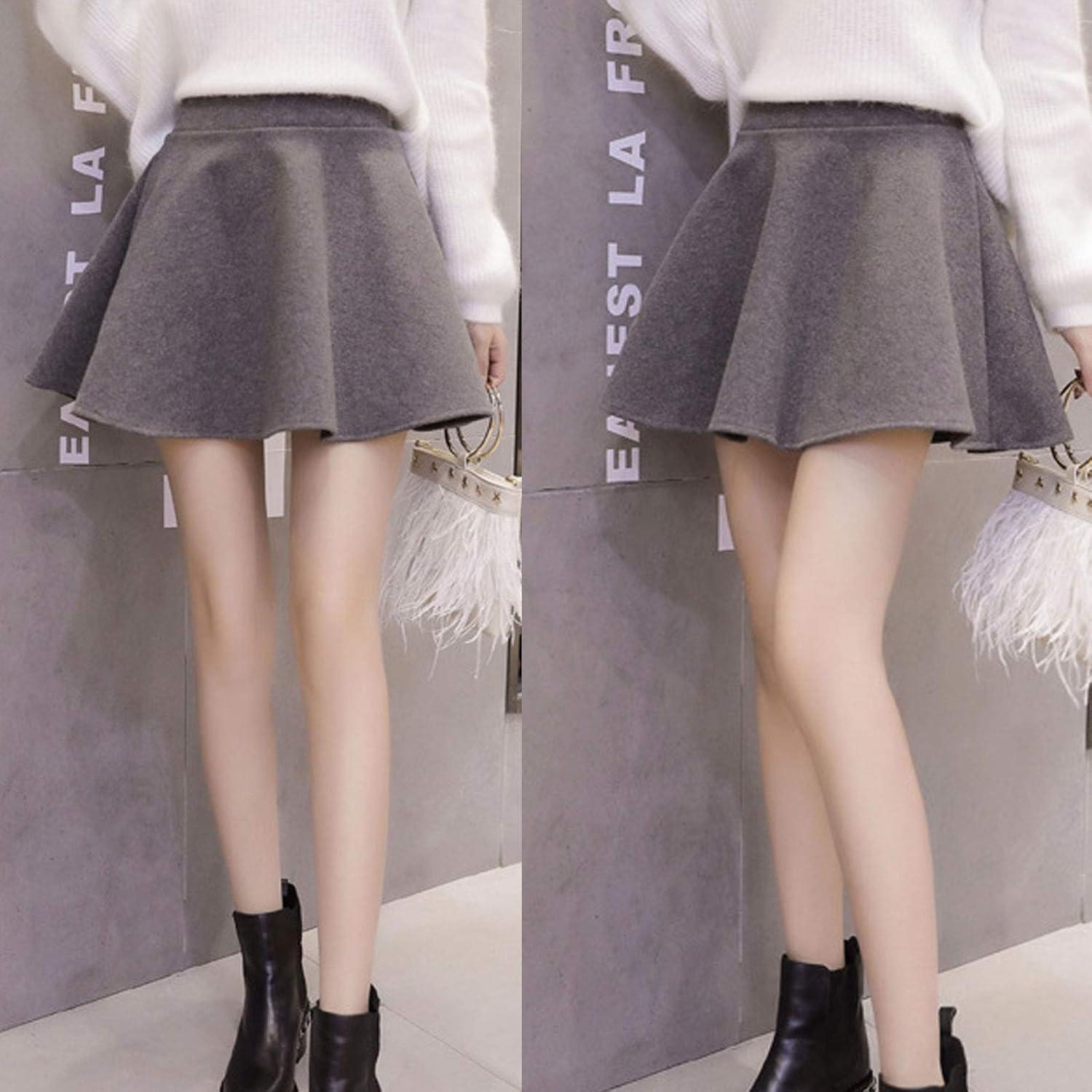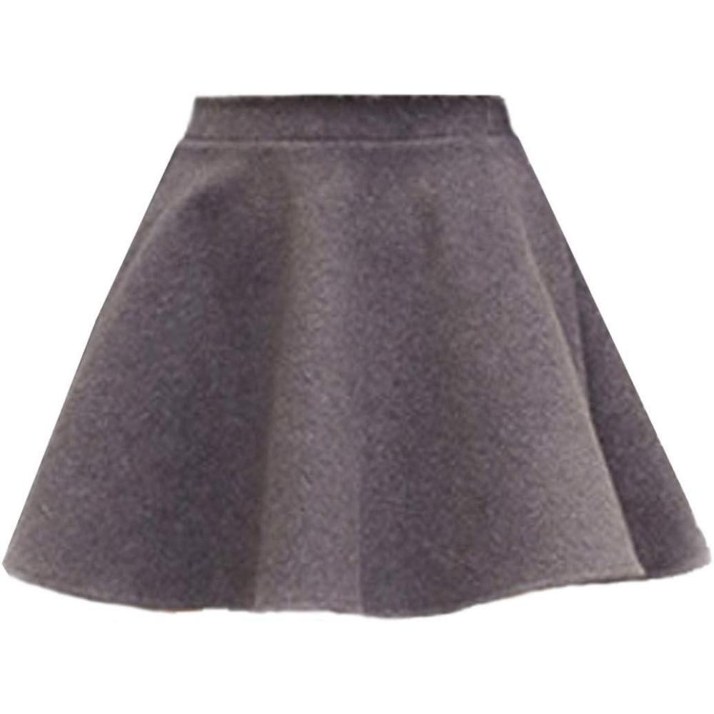 Flygo Women’s High Waist A-Line Flared Pleated Swing Wool Mini Skirt Skort(Grey)