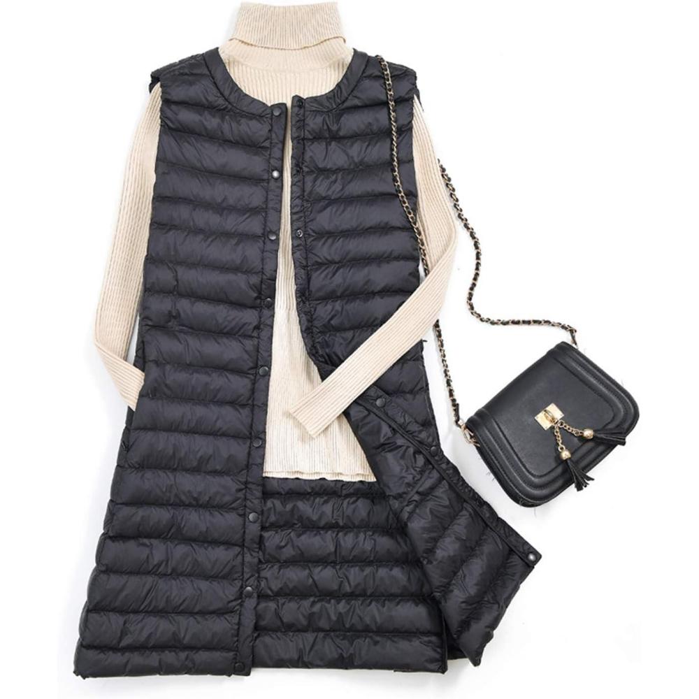 Flygo Women’s Lightweight Button Up Quilted Mid-Long Packable Puffer Vest Waistcoat Gilet Jackets(Black)