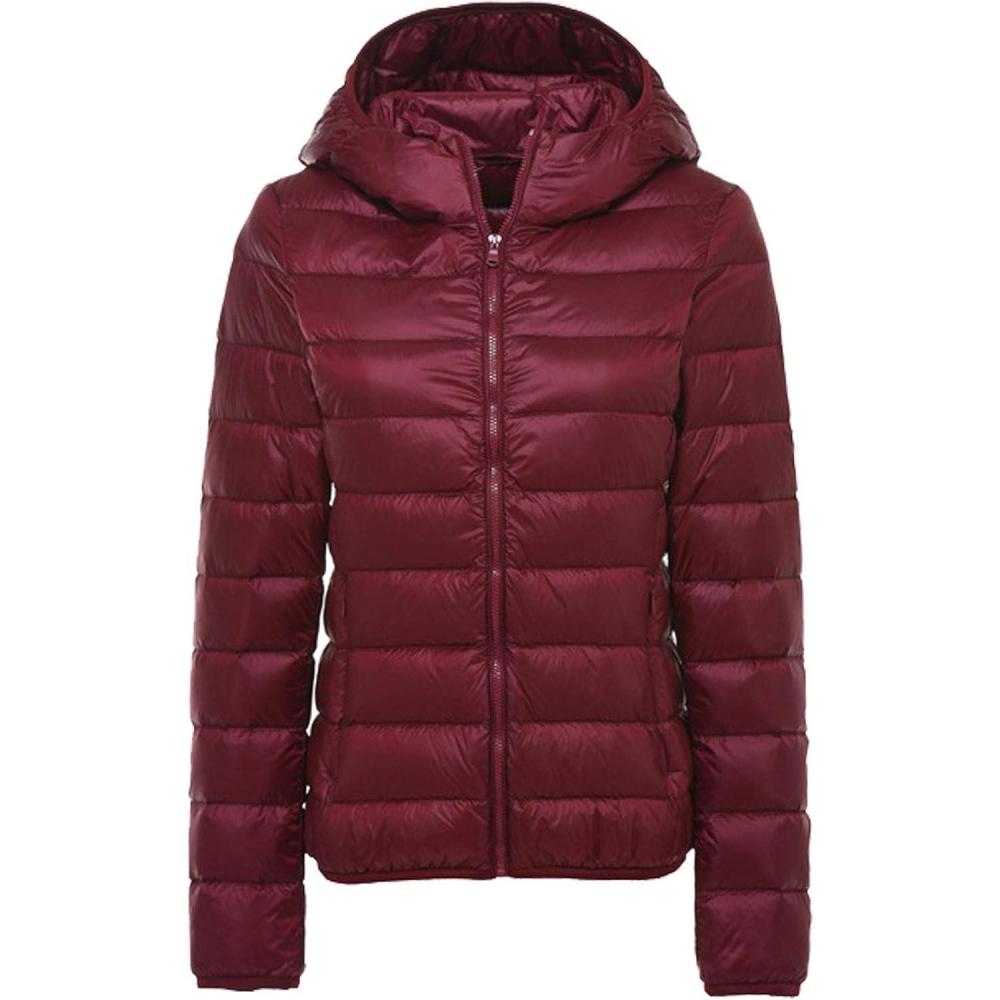 Flygo Women’s Lightweight Hooded Down Jacket Water Resistance Puffer Coat(Wine Red)