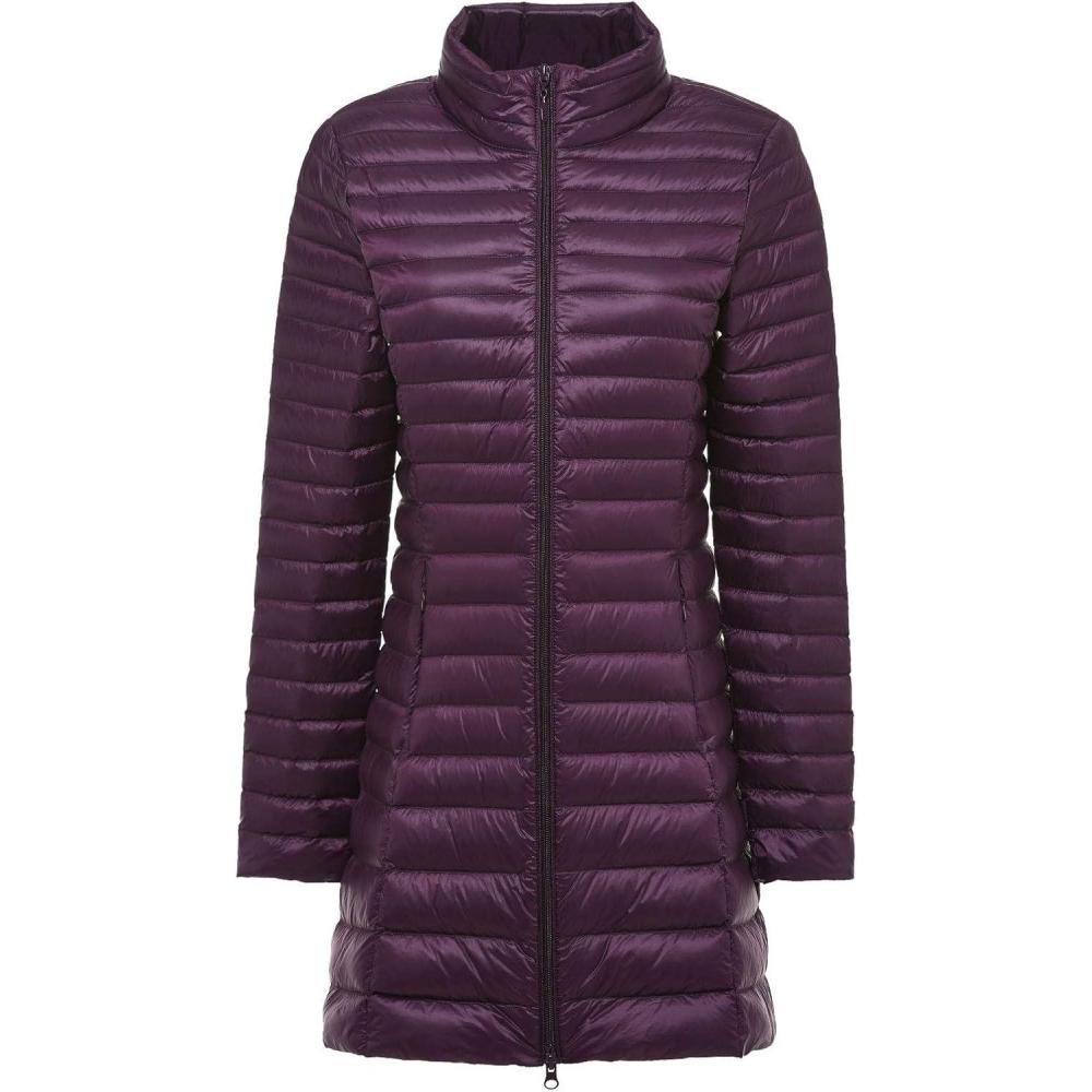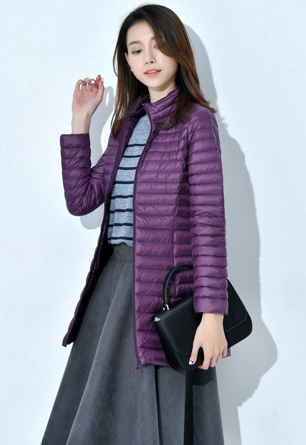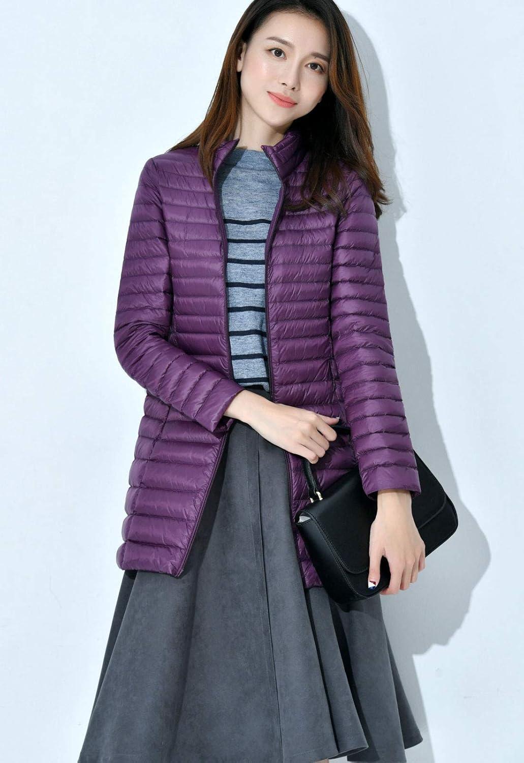 Flygo Women’s Lightweight Stand Collar Mid Long Down Coat Puffer Jacket(Purple)