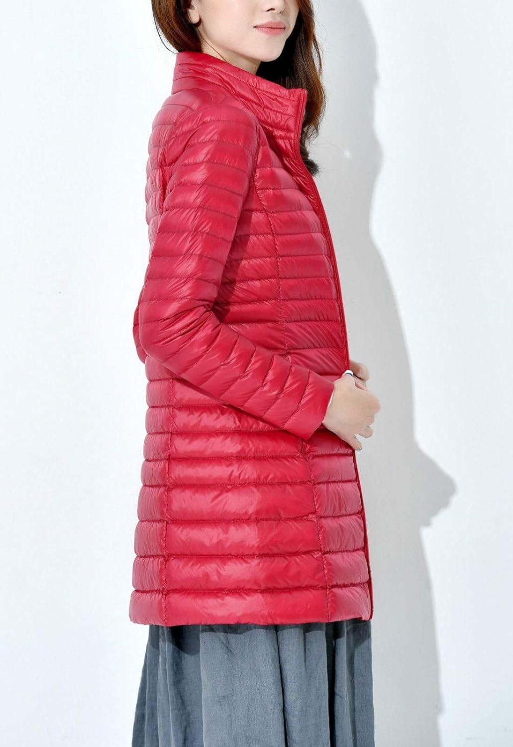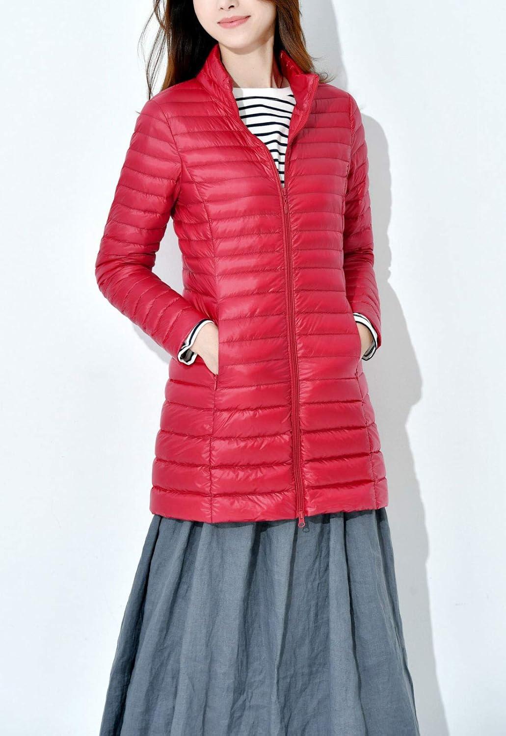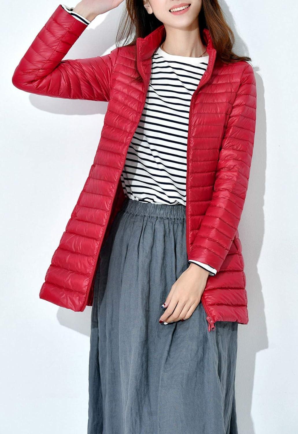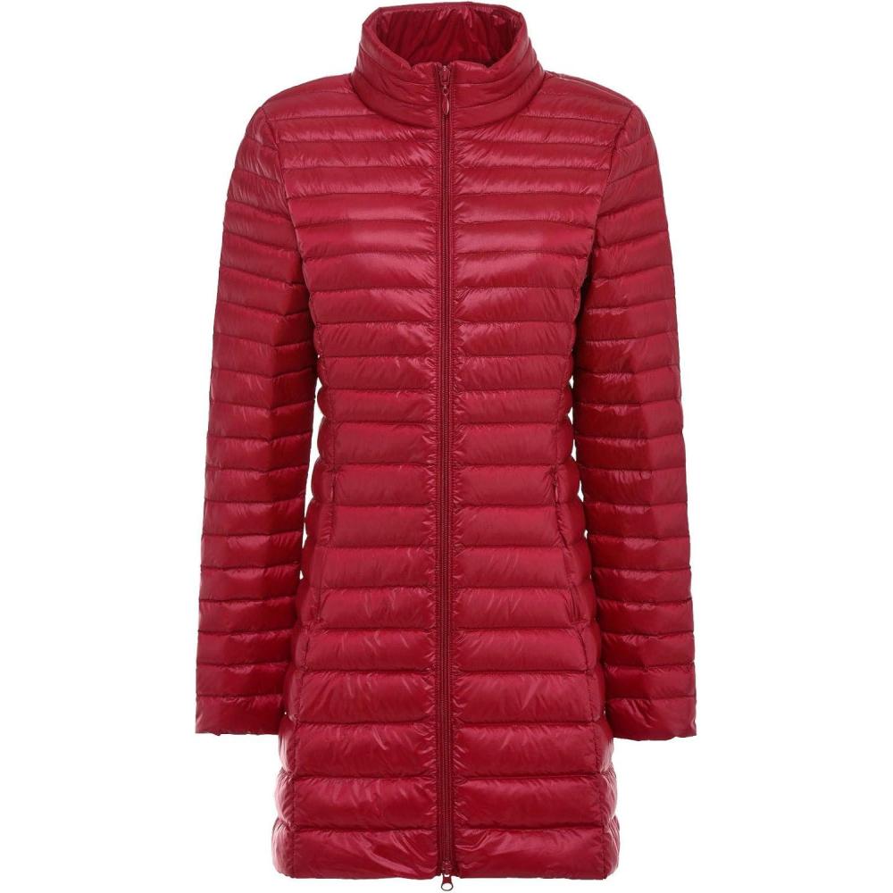 Flygo Women’s Lightweight Stand Collar Mid Long Down Coat Puffer Jacket(Red)