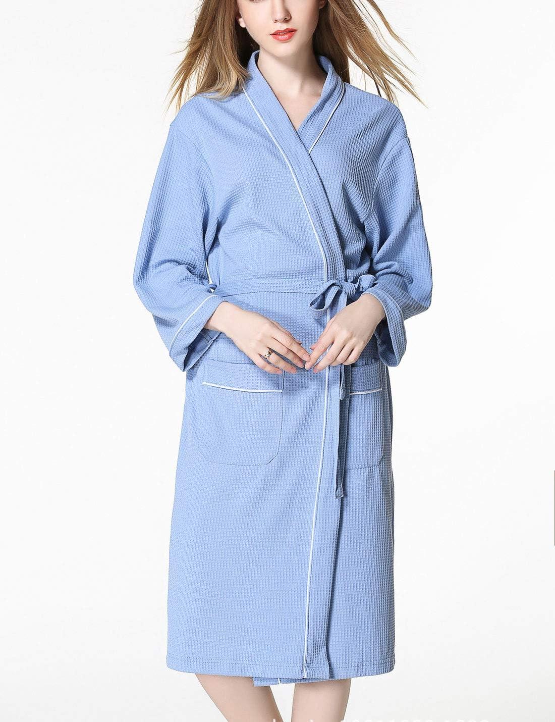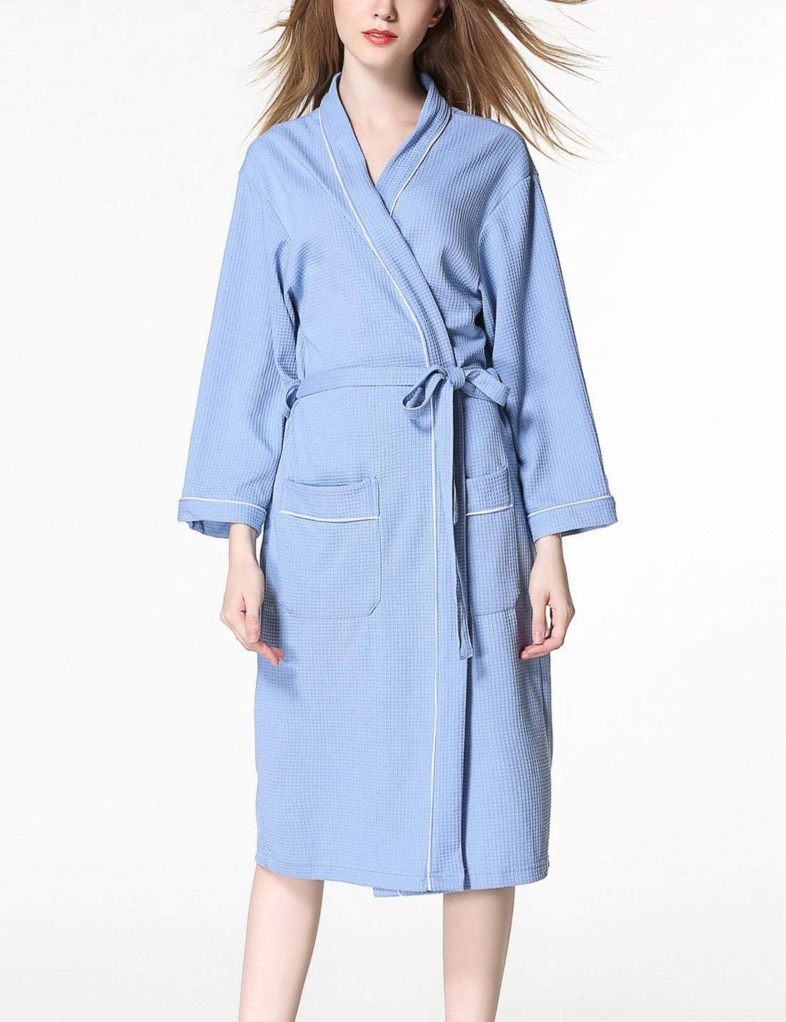 Flygo Womens Soft Cotton Waffle Weave Kimono Hotel Spa Robes