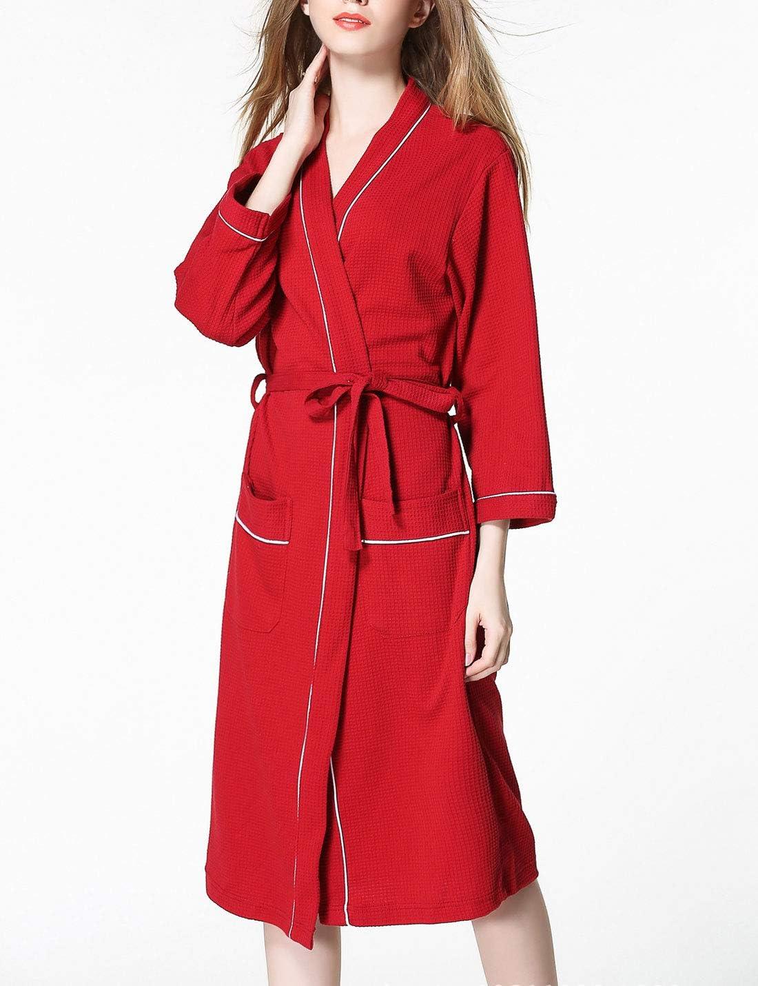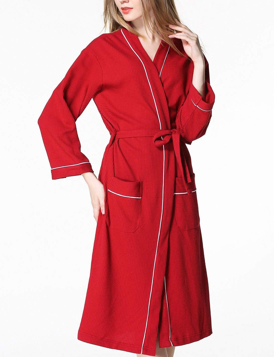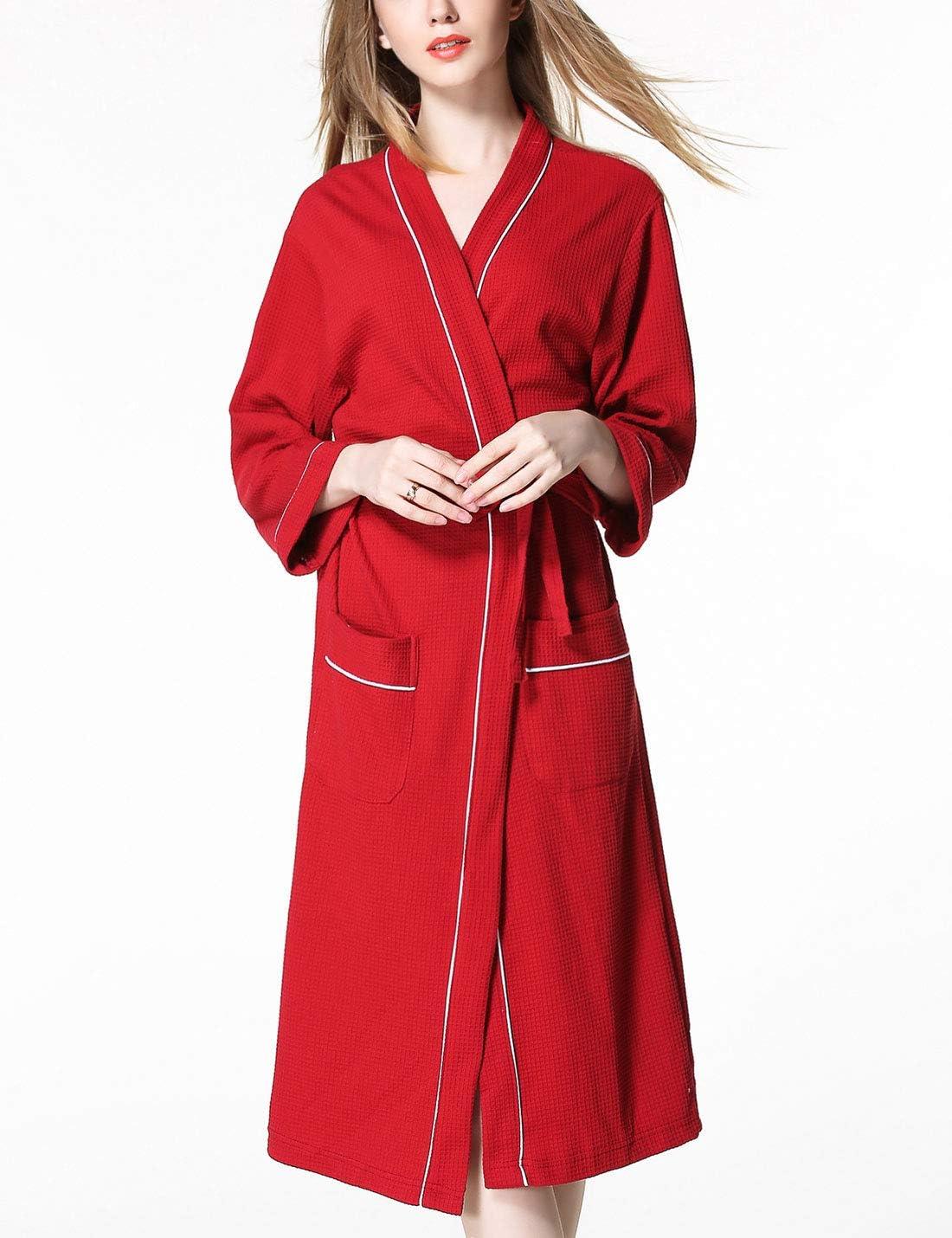 Flygo Womens Soft Cotton Waffle Weave Kimono Hotel Spa Robes