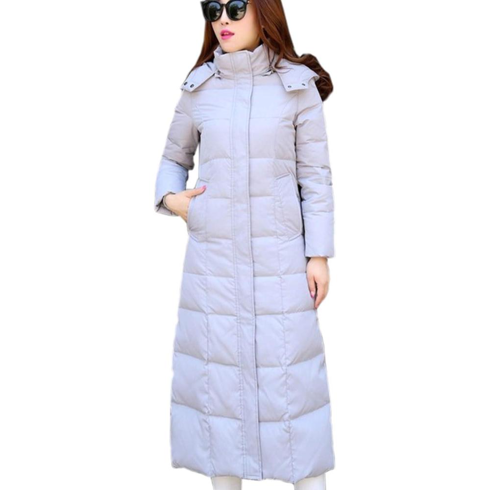 Flygo Womens Long Down Coat Hooded Maxi Down Parka Puffer Jacket Outerwear(Grey)