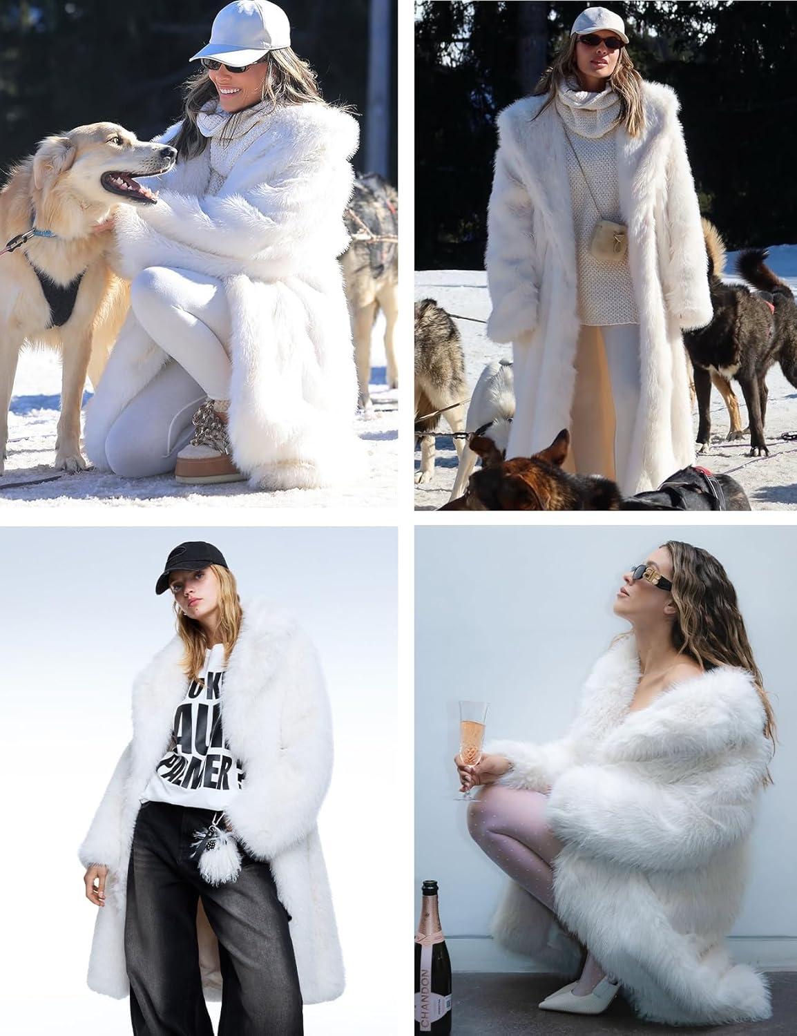 Flygo Womens Long Faux Fur Coats Winter Fluffy Open Front Luxury Overcoat Shaggy Lapel Long Sleeve Fuzzy Warm Cardigan Jacket(White)
