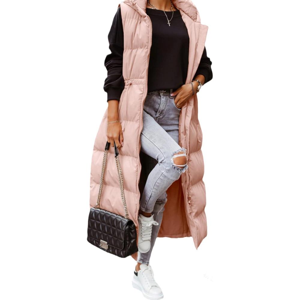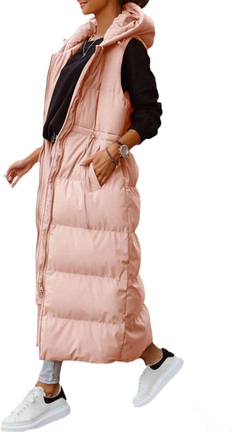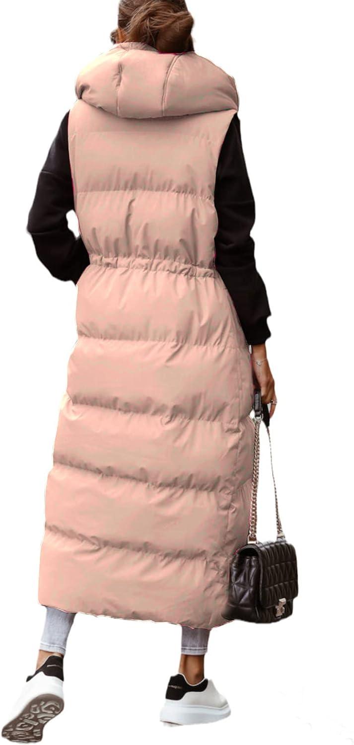 Women long puffer vest Sleeveless down jackets Long puffy lightweight quilted gilet outwear coat Padded bubble jacket with hood Maxi length casual vest Full zipper insulated winter vest