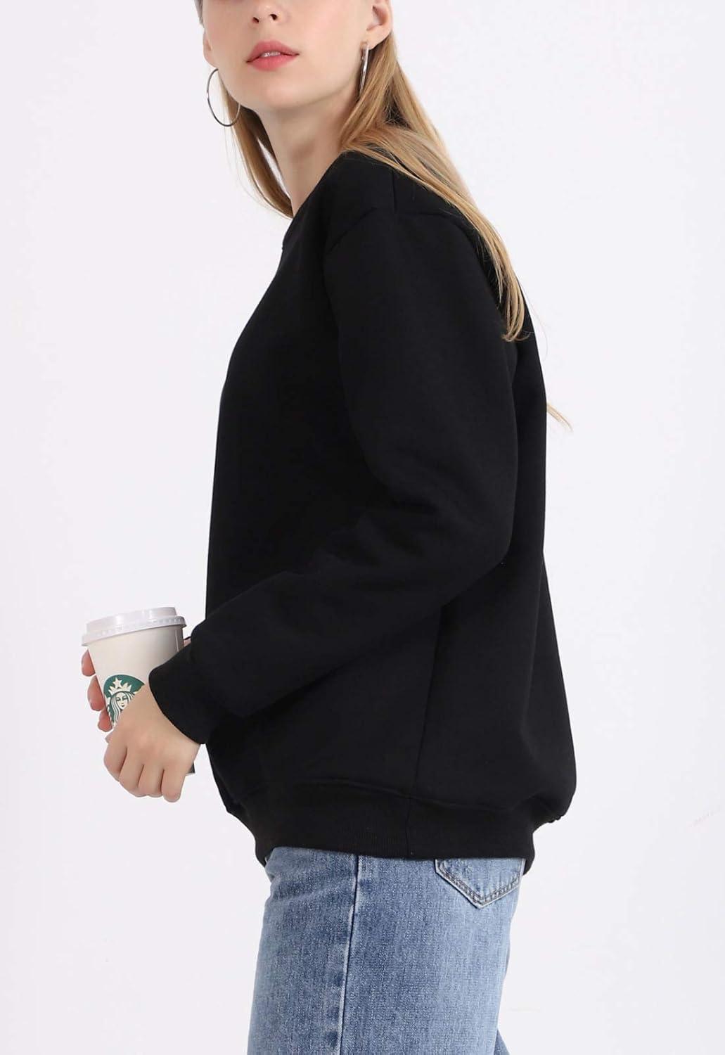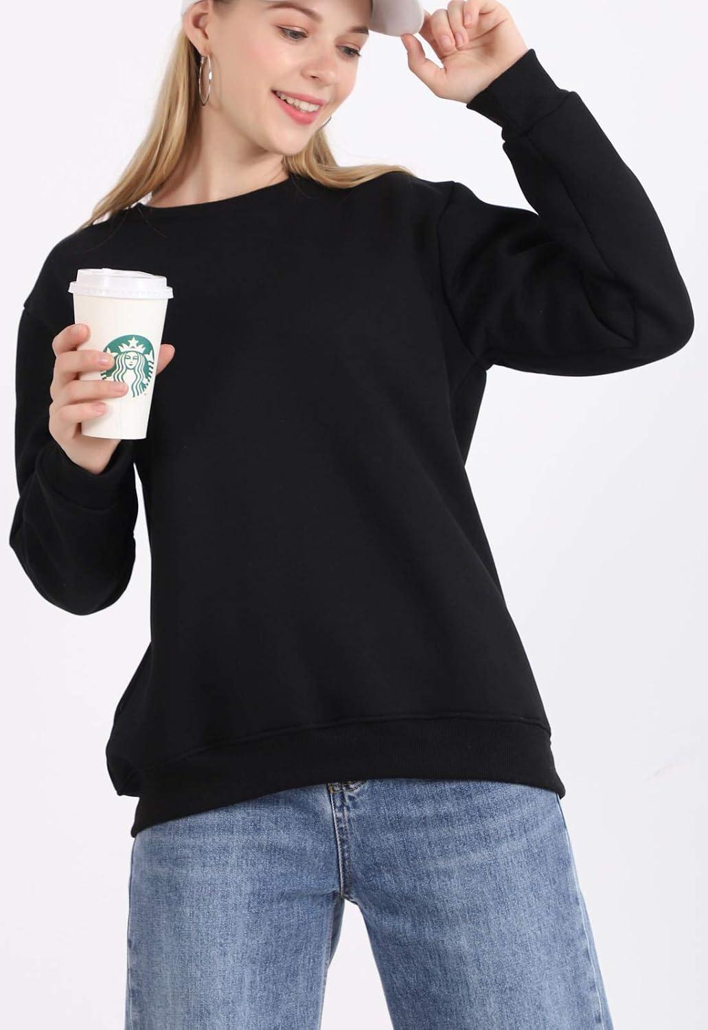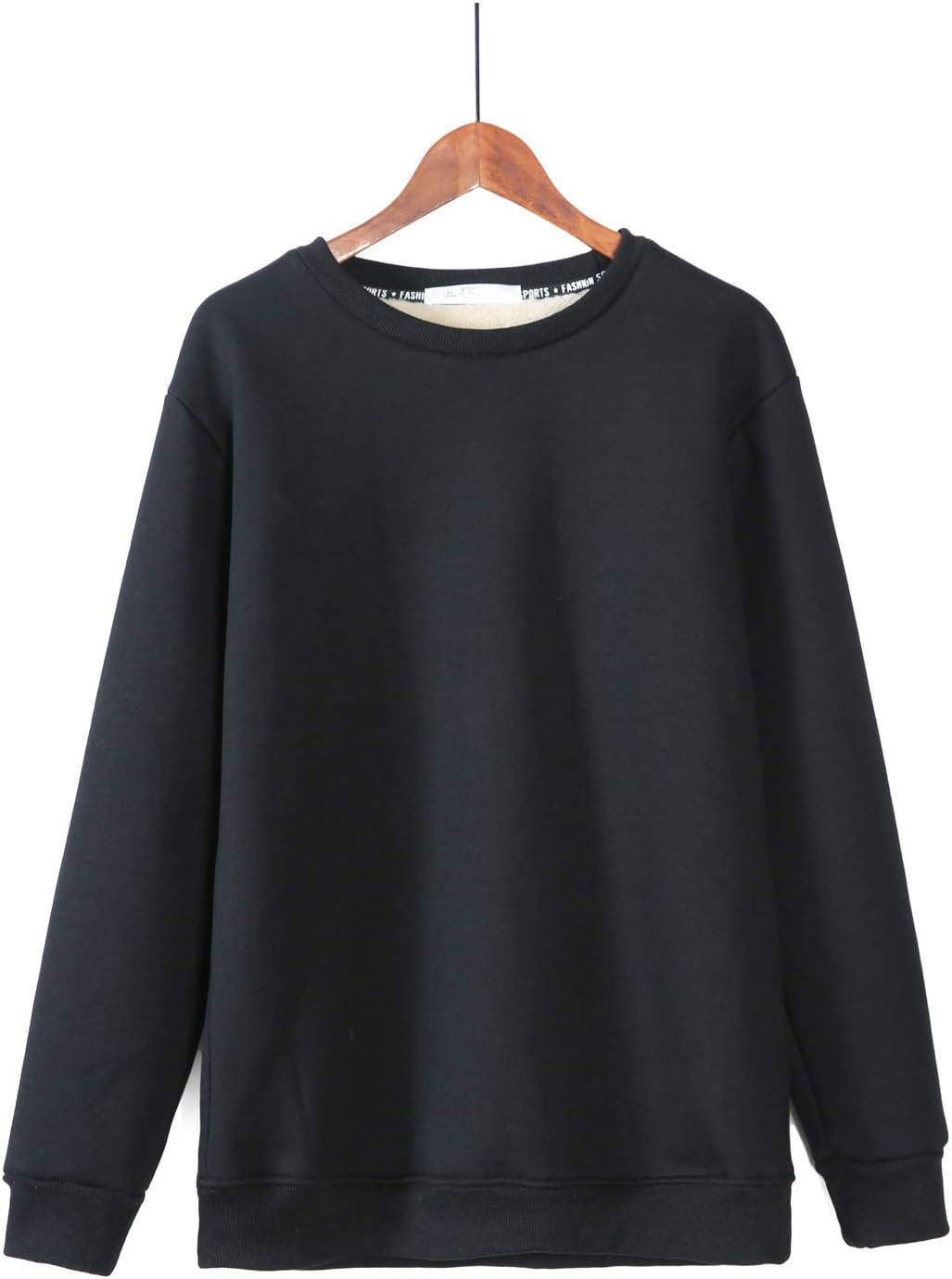 Flygo Women’s Loose Sherpa Fleece Lined Pullover Crewneck Sweatshirt(Black)