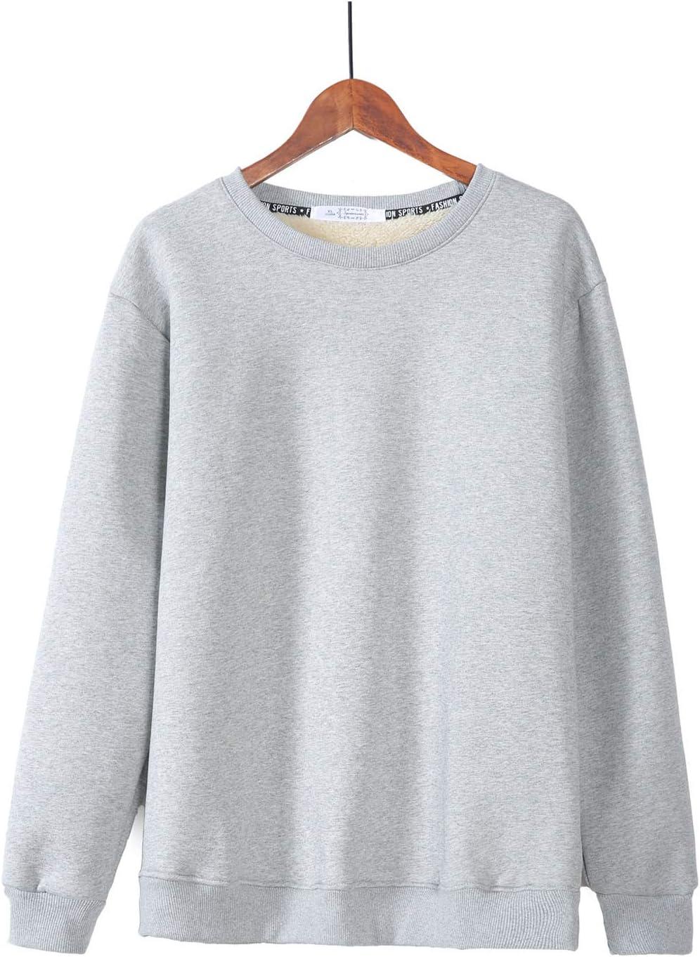 Flygo Women’s Loose Sherpa Fleece Lined Pullover Crewneck Sweatshirt(Grey)