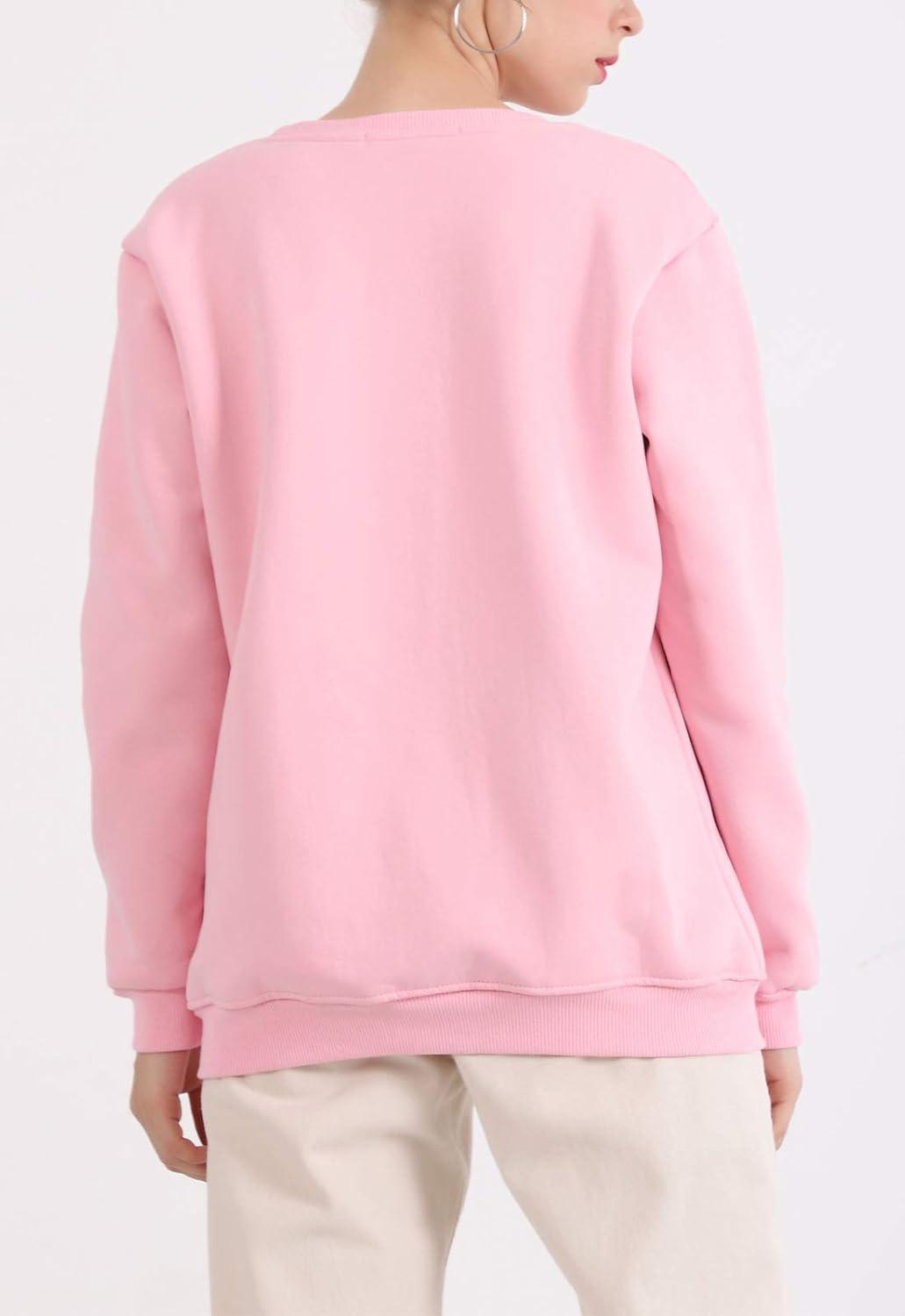 Flygo Women’s Loose Sherpa Fleece Lined Pullover Crewneck Sweatshirt(Pink)