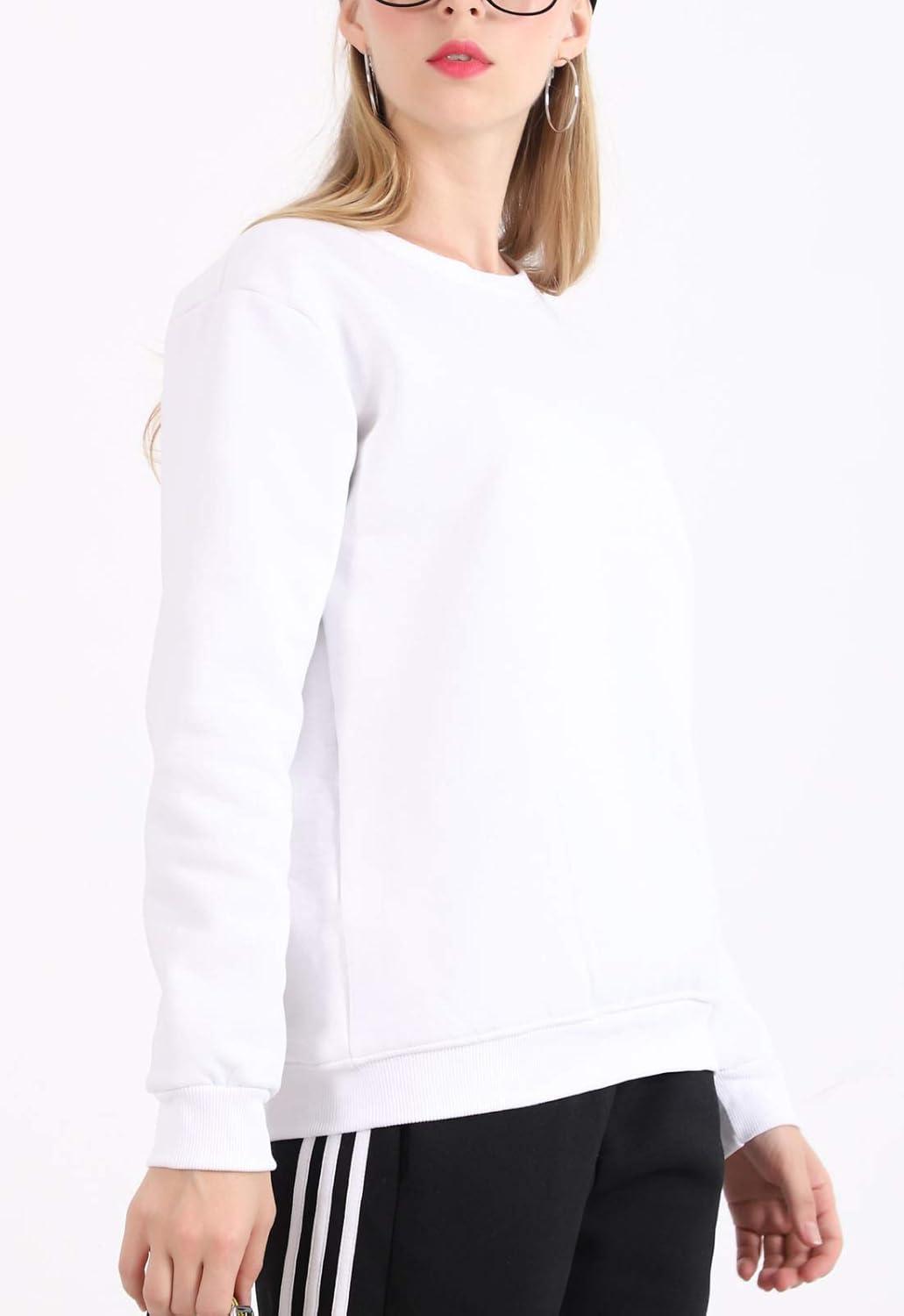 Flygo Women’s Loose Sherpa Fleece Lined Pullover Crewneck Sweatshirt(White)