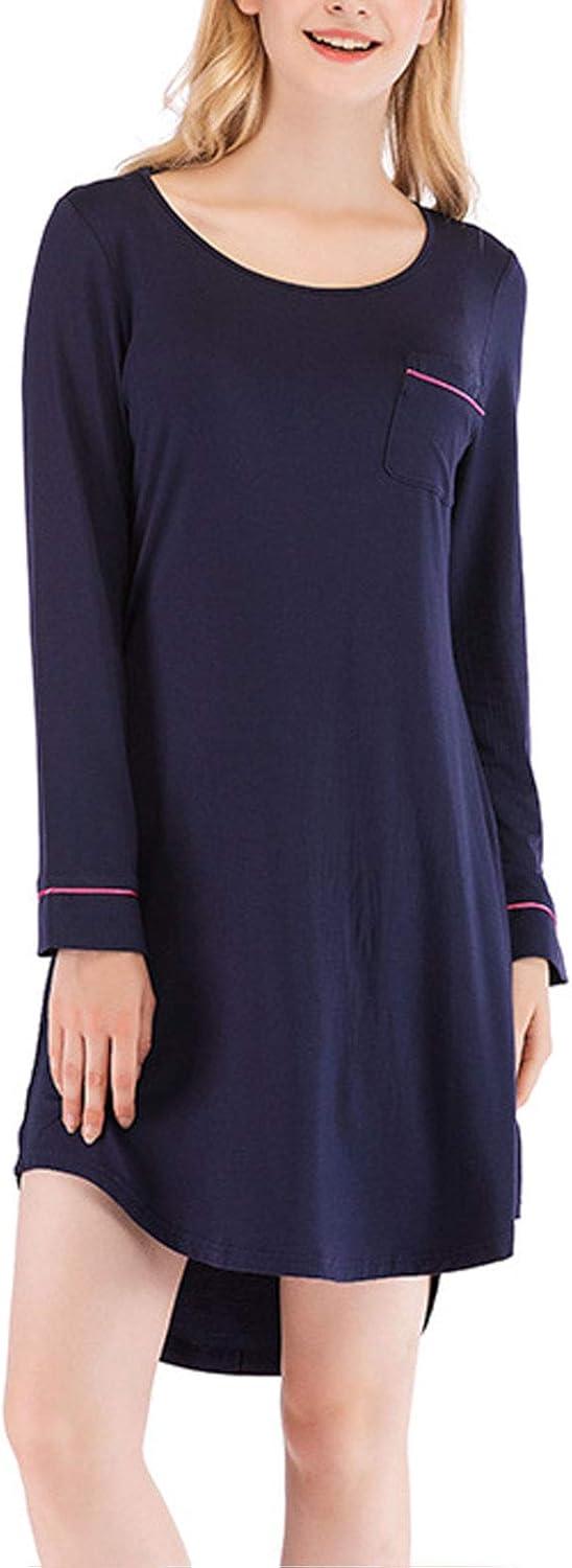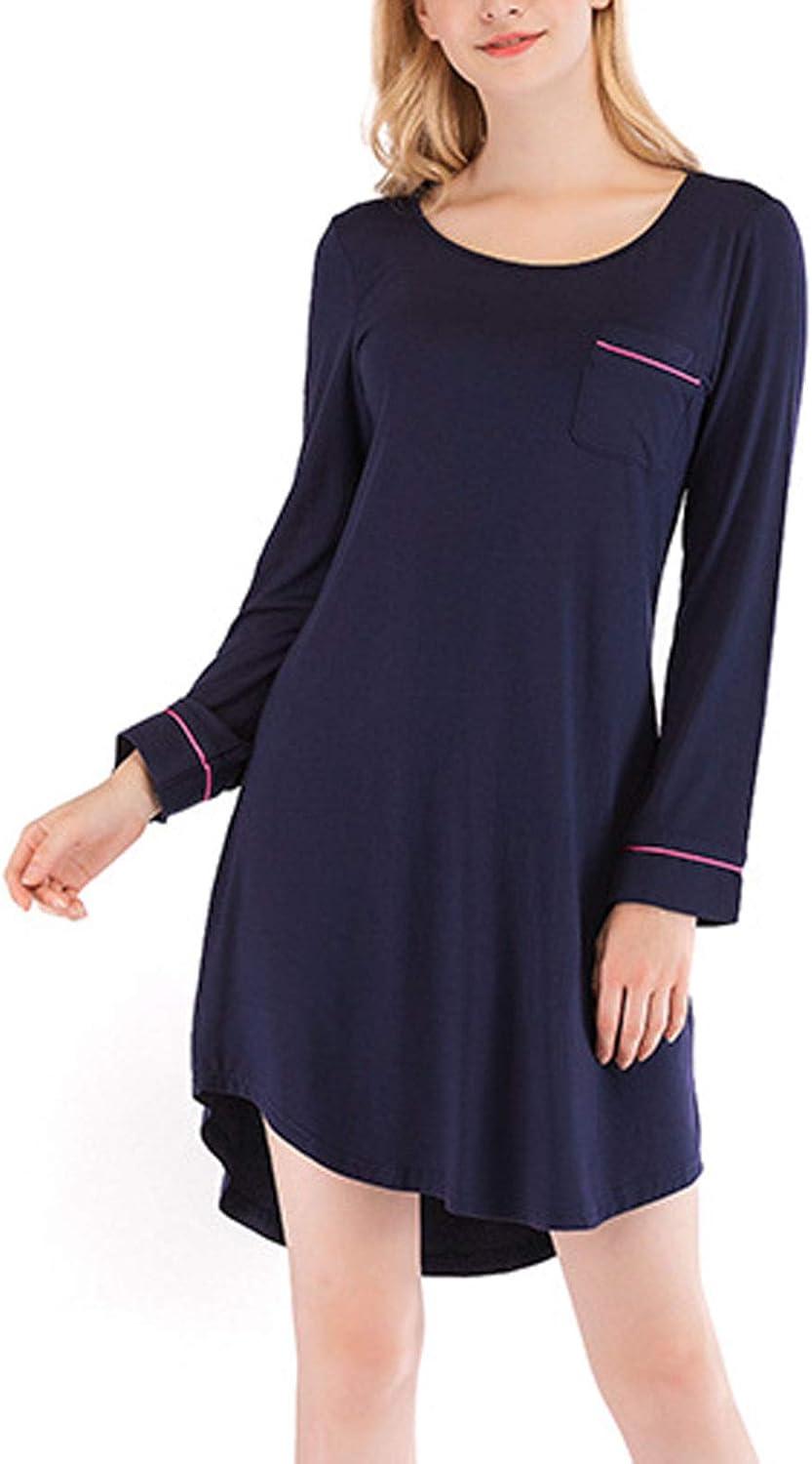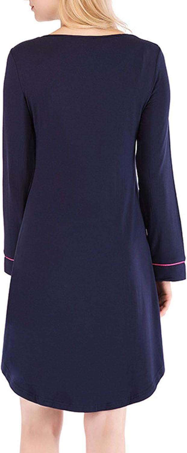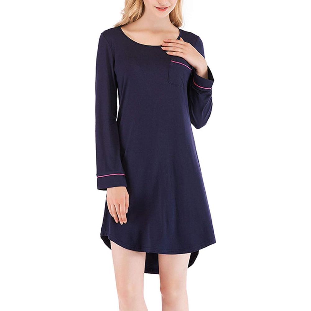 Flygo Womens Modal Nightgown Long Sleeve Scoopneck Sleepshirt(Navy)