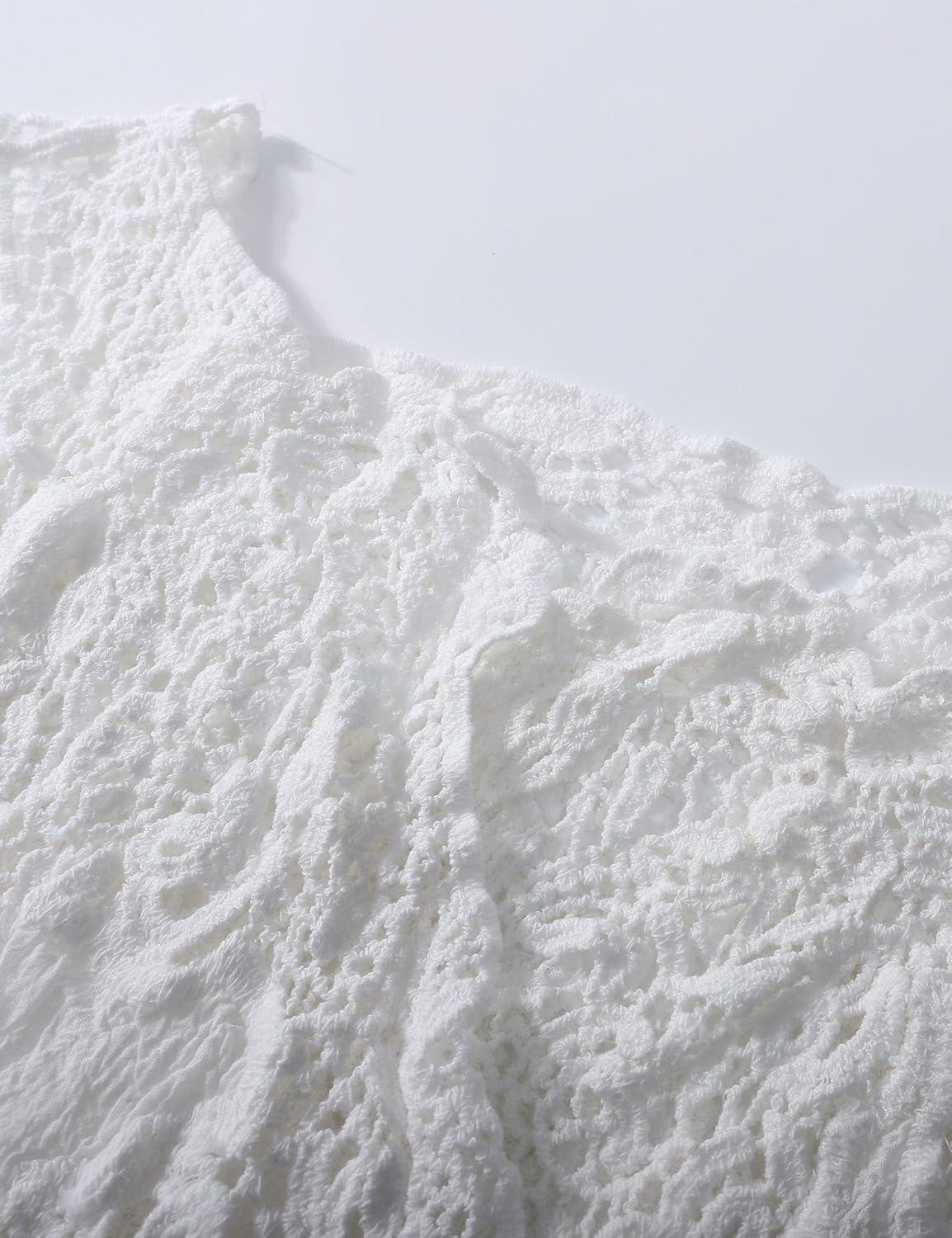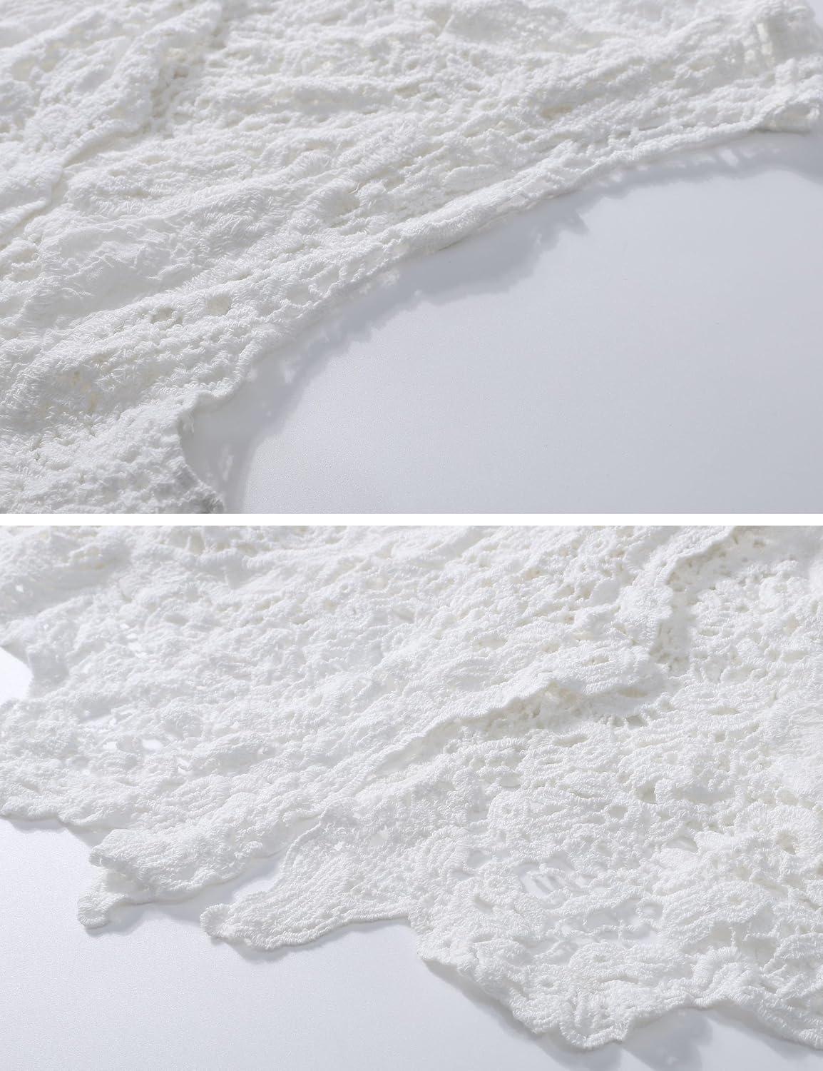 Flygo Women’s Open Front Cotton Crochet Lace Boho Hippie Butterfly Vest Cardigan Coverup Sleeveless Irregular Hem(Beige)