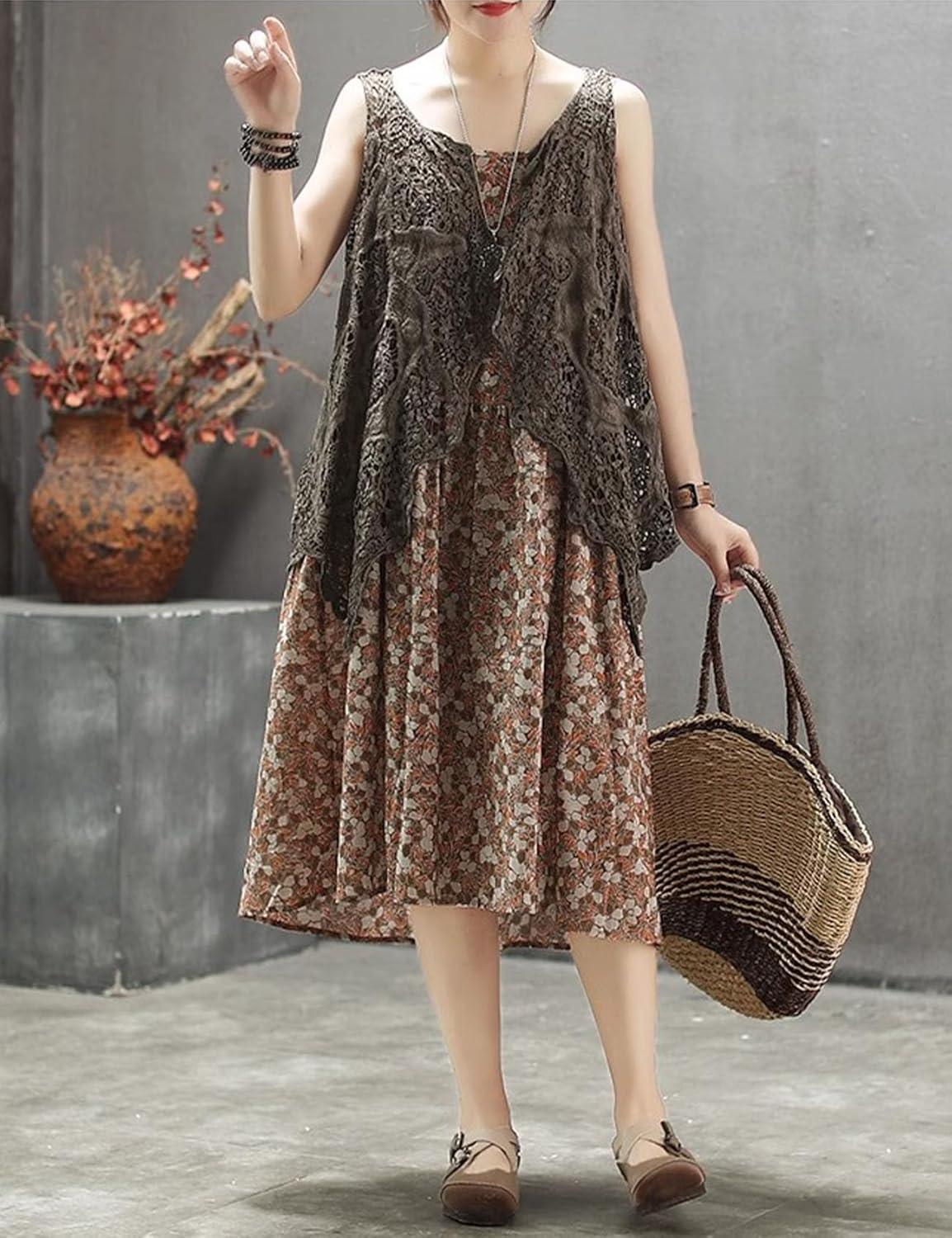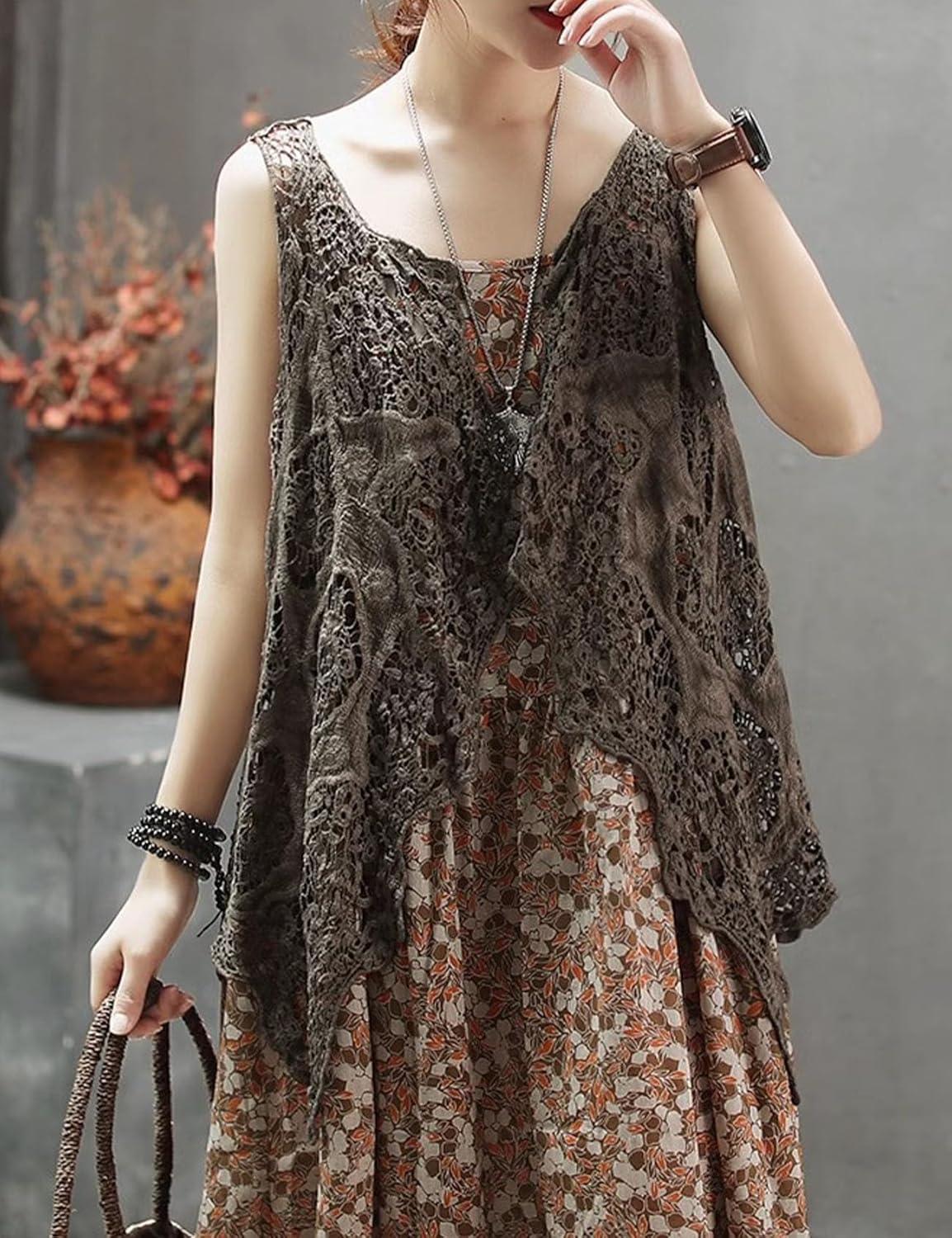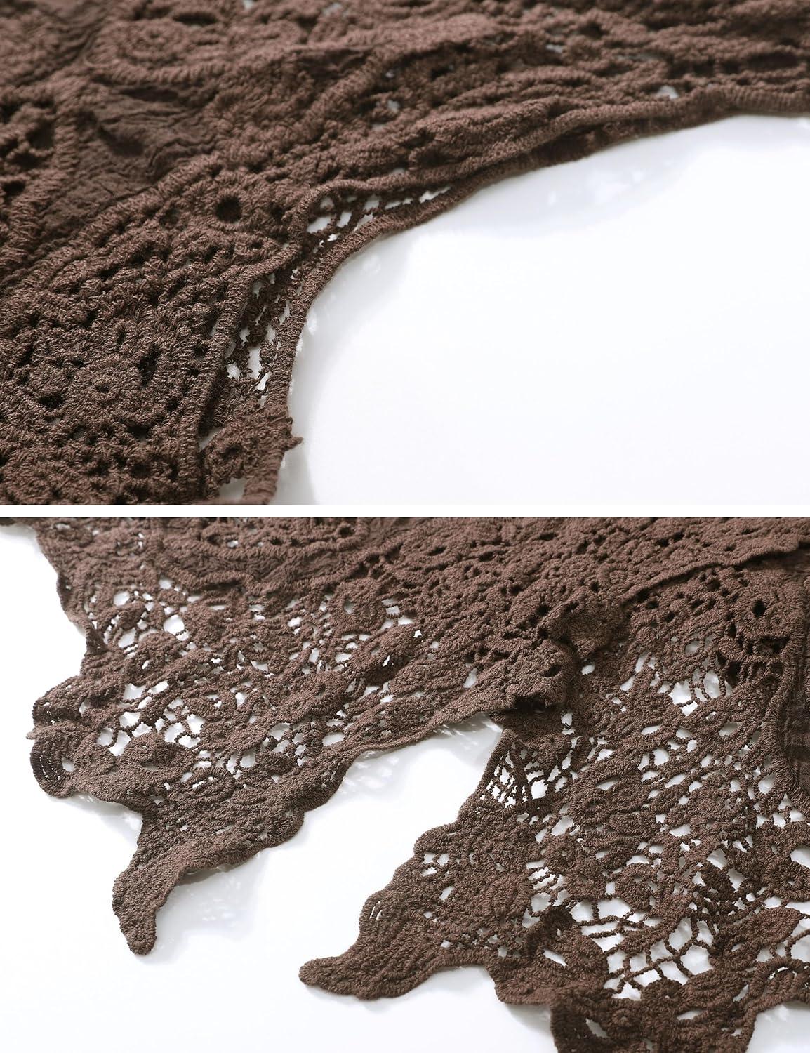 Flygo Women’s Open Front Cotton Crochet Lace Boho Hippie Butterfly Vest Cardigan Coverup Sleeveless Irregular Hem(Coffee)