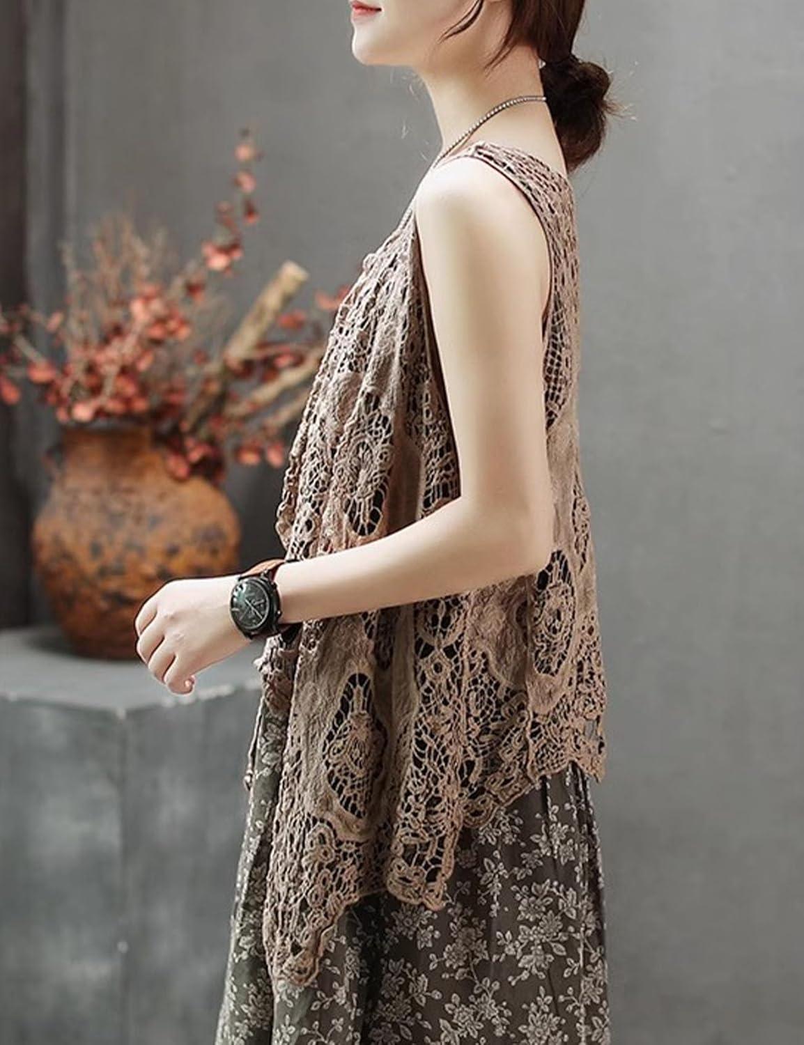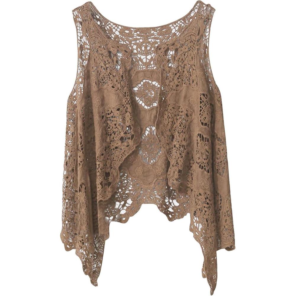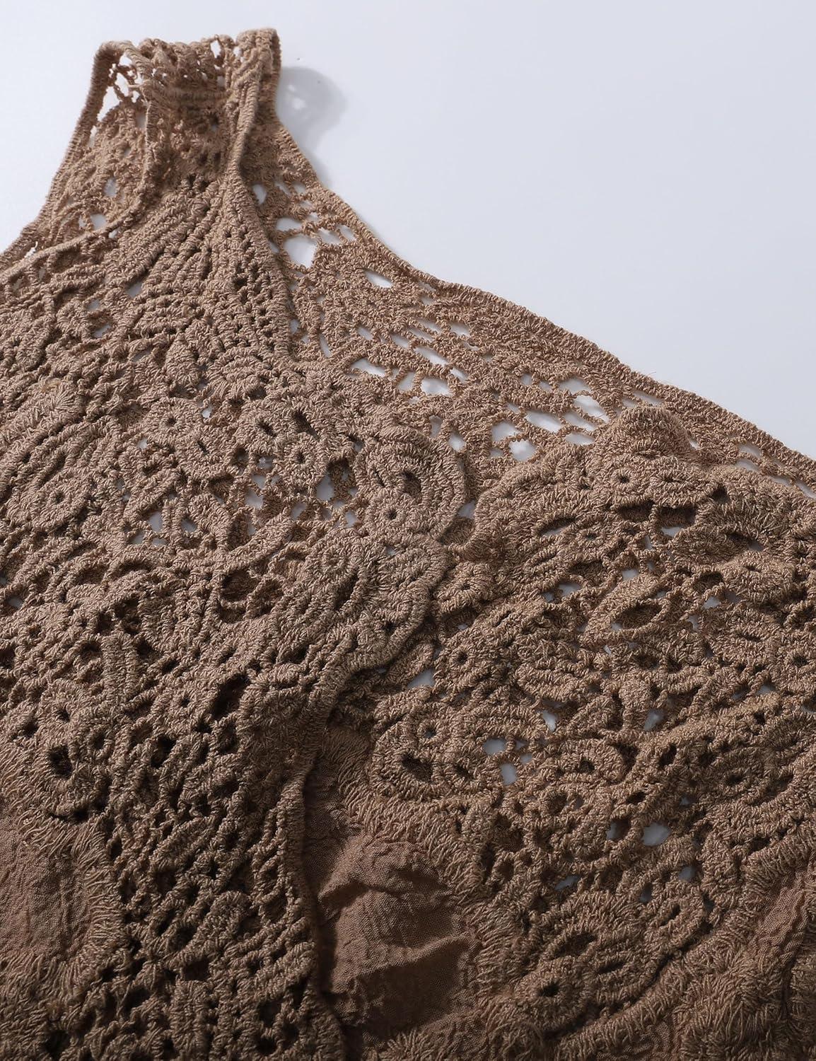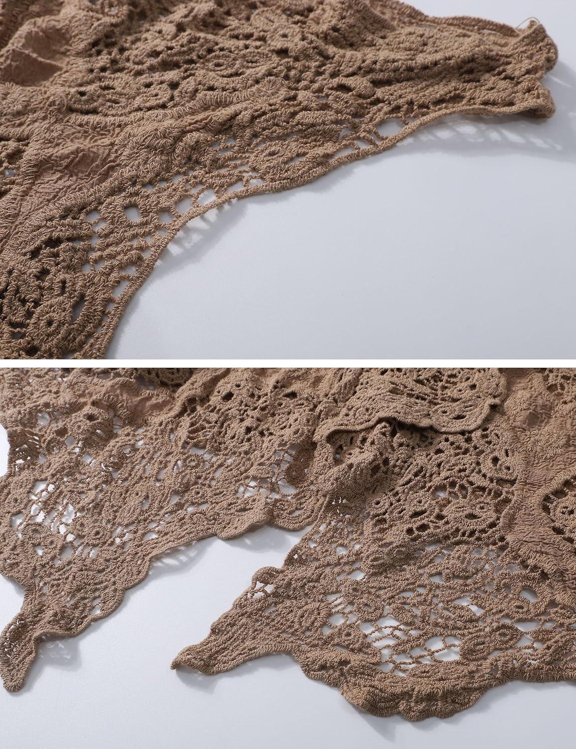 Flygo Women’s Open Front Cotton Crochet Lace Boho Hippie Butterfly Vest Cardigan Coverup Sleeveless Irregular Hem(Khaki)