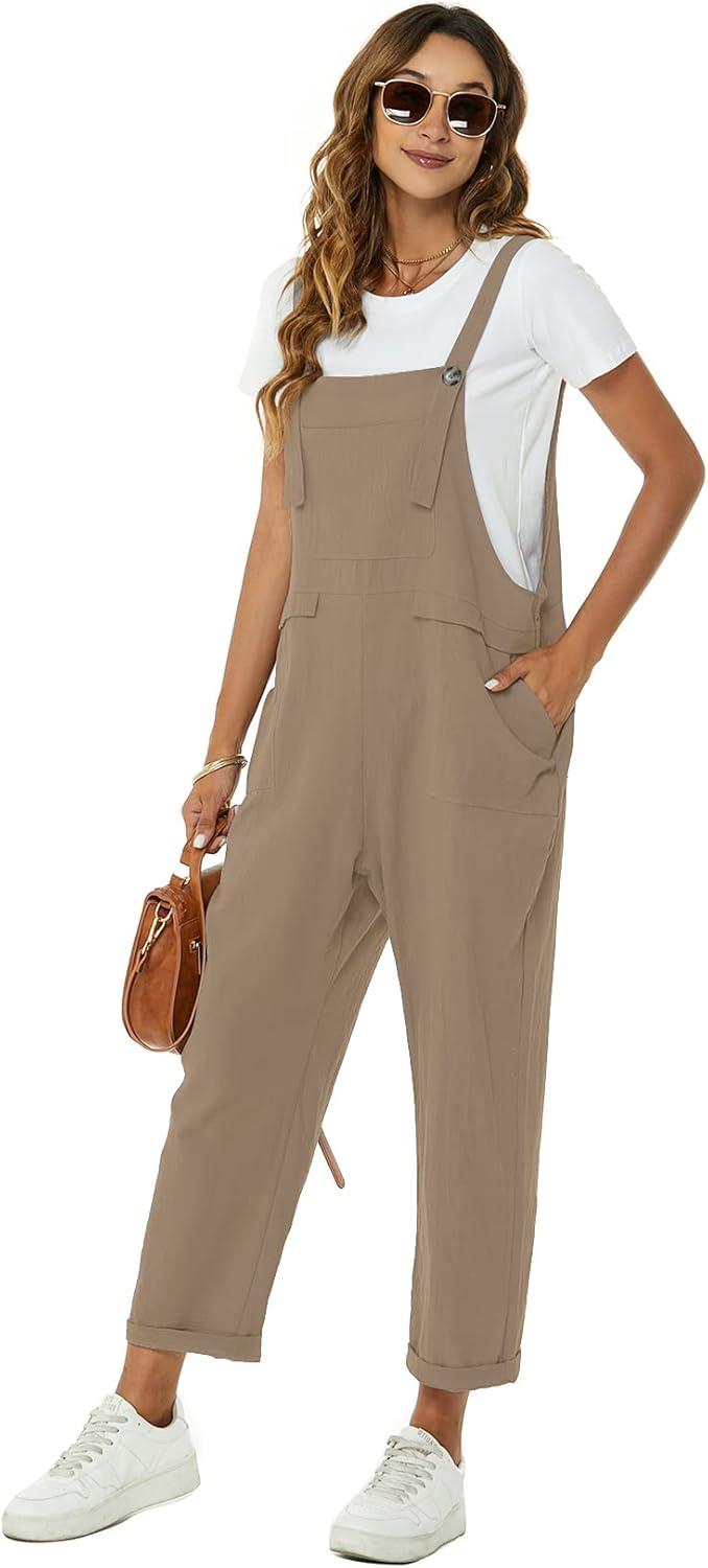 Our clearance event features the best deals on Flygo Womens Overalls Cotton Linen Overalls for Women Loose Fit Harem Wide Leg Jumpsuit with Pockets(Dark Khaki) and accessories. Shop now!