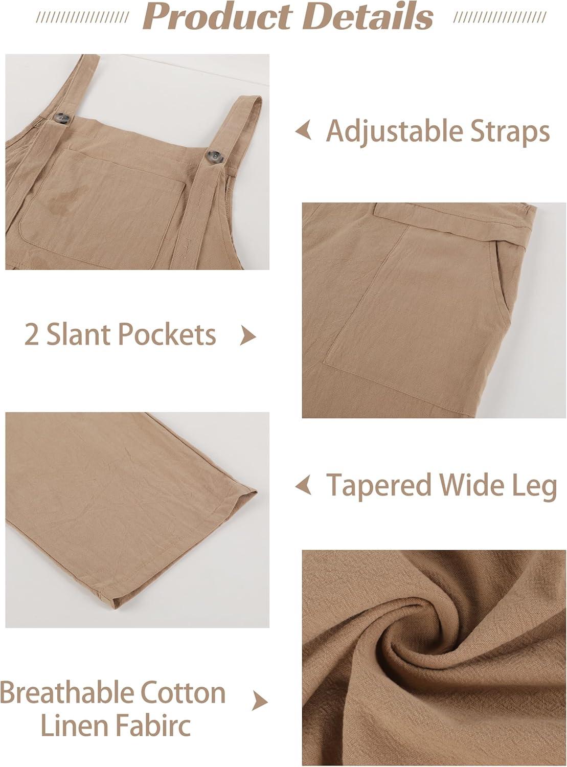 Flygo Womens Overalls Cotton Linen Overalls for Women Loose Fit Harem Wide Leg Jumpsuit with Pockets