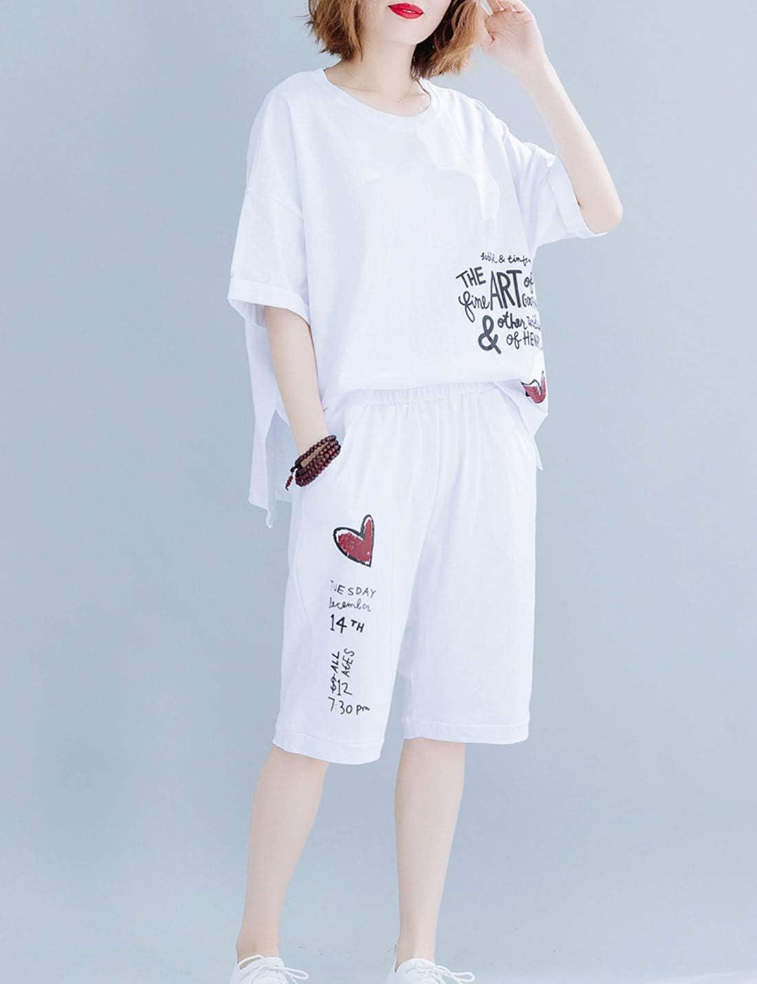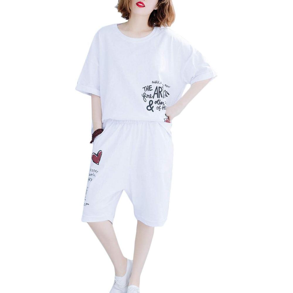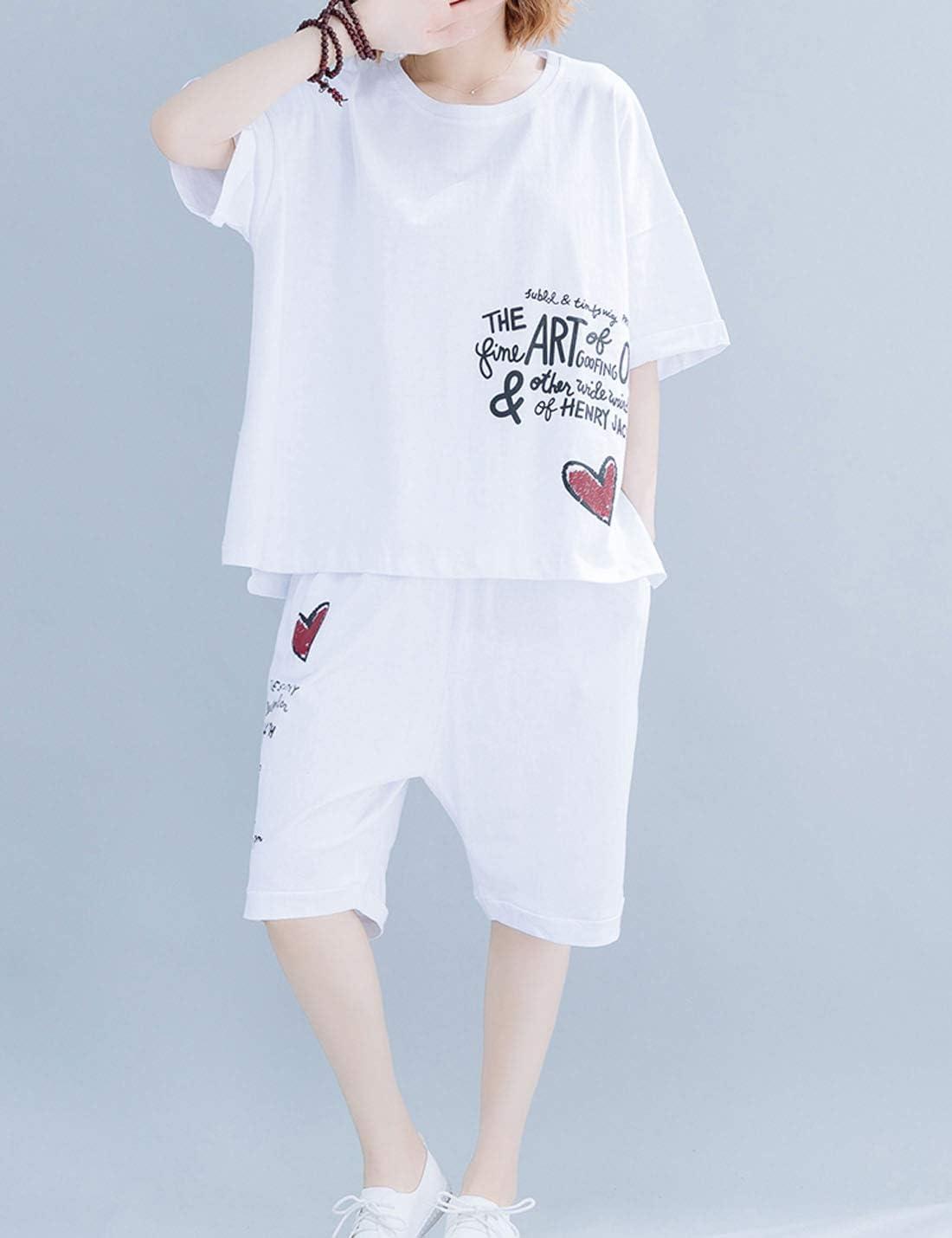 Flygo Women’s Pajama Sets Outfits Casual Short Sleeve Summer Shorts Pjs Set Sleepwear Tracksuit(White)