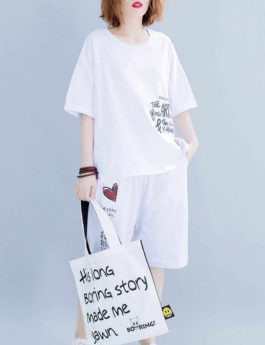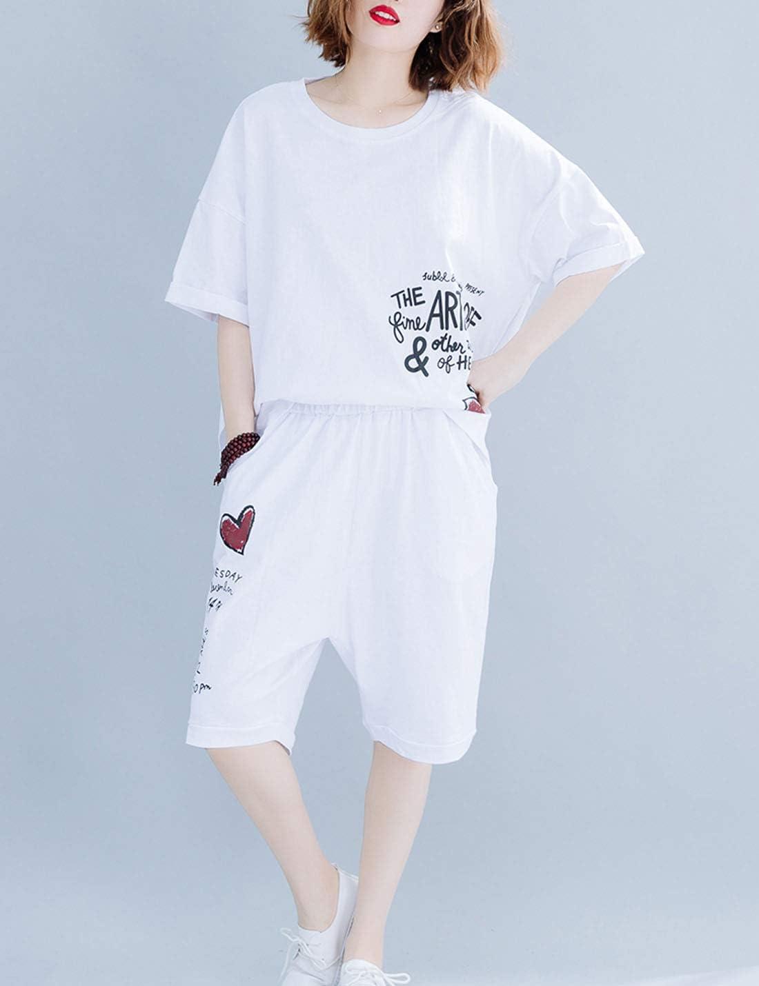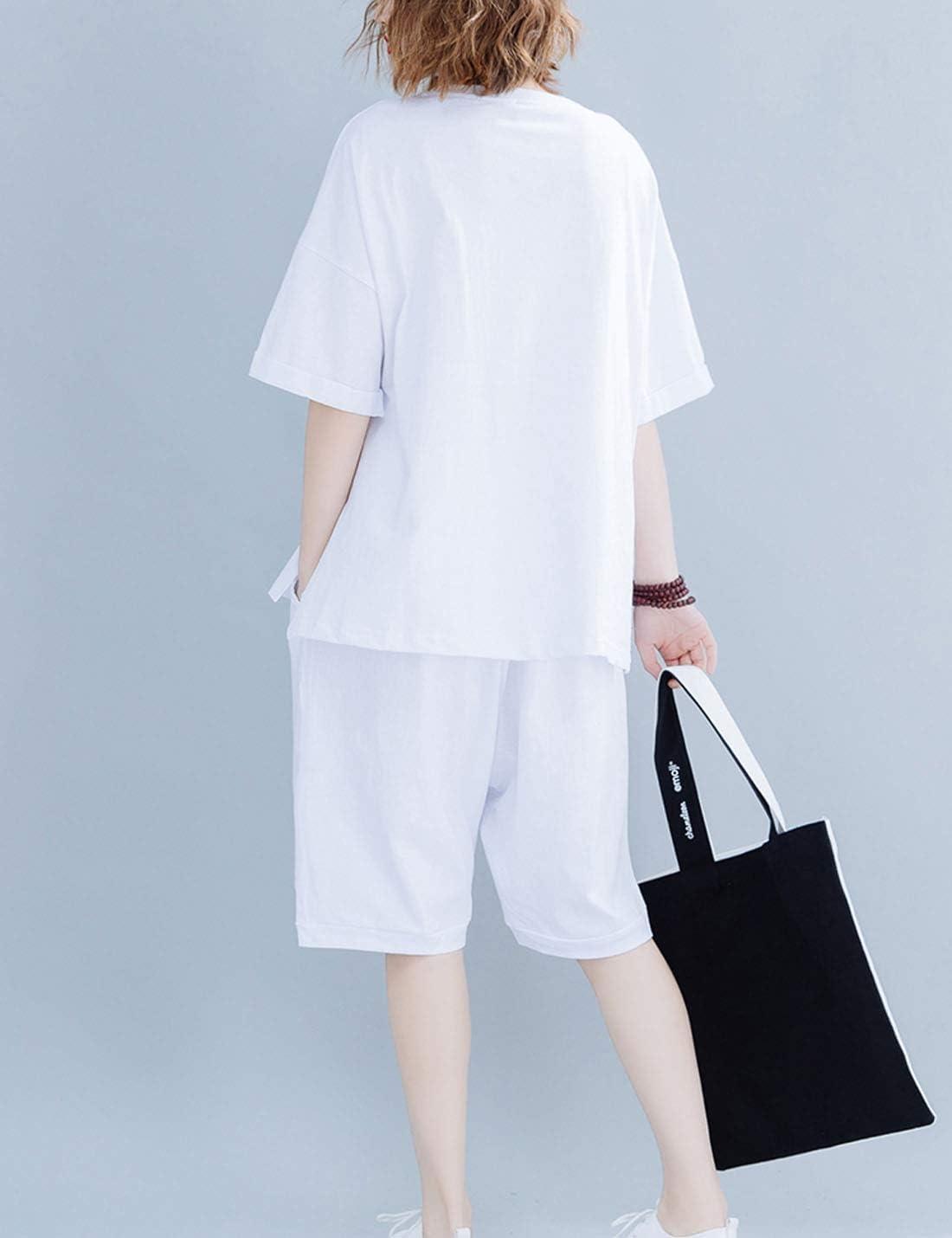 Flygo Women’s Pajama Sets Outfits Casual Short Sleeve Summer Shorts Pjs Set Sleepwear Tracksuit(White)