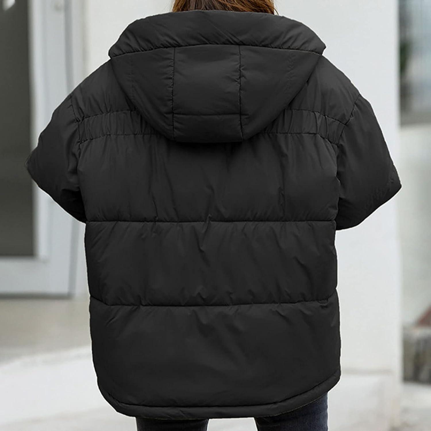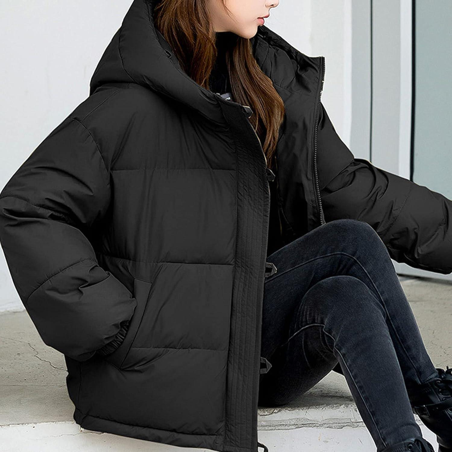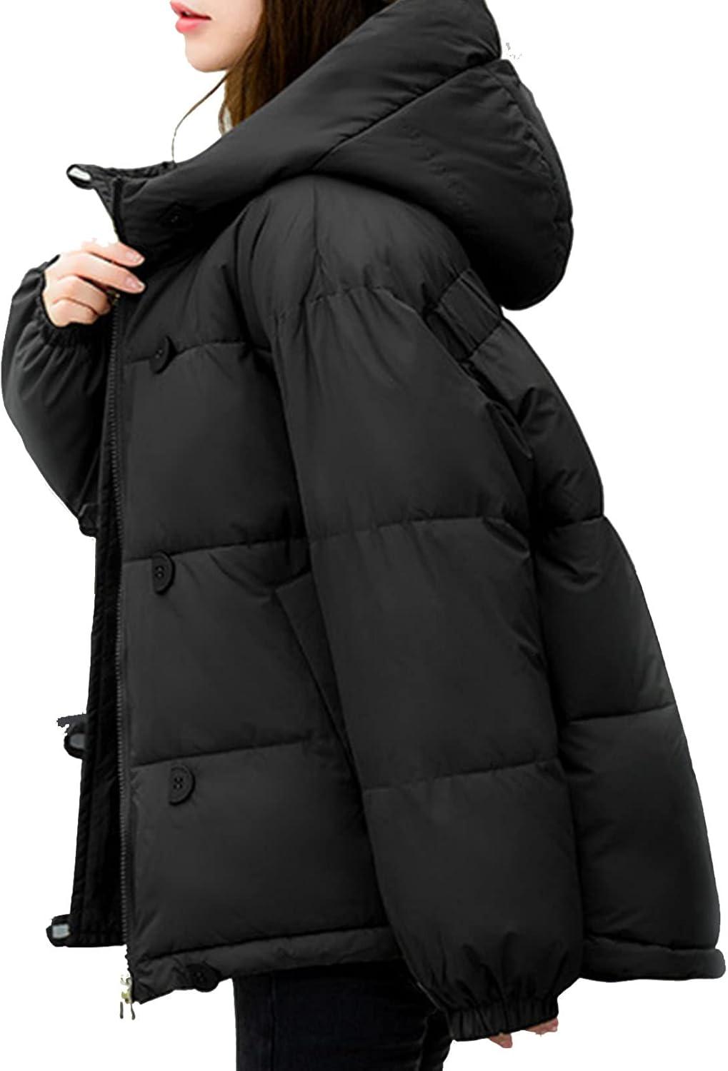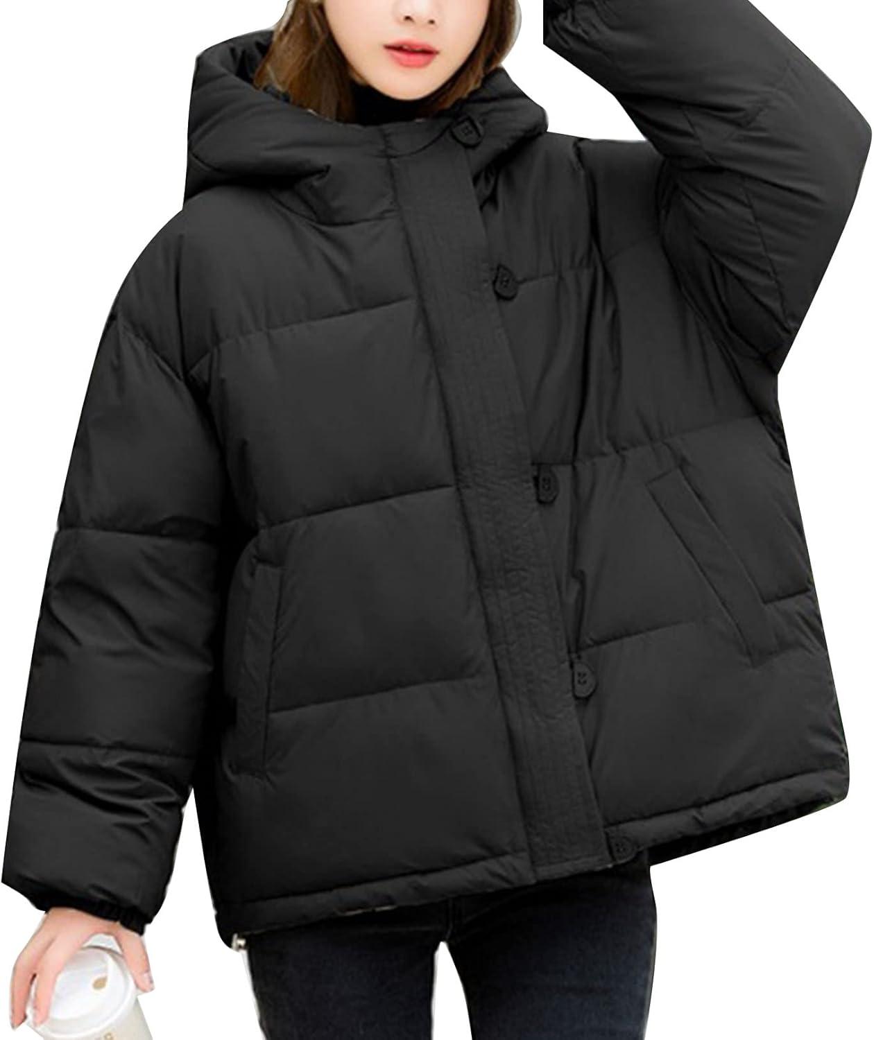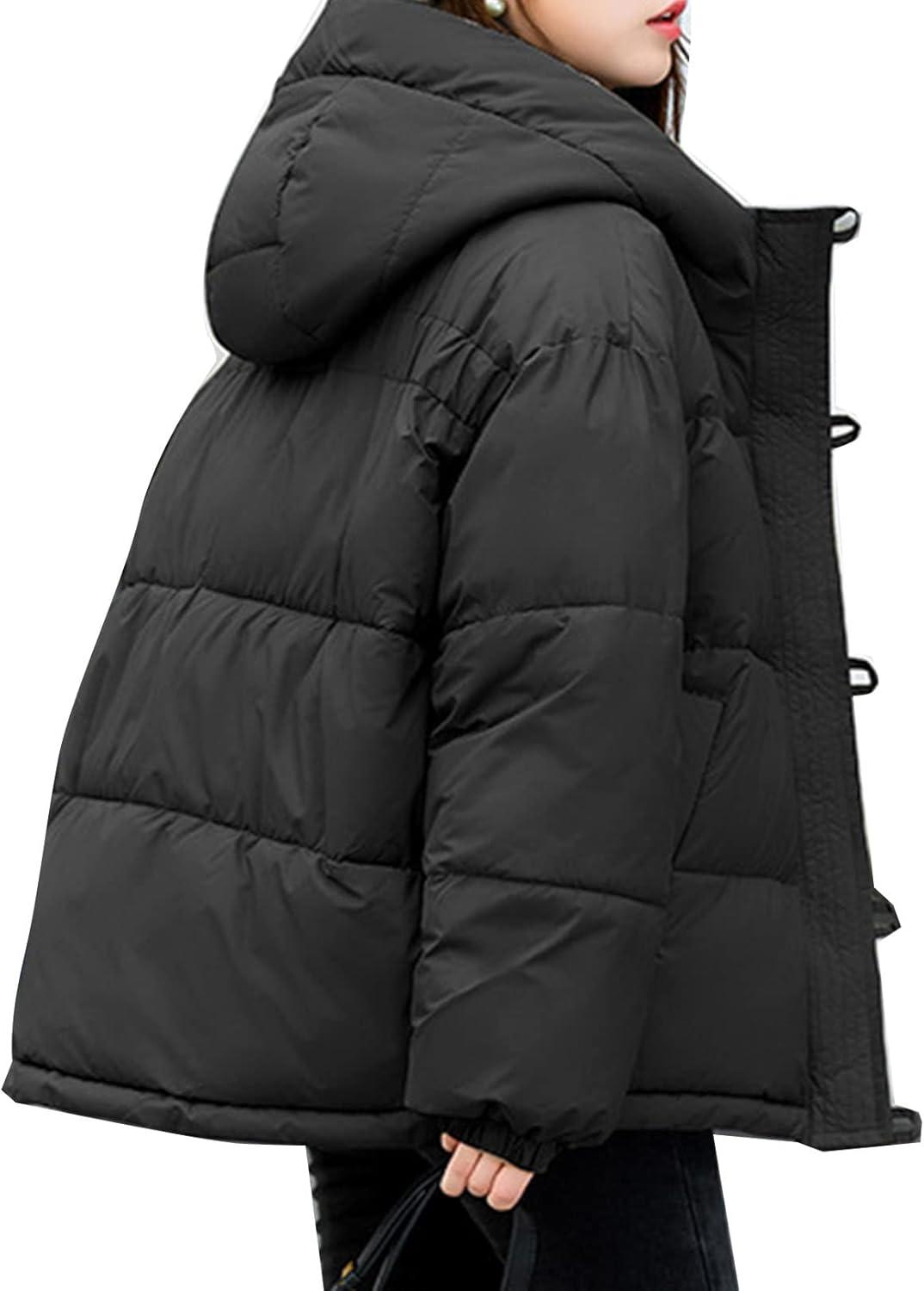Flygo Womens Puffer Down Jacket Winter Bubble Quilted Coat with Hood Warm Padded Outerwear(Black)