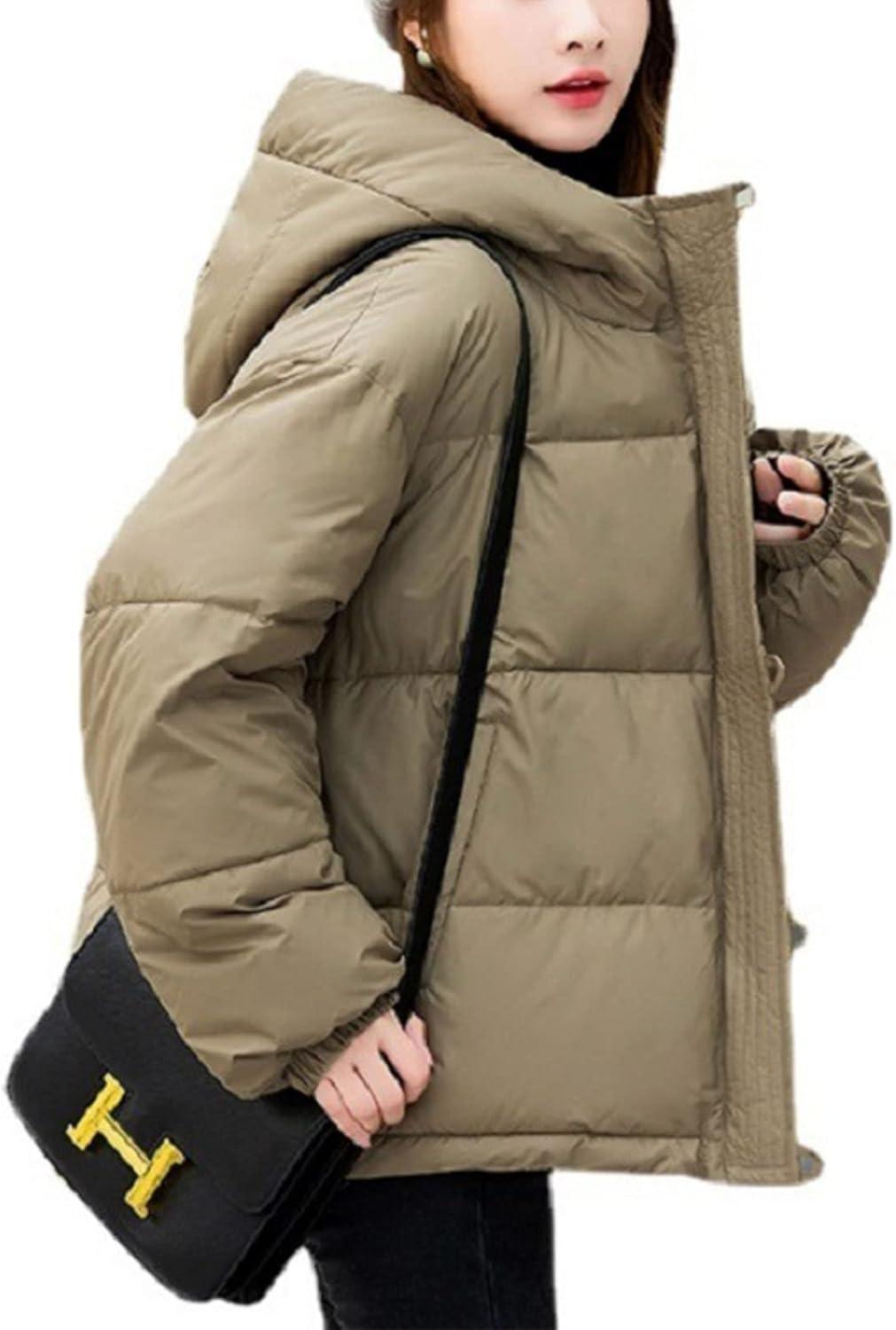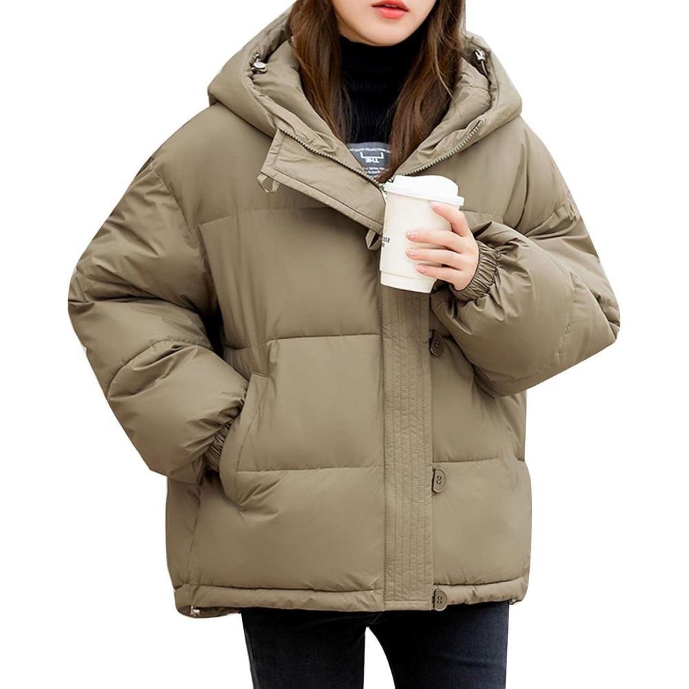Flygo Womens Puffer Down Jacket Winter Bubble Quilted Coat with Hood Warm Padded Outerwear(Khaki)
