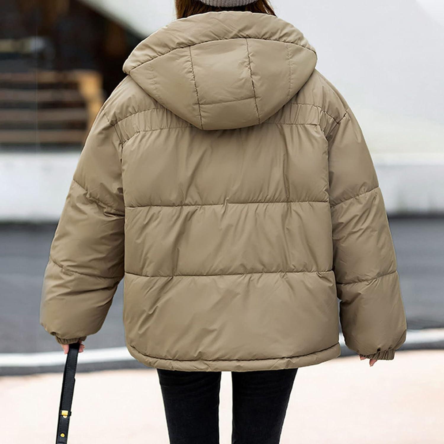 Women's long sleeve zipper puffy jacket quilted short down coat with pockets must in your wardrobe.
