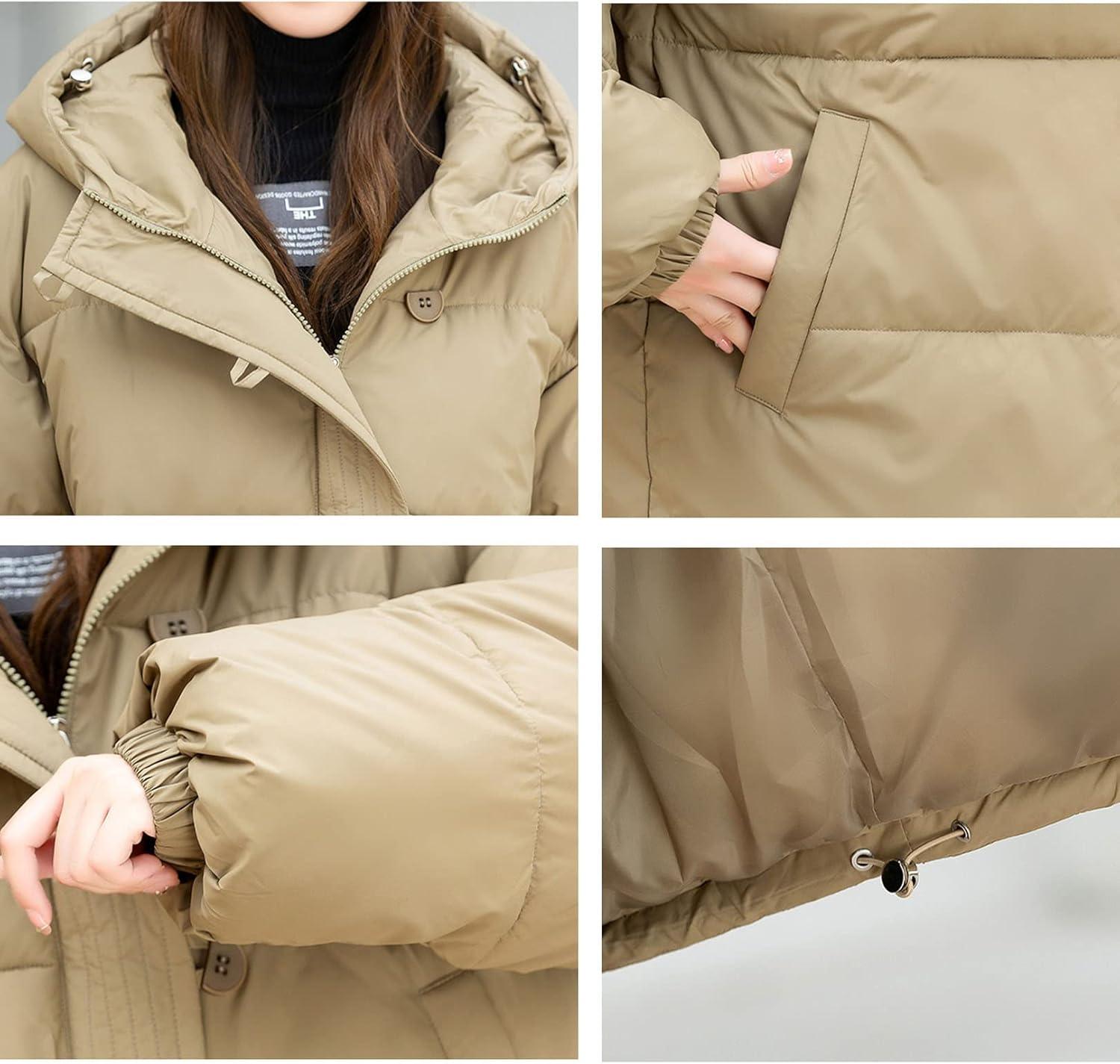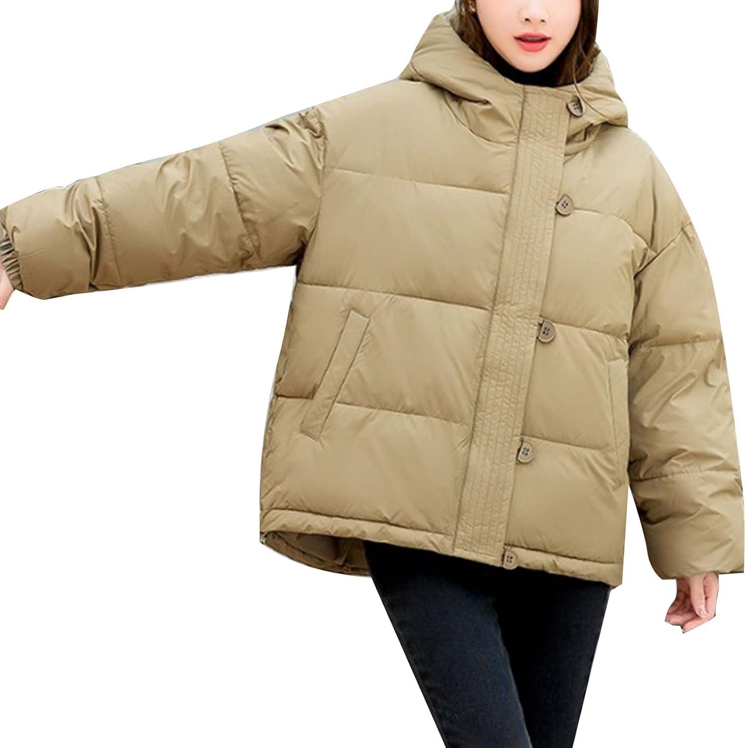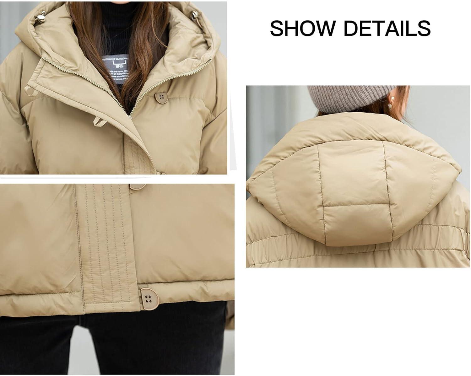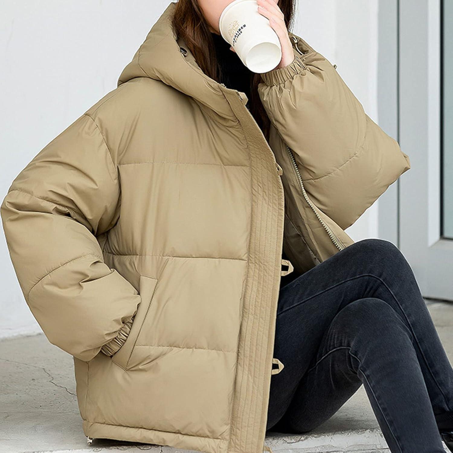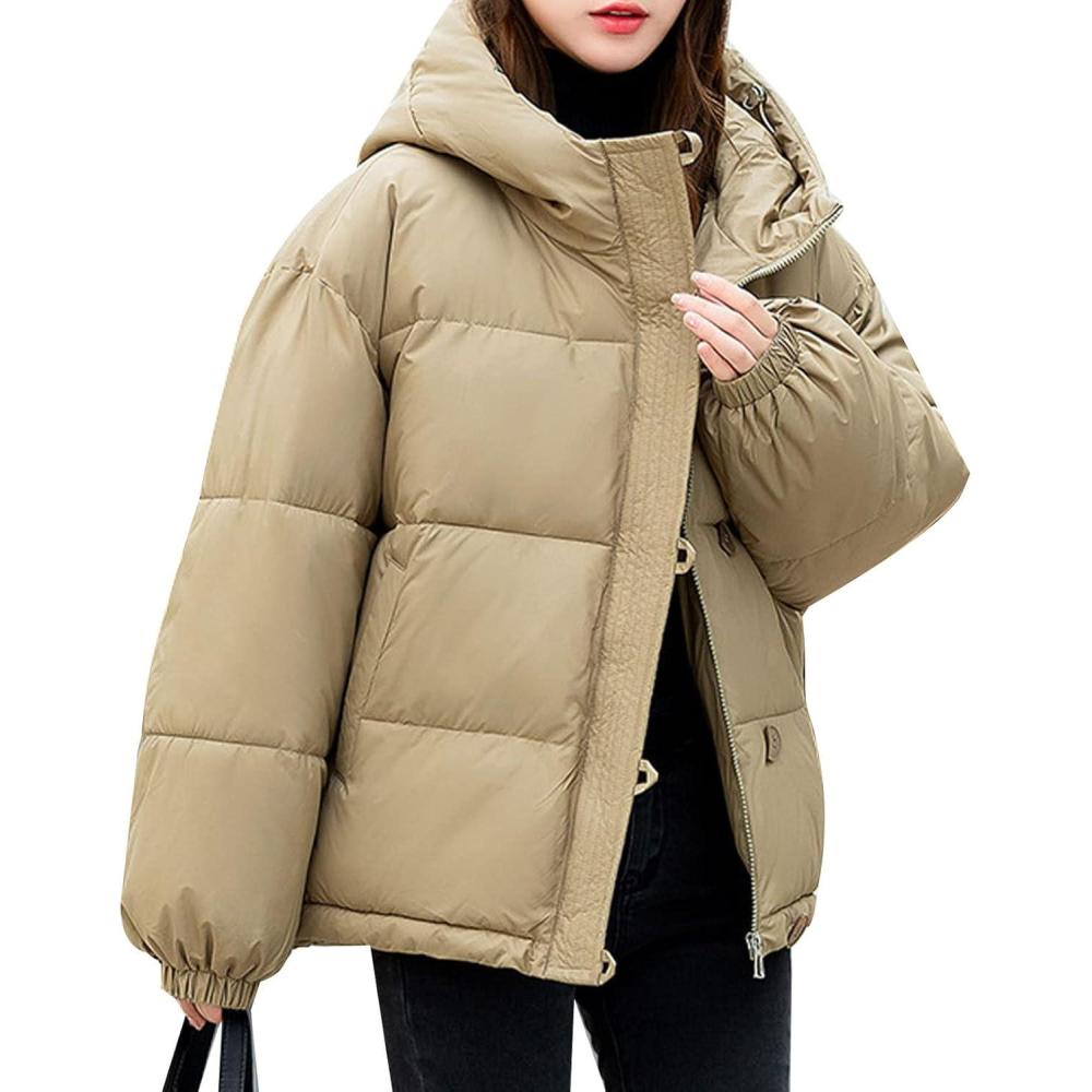 Flygo Womens Puffer Down Jacket Winter Bubble Quilted Coat with Hood Warm Padded Outerwear(Khaki)