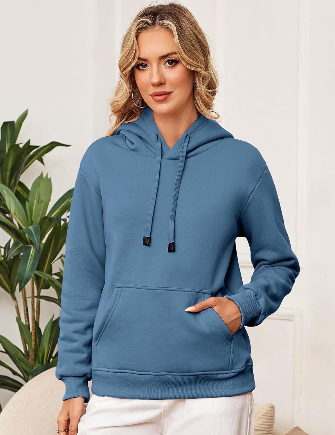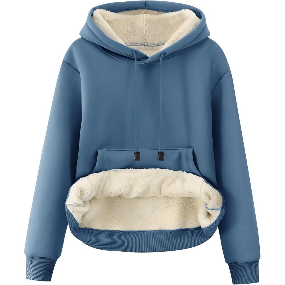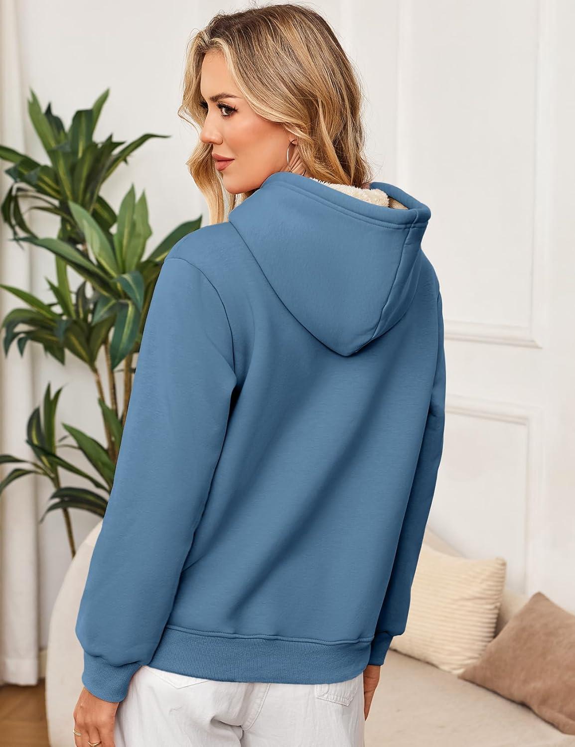 Flygo Women’s Sherpa Fleece Lined Hoodie Winter Warm Thermal Heavyweight Plain Pullover Thicken Sweatshirt Tops with Pockets(Dustyblue)
