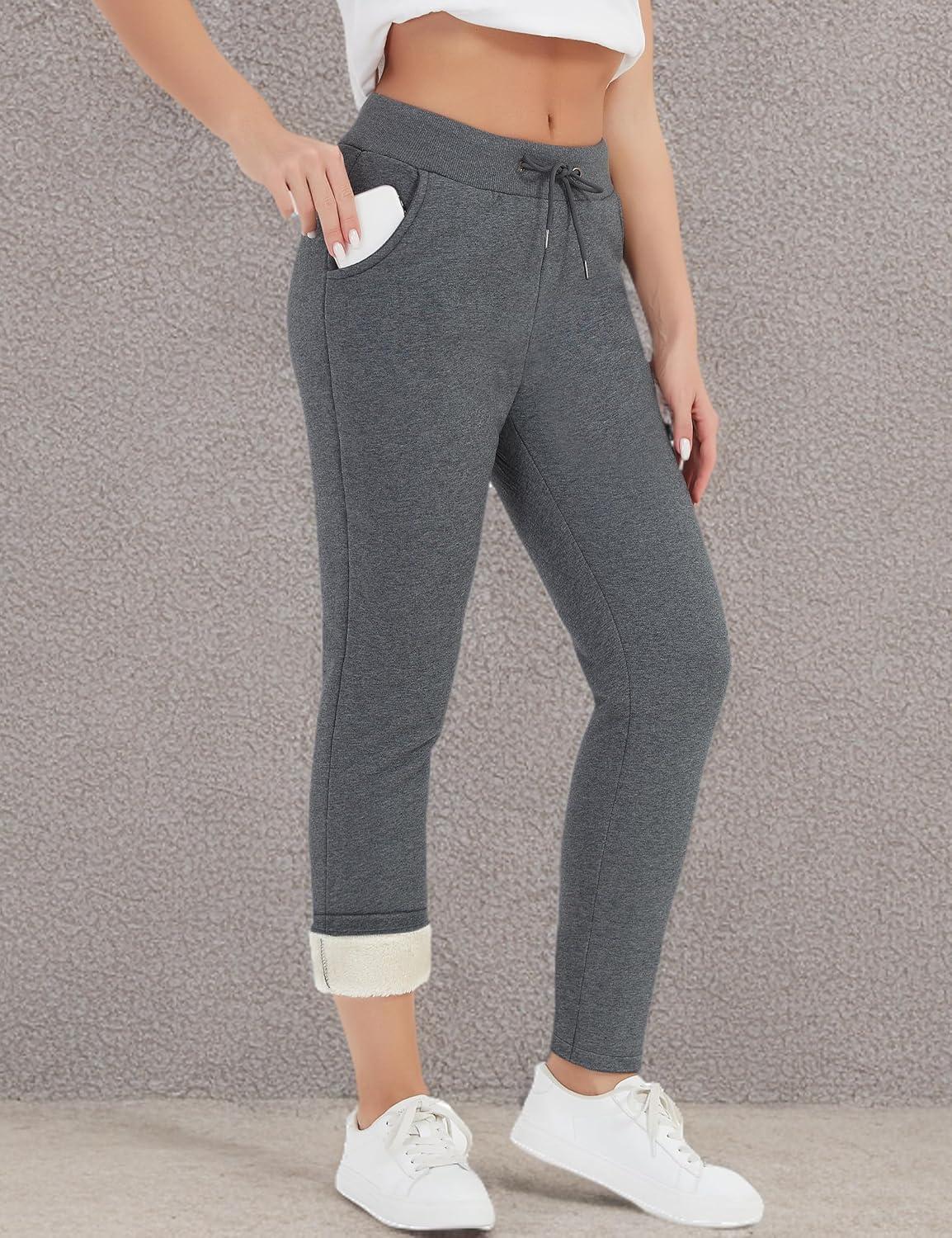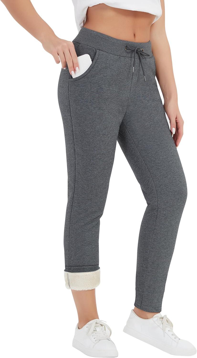 Flygo Womens Sherpa Lined Athletic Sweatpants Winter Active Joggers Fleece Pants(Dark Grey)
