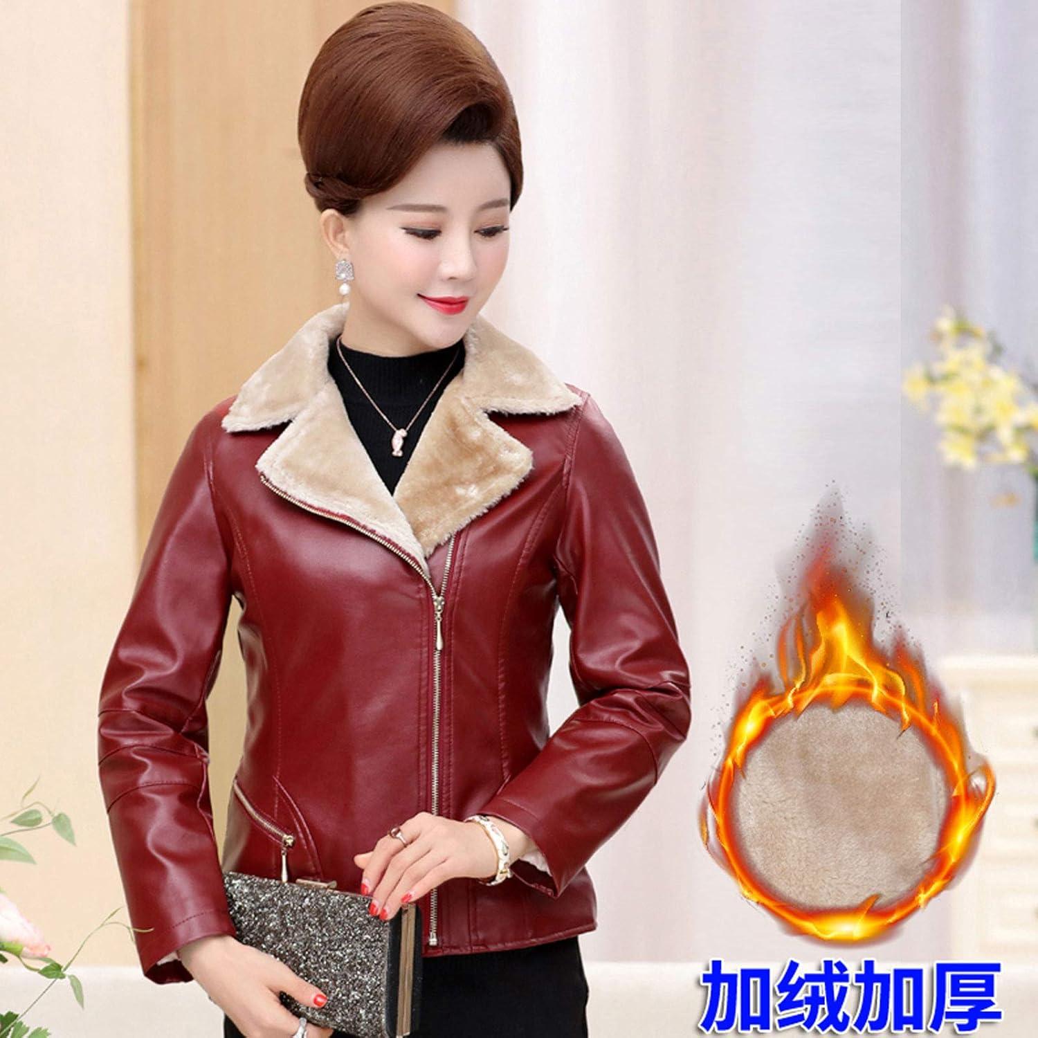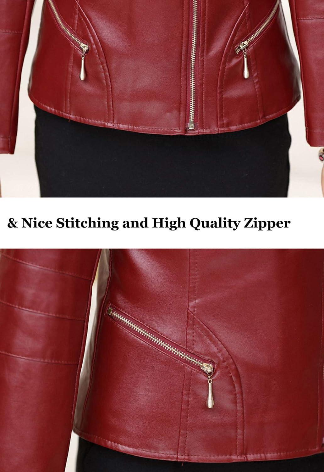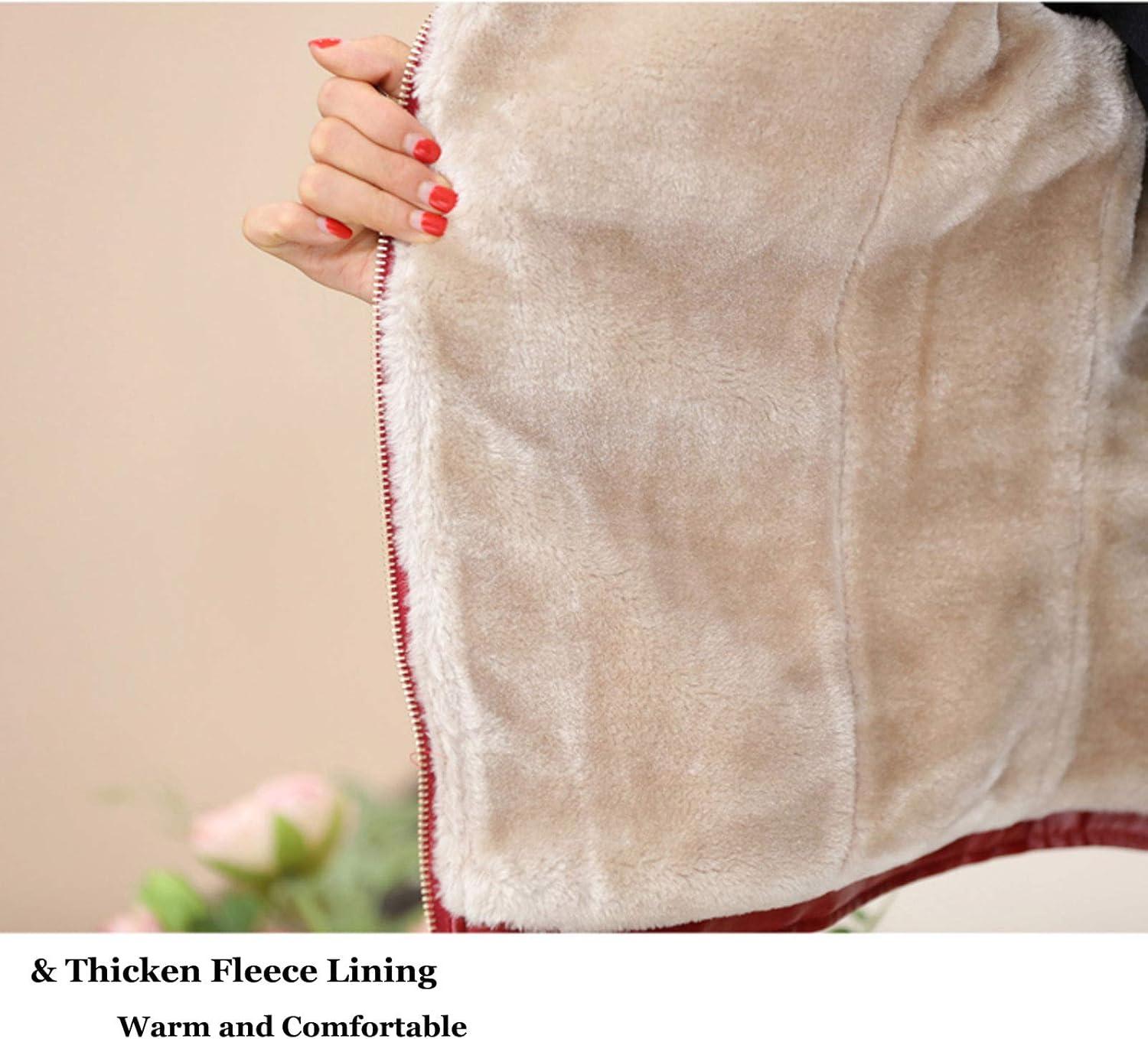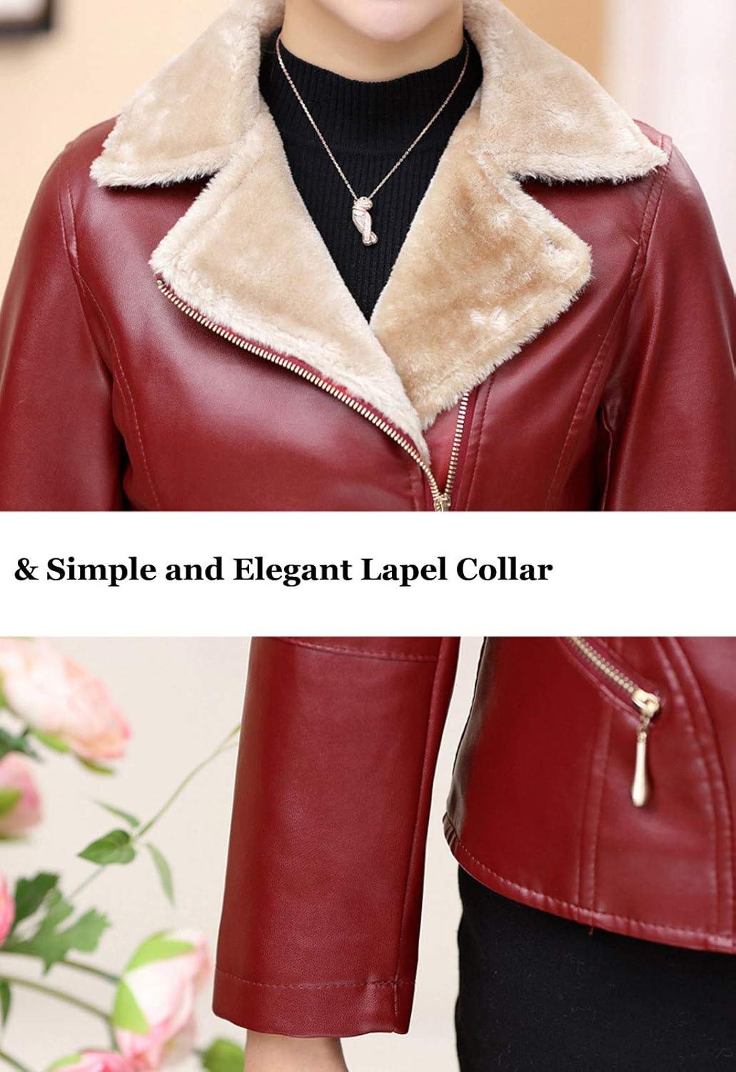 Flygo Womens Sherpa Lined Thick Warm PU Leather Jacket Women Tops(Red)