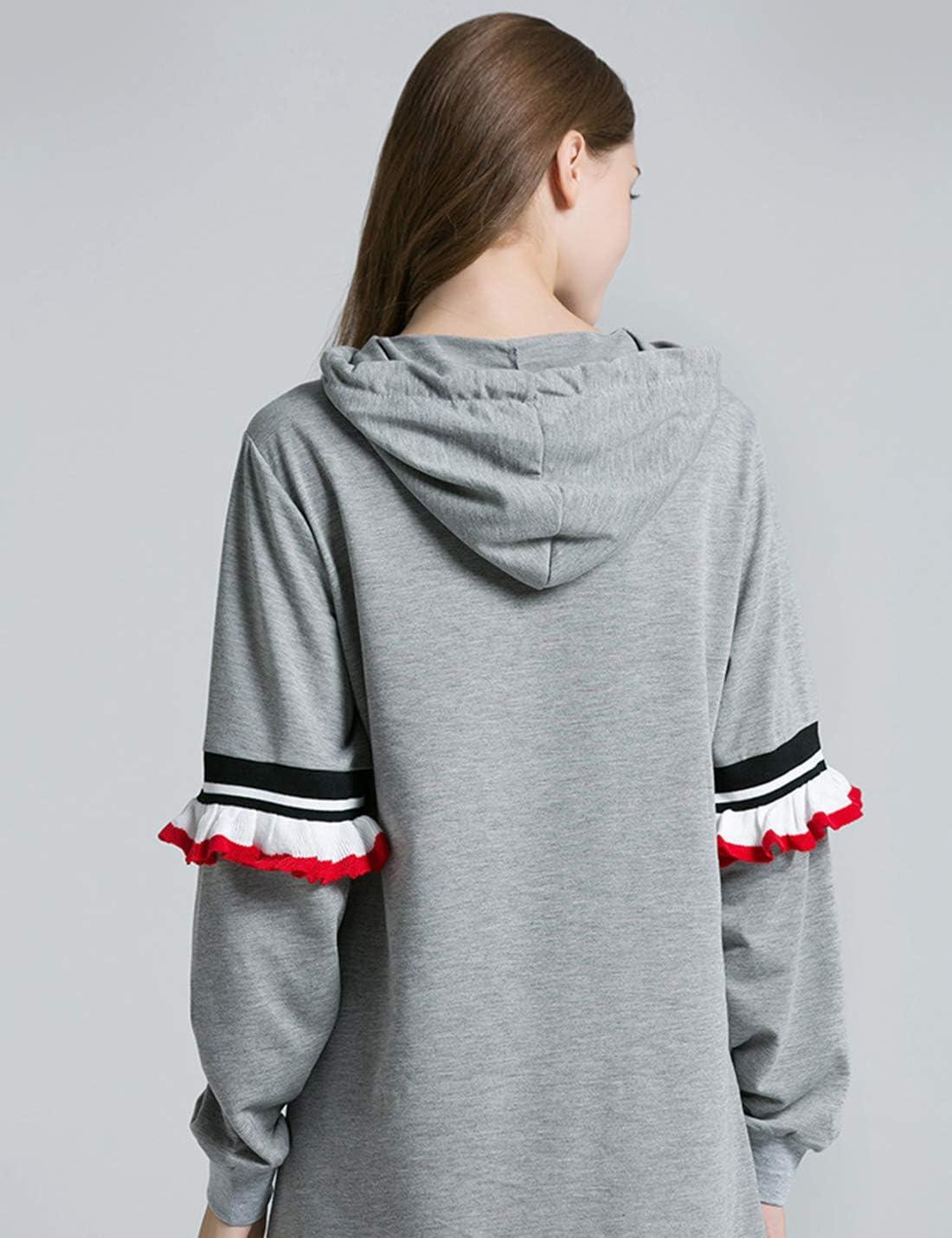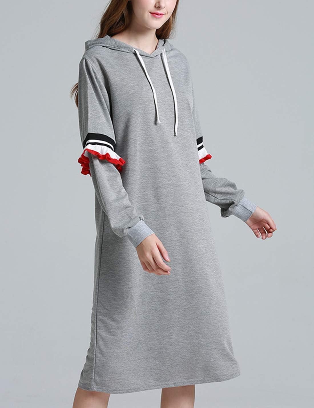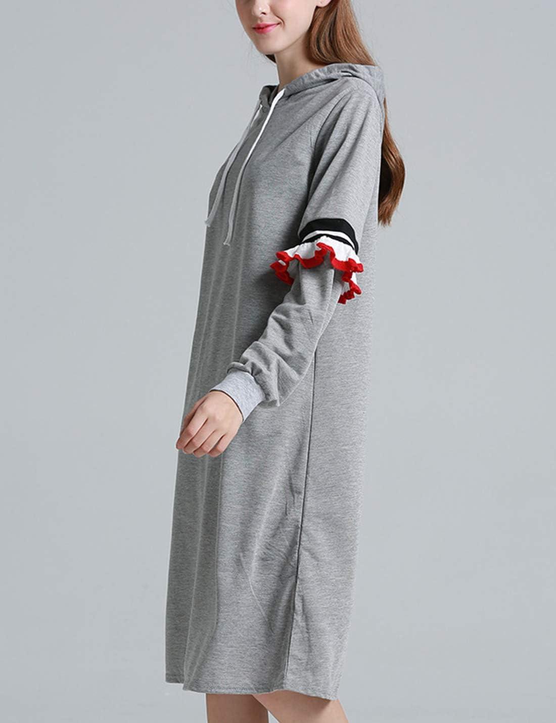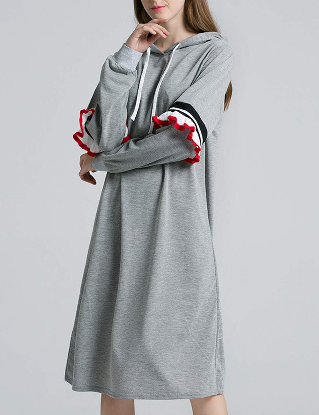 Flygo Women’s Solid Loose Long Sleeve Pullover Hoodie Sweatshirt Dress Sleep Wear(Grey)