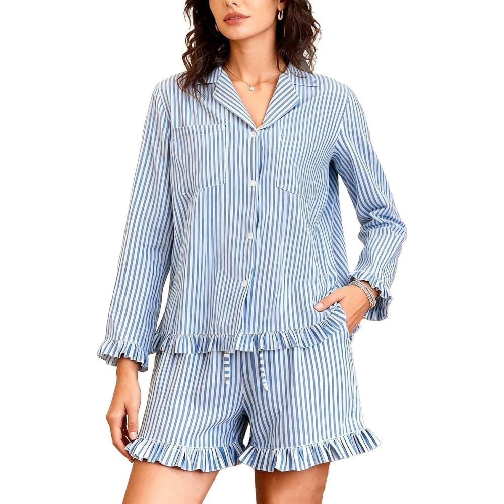 Be the first to review “Flygo Womens Striped Pajama Sets 2 Piece Cotton Long Sleeve Tops and Pj Shorts Sets Casual Lounge Button Down Cozy Sleepwear(Blue)” Cancel reply