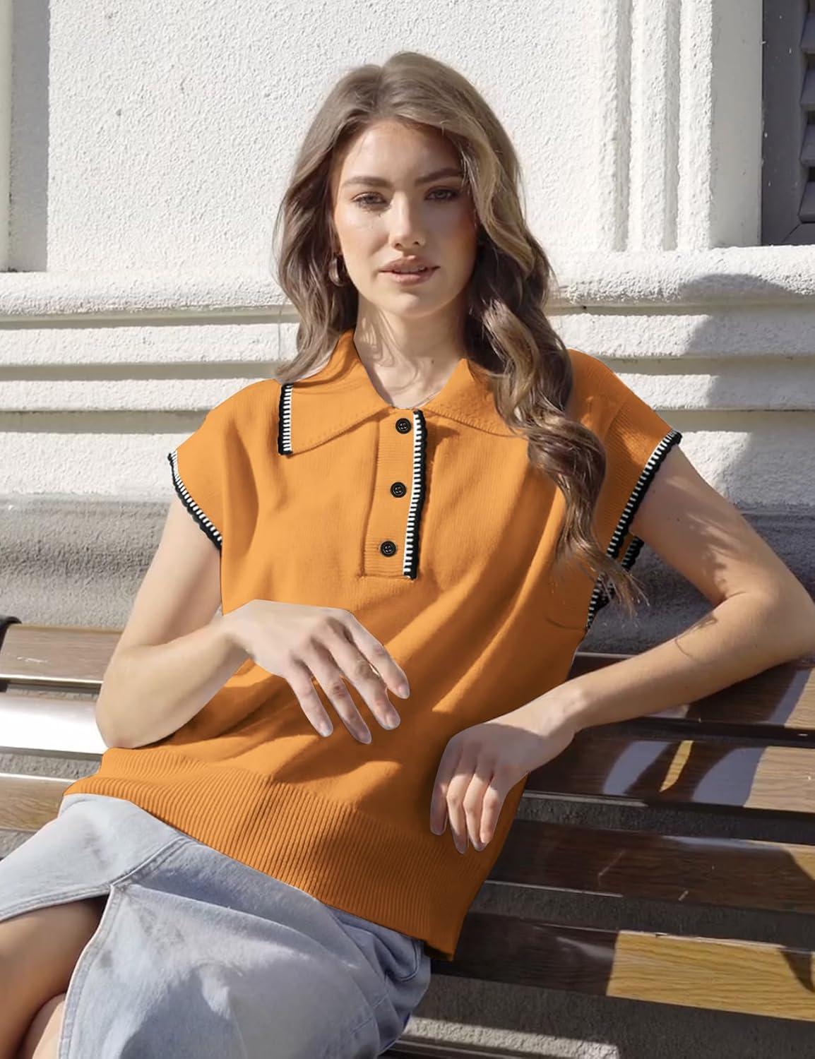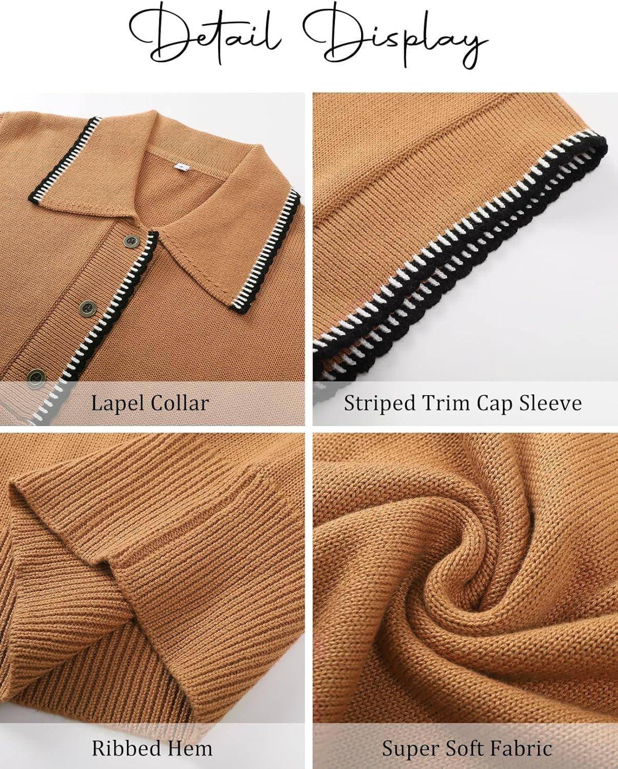 Flygo Womens Sweater Vest Lapel Button Down Sleeveless Tank Tops Cap Sleeve Knit Pullover Summer Spring Sweaters Vest Top(Khaki)
