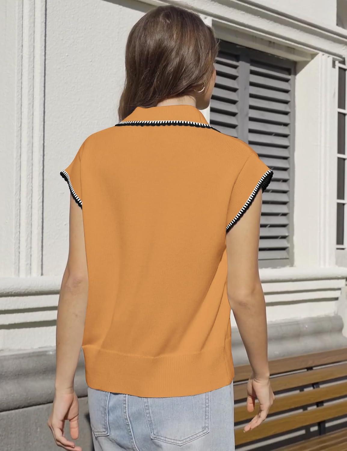 Flygo Womens Sweater Vest Lapel Button Down Sleeveless Tank Tops Cap Sleeve Knit Pullover Summer Spring Sweaters Vest Top(Black)