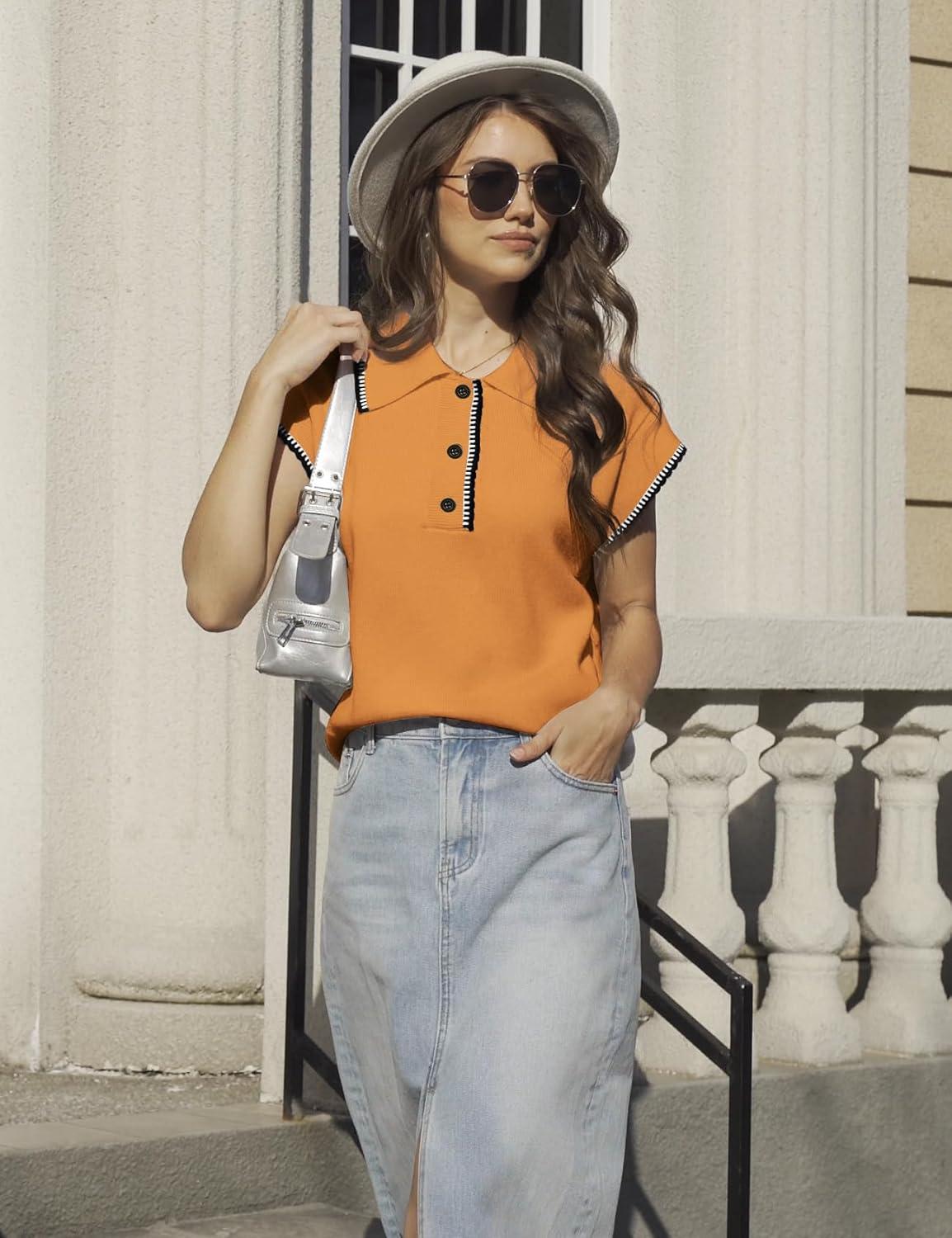 imageFlygo Womens Sweater Vest Lapel Button Down Sleeveless Tank Tops Cap Sleeve Knit Pullover Summer Spring Sweaters Vest TopBlack