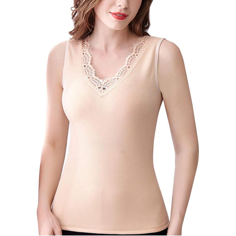 Flygo womens tank top/V-Neck tank tops/Thermal underwear for women/Fleece lined cami vest/Winter tank tops for women