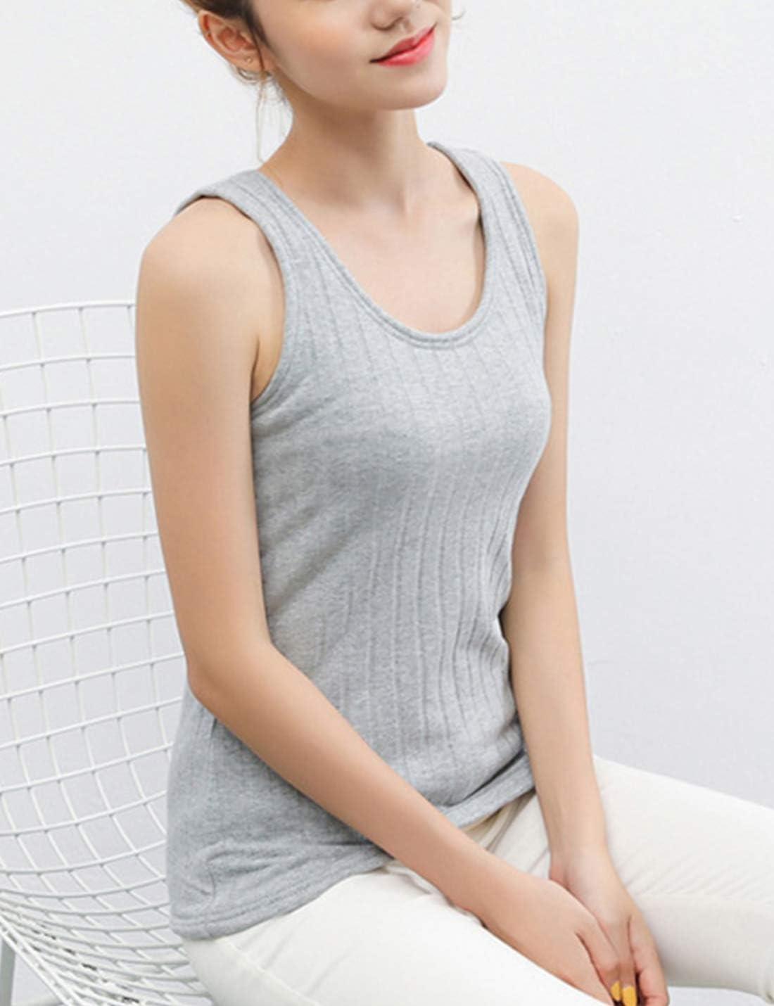 Flygo Women’s Thermal Underwear Winter Warm Base Layer Fleece Lined Cami Tank Tops(Grey)