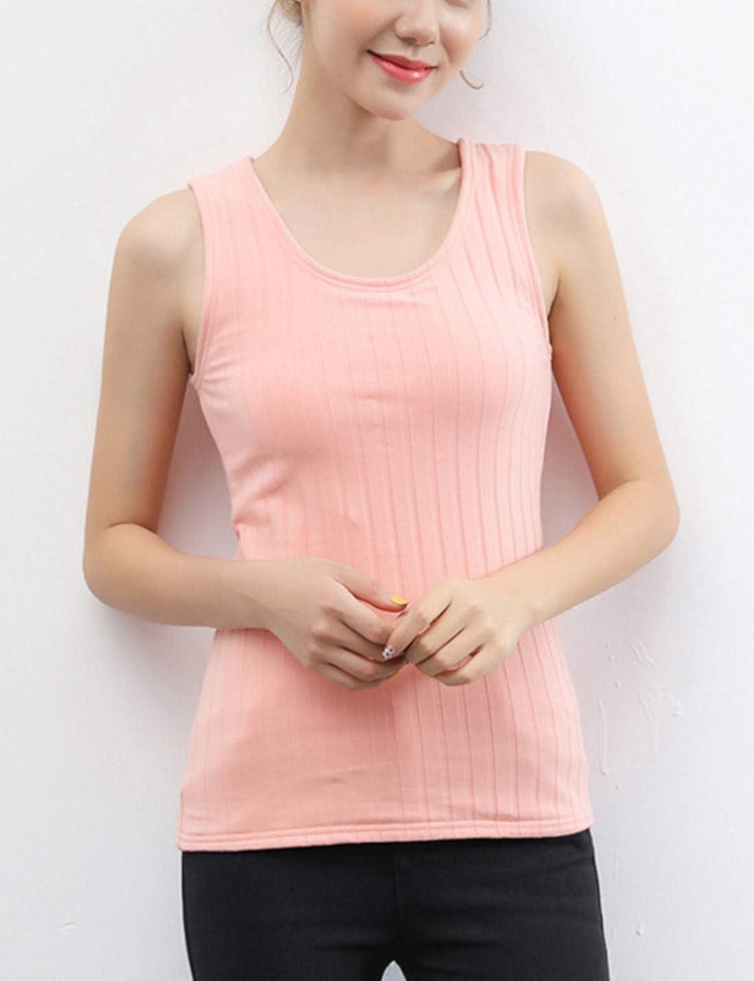 Flygo Women’s Thermal Underwear Winter Warm Base Layer Fleece Lined Cami Tank Tops(Pink)
