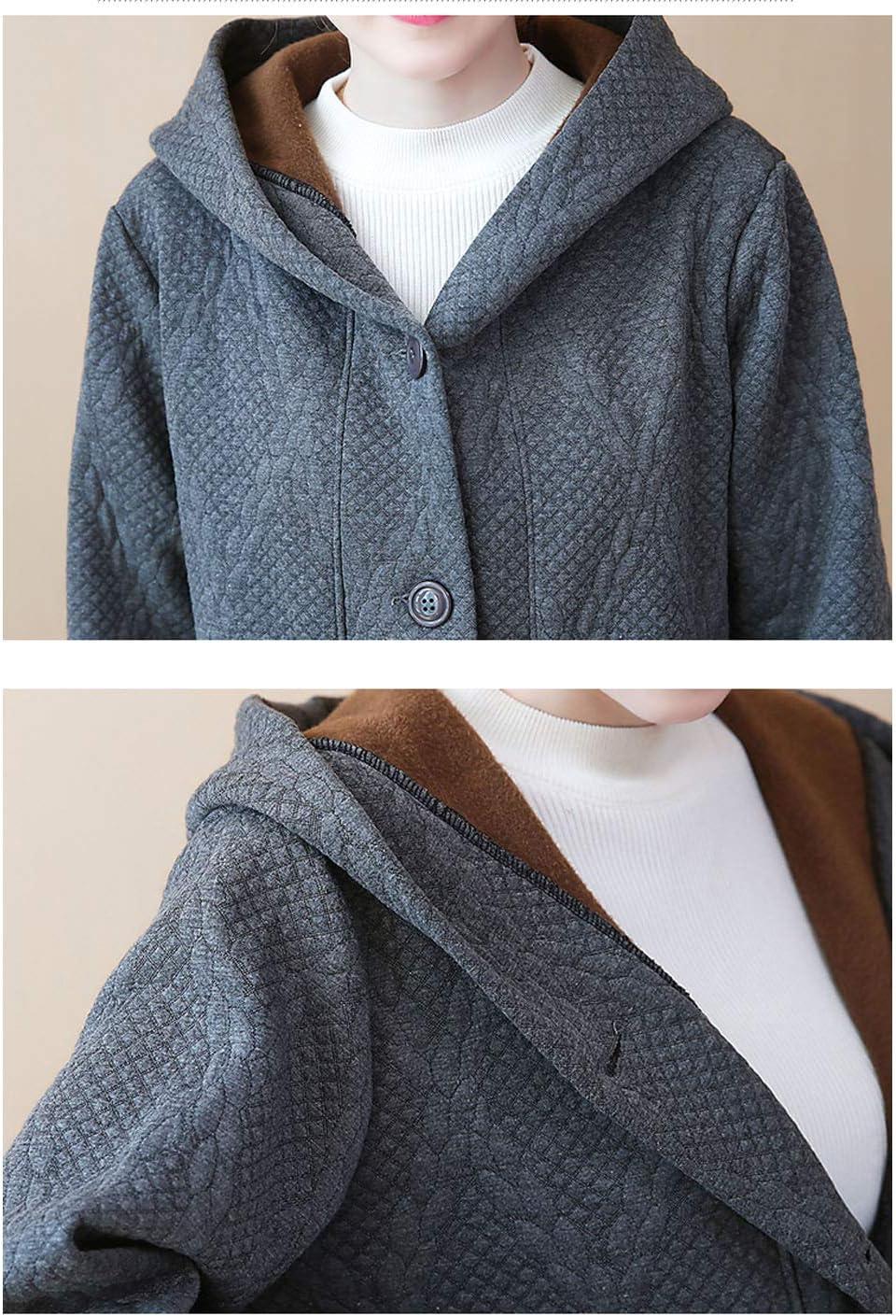 Flygo Women’s Thicken Hooded Puffer Jacket Loose Fit Mid Length Parka Coat Cardigan(Grey)