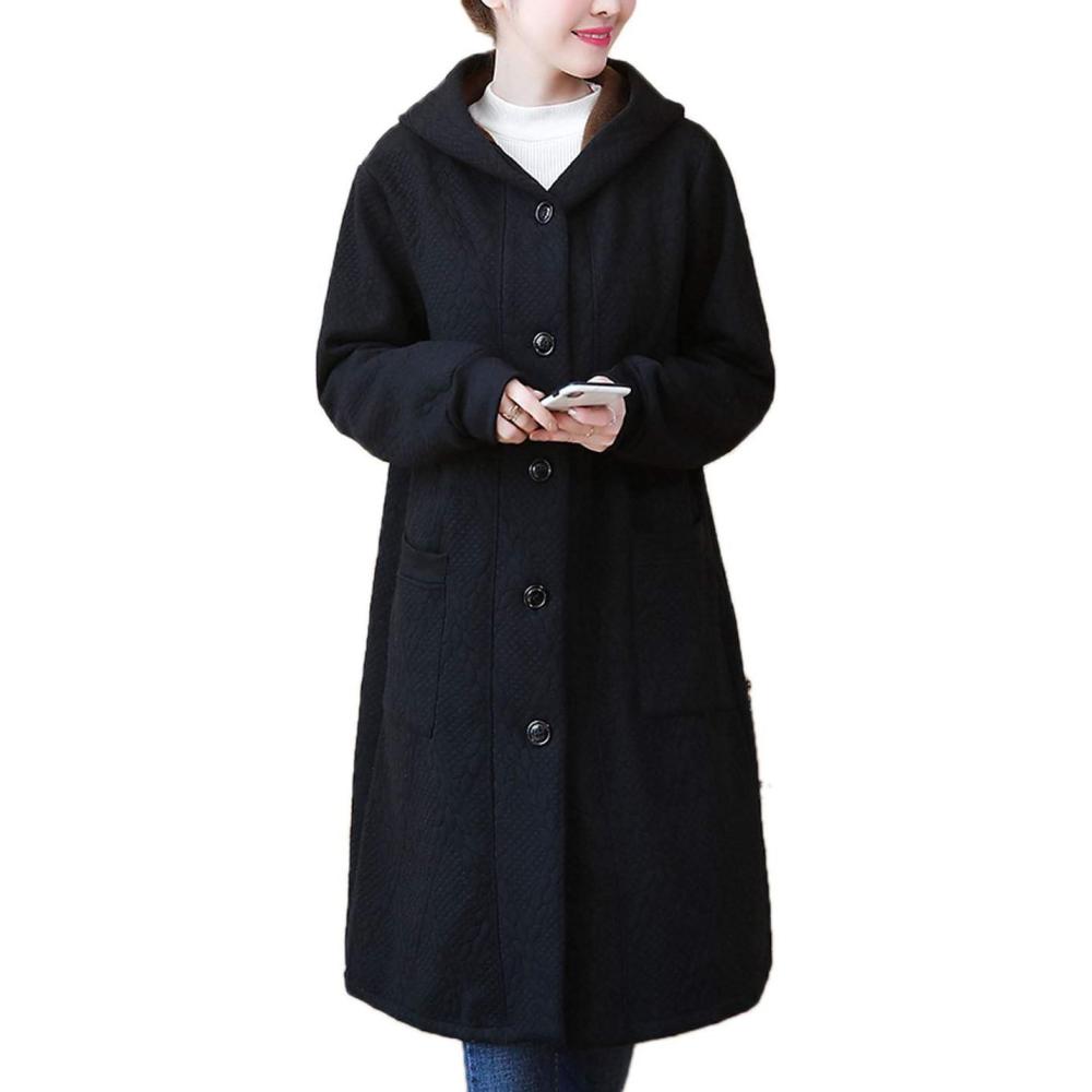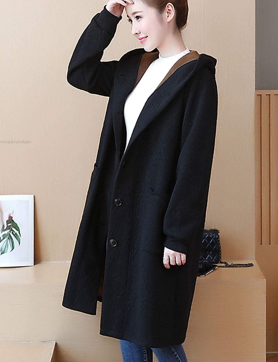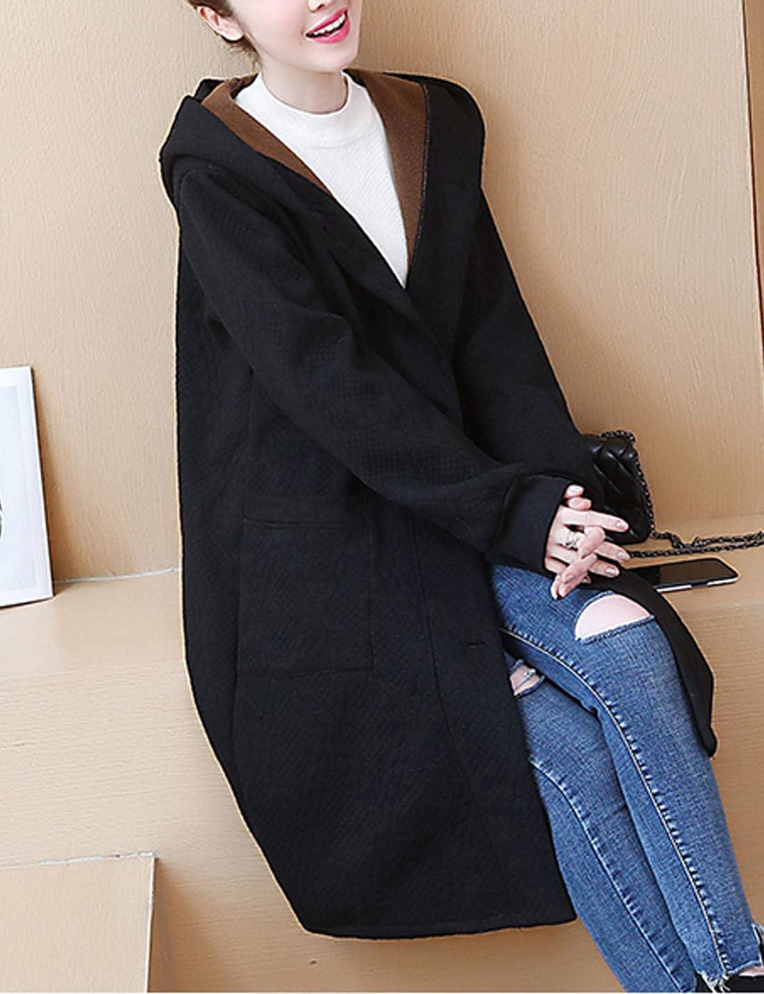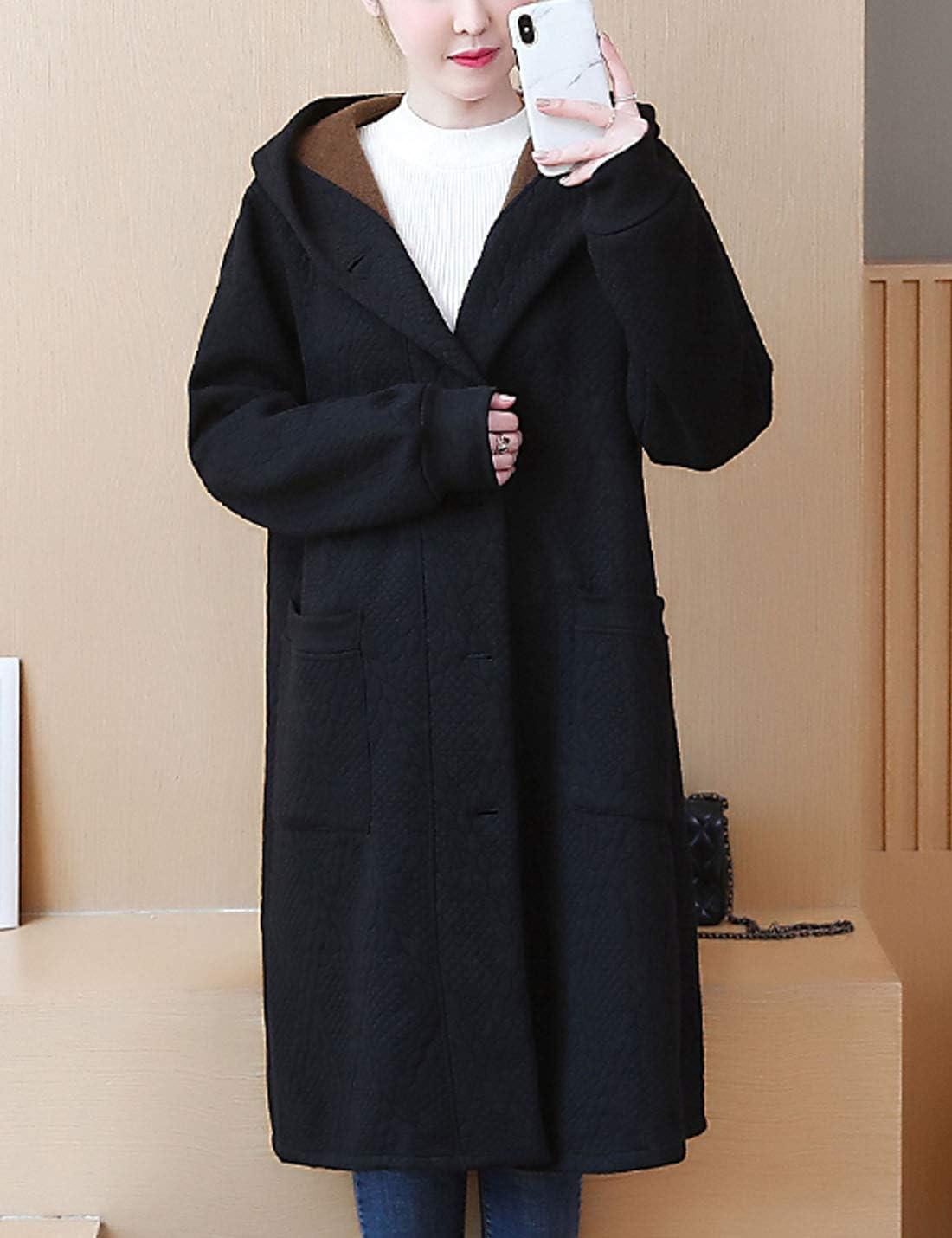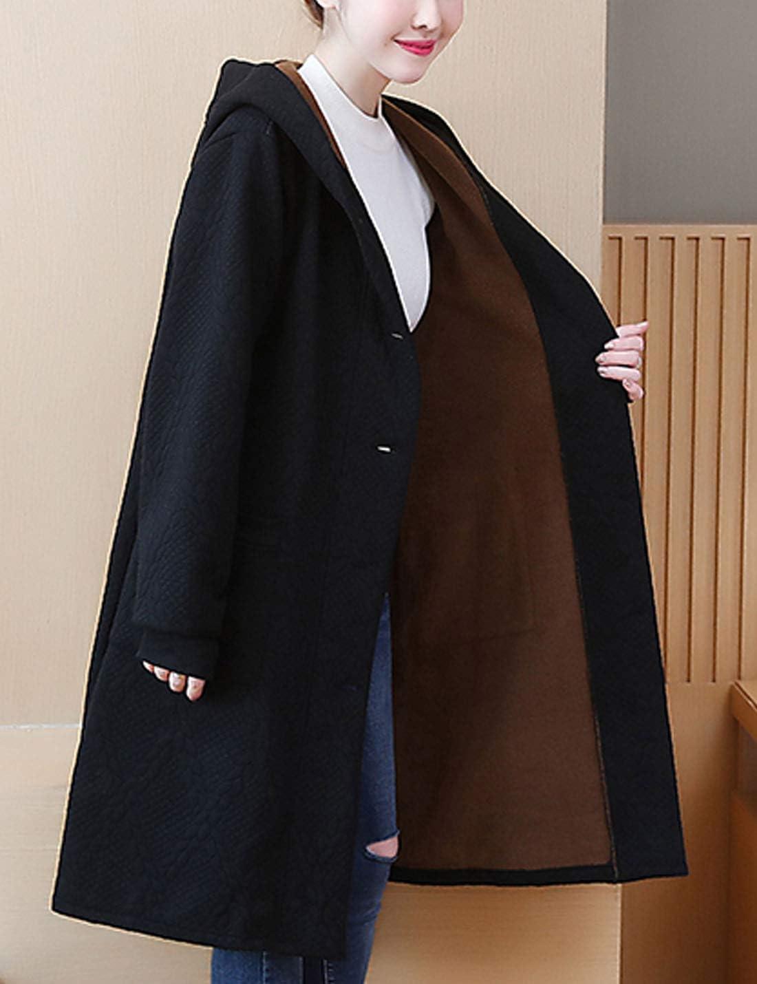 Flygo Women’s Thicken Hooded Puffer Jacket Loose Fit Mid Length Parka Coat Cardigan(Black)